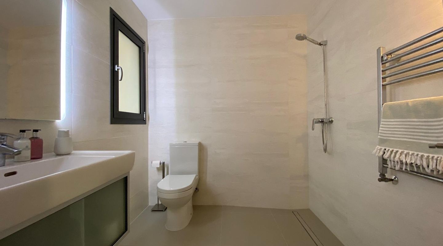 On the ground floor, you will find a bright and spacious living area with an open-plan American-style kitchen, creating a welcoming space for everyday living and entertaining. This level also includes one bedroom and a guest bathroom with a shower.