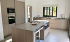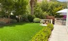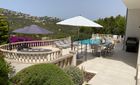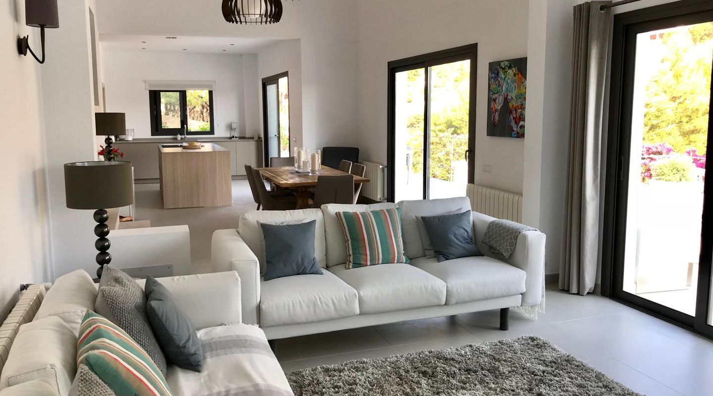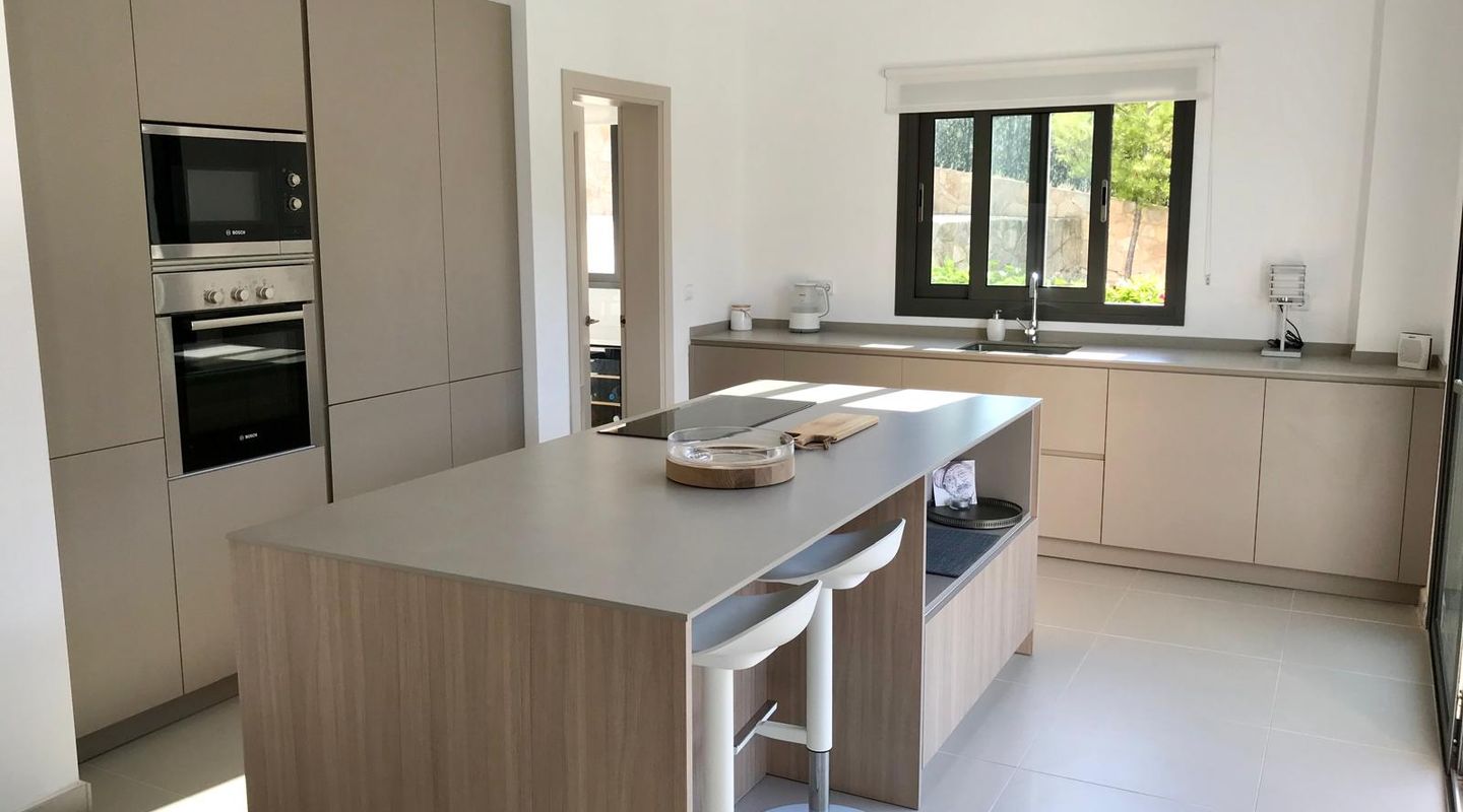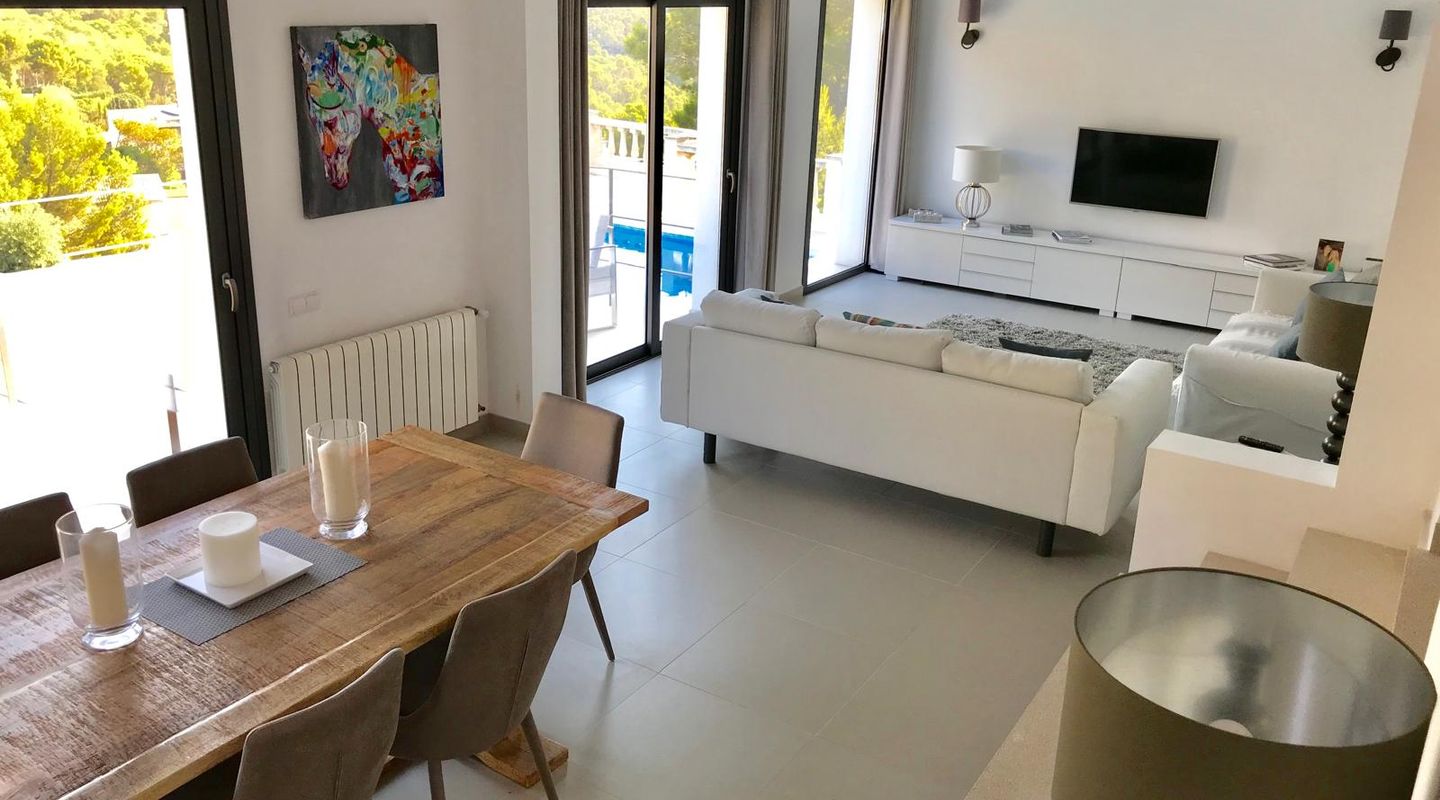 Outside, the home truly shines. A large terrace with a dining table is perfect for enjoying long meals with friends and family, while the pool area with comfortable seating, a sofa, and sun loungers invites you to relax and enjoy the Mediterranean lifestyle.