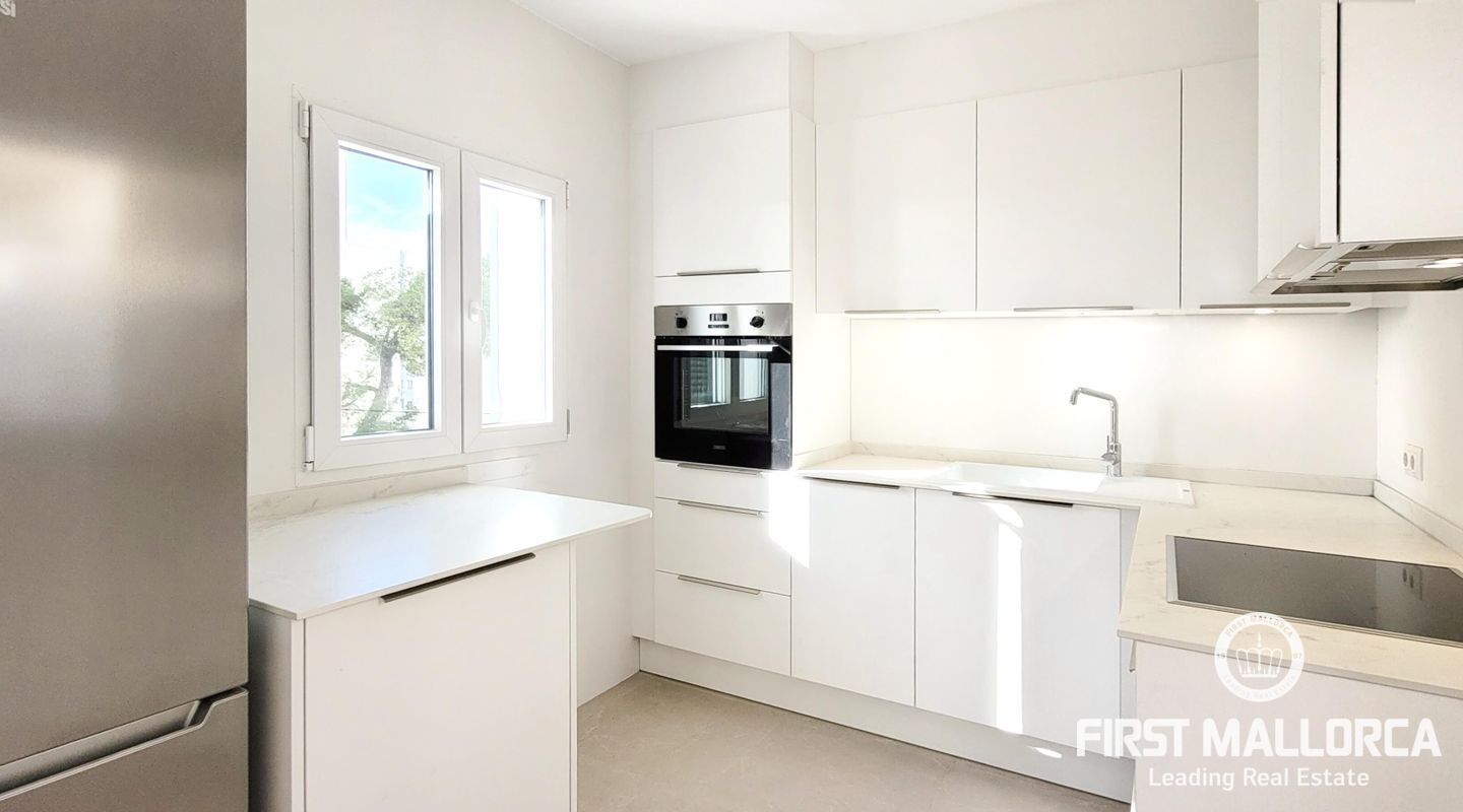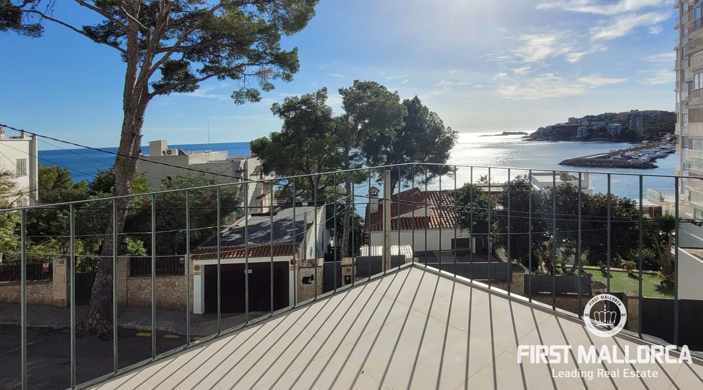 Beautiful house in second line of the sea, south facingl. The house has just been completely refurbished and has spectacular sea views. It comes unfurnished but with a full kitchen. On the ground floor we have a spacious living room with sea views, as well as a terrace that connects to the kitchen, also with sea views and a guest toilet. On the first floor we have three bedrooms, one of them with a spectacular terrace overlooking the sea, and with en-suite bathroom. The other two bedrooms are spacious and share a fully equipped and refurbished bathroom. Going up to the third floor we have a terrace with fantastic panoramic views over the bay of Palma. The property has been completely refurbished and all the land adjoining the house has also been renovated. It includes a private parking space and a storage room. If you would like to visit it, do not hesitate to contact your First Mallorca Rental Agent.
