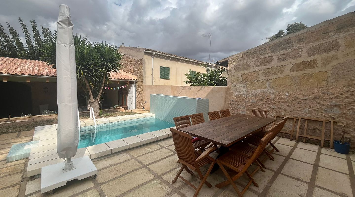 Discover this charming townhouse in the heart of the picturesque village of Sencelles. The property features 4 spacious bedrooms, 2 bathrooms, and an open-plan living room, perfect for family life and relaxing moments. The house is equipped with modern amenities and offers access to a refreshing pool, ideal for Mallorca’s warm days.