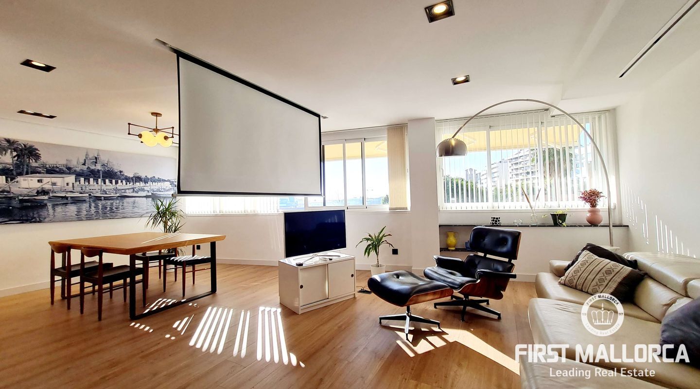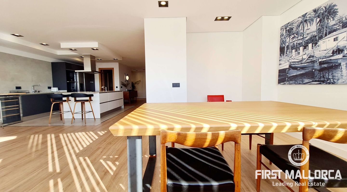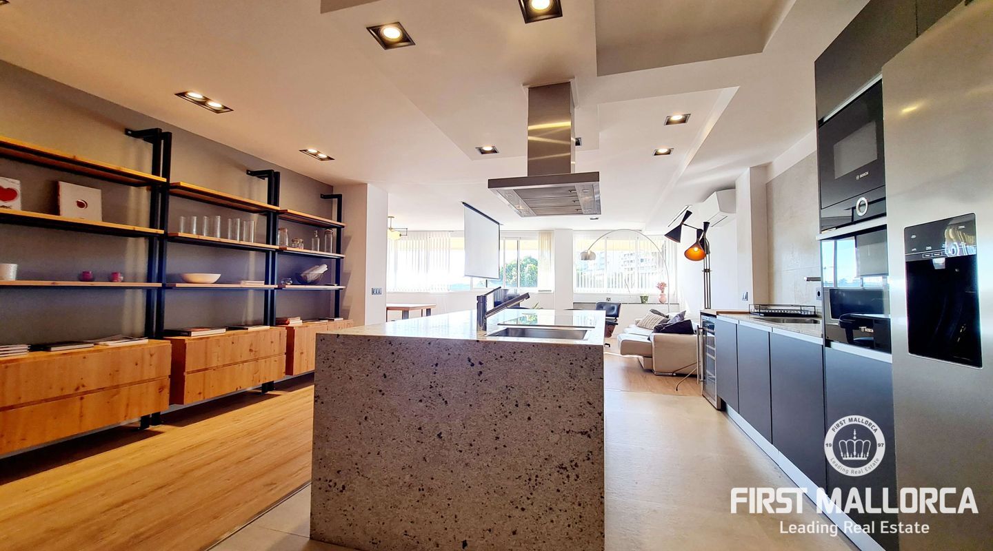 Modern and spacious loft for rent in Can Barbará with second access from Joan Miró street. It is a spectacular property that stands out for its spaciousness, high-end finishes and abundant natural light. The space is divided into a living-dining room with open-plan kitchen, equipped with prestigious Bosch appliances, ice maker and water softener. There are two en-suite bedrooms with their own dressing rooms, one of which opens completely into the main living space. This is an ideal temporary home for those who love the city and the proximity to the sea. For more information, please do not hesitate to contact the agents of First Mallorca.
