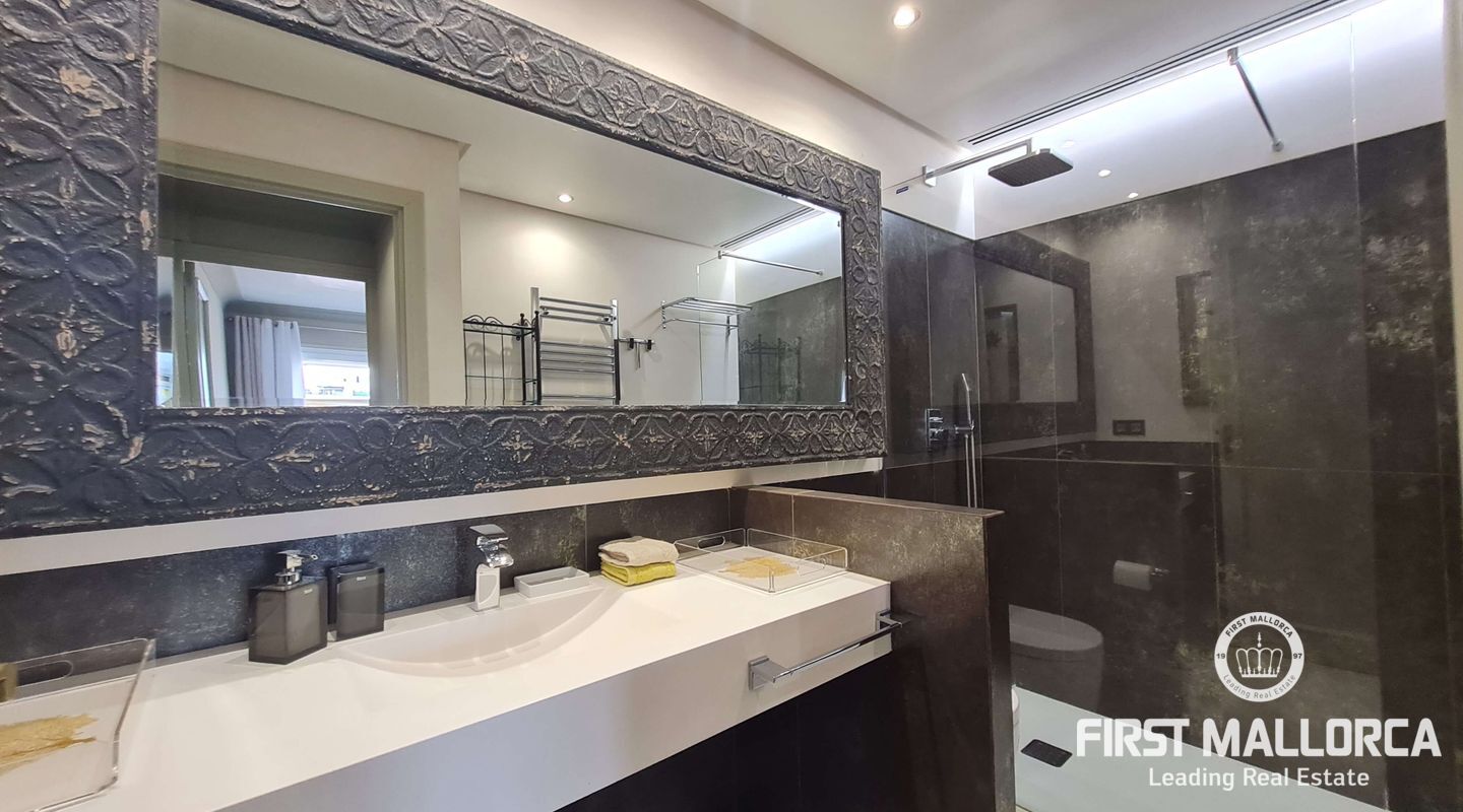 The 75m built are in immaculate condition. The space is cooled and heated by air conditioning, fireplace, or low-consumption electric radiators. In addition, there is a washer/dryer, Majorcan wooden shutters and electric awnings, electric towel rail, water softener, osmosis and an automatic irrigation system for the plants on the terrace.