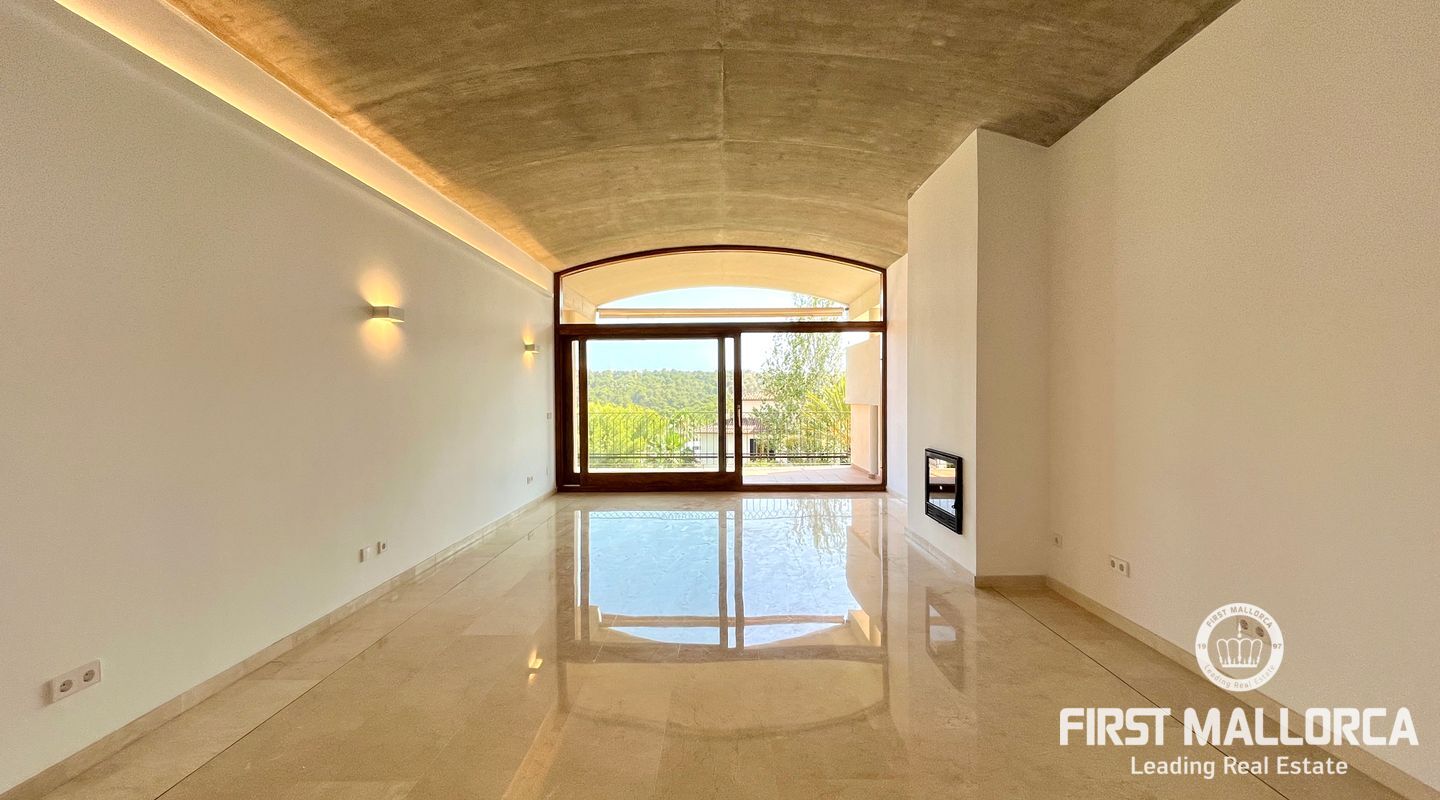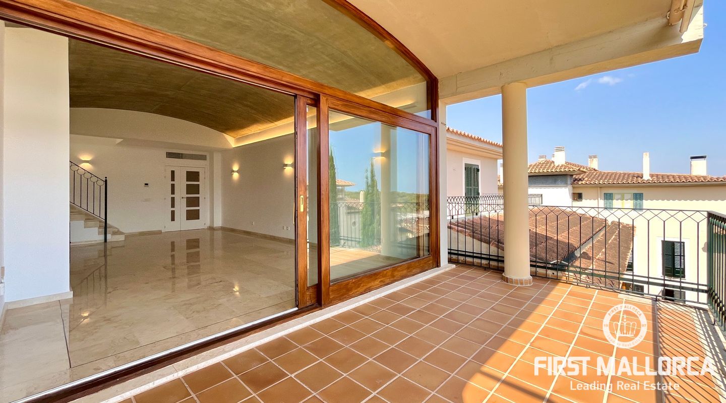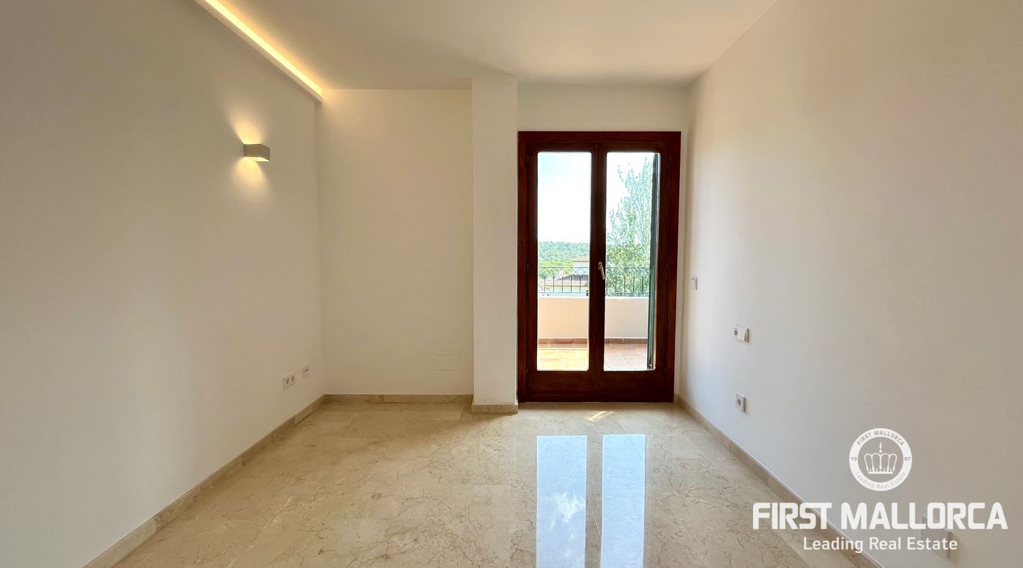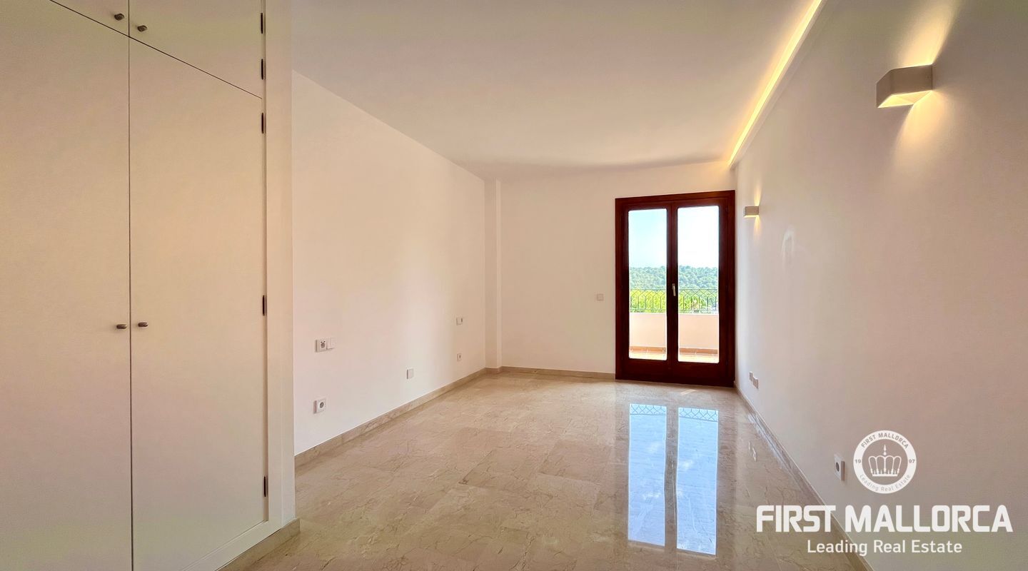 The property includes a large living room with a wood-burning fireplace and access to the first terrace, which offers views of the community, the forest, and Bellver Castle. From the living room, stairs lead to the upper floor, where there is a studio with 270º windows and access to a second terrace of approximately 70 m². This is the only space located on the upper level; on the main floor, there is a modern and fully equipped kitchen along with a laundry room, the master bedroom with an en-suite bathroom, three additional double bedrooms, and another bathroom. The master bedroom and two of the bedrooms have access to the third terrace, while the fourth room has a French balcony. All rooms feature built-in wardrobes.