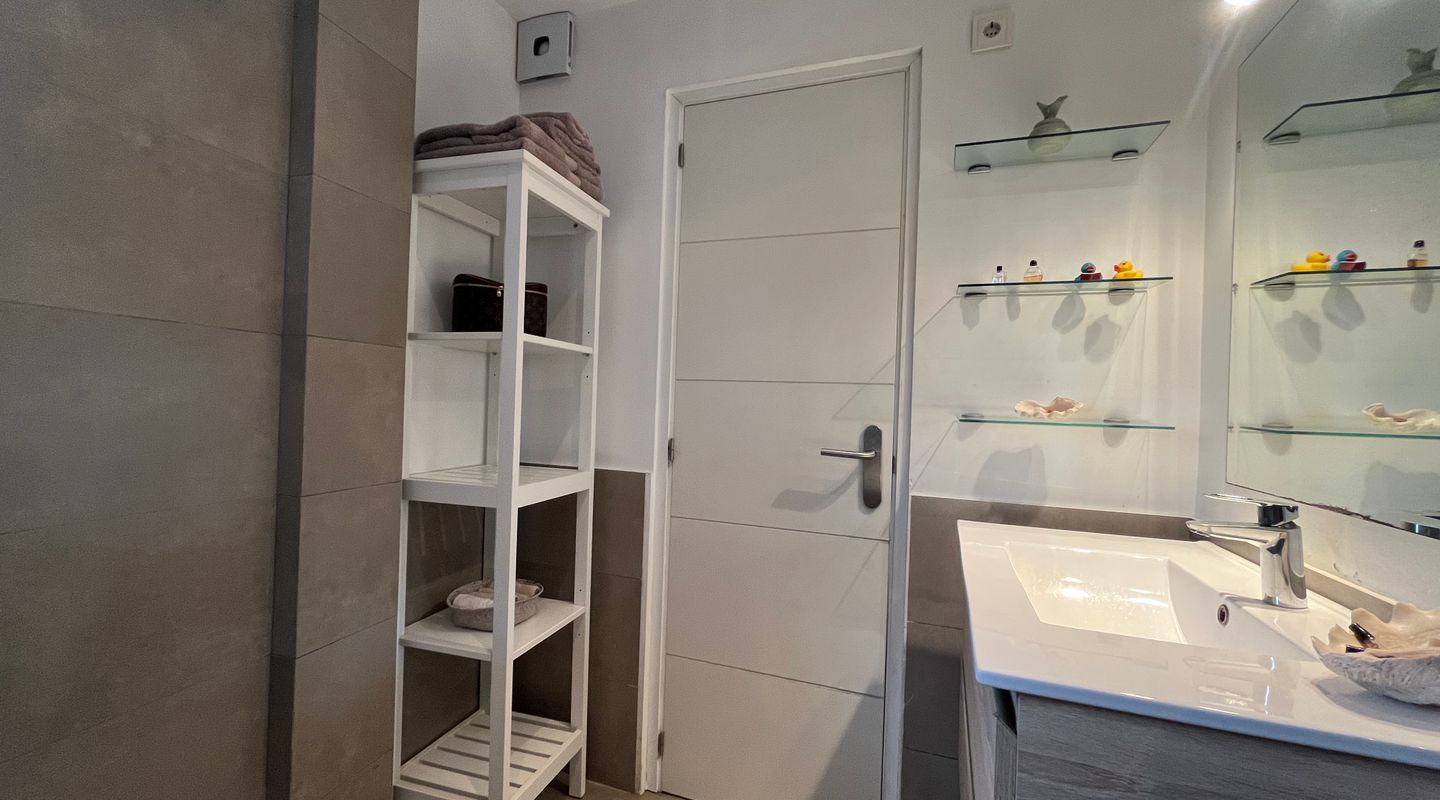 Lovingly maintained and tastefully decorated, the apartment has a warm and welcoming atmosphere. On the main level you’ll find a bright living area, a fully equipped kitchen with high-quality appliances, and the master bedroom with en-suite bathroom. Upstairs, a second bedroom with a double bed opens onto the private rooftop terrace — perfect for relaxing or enjoying the Mediterranean evenings.