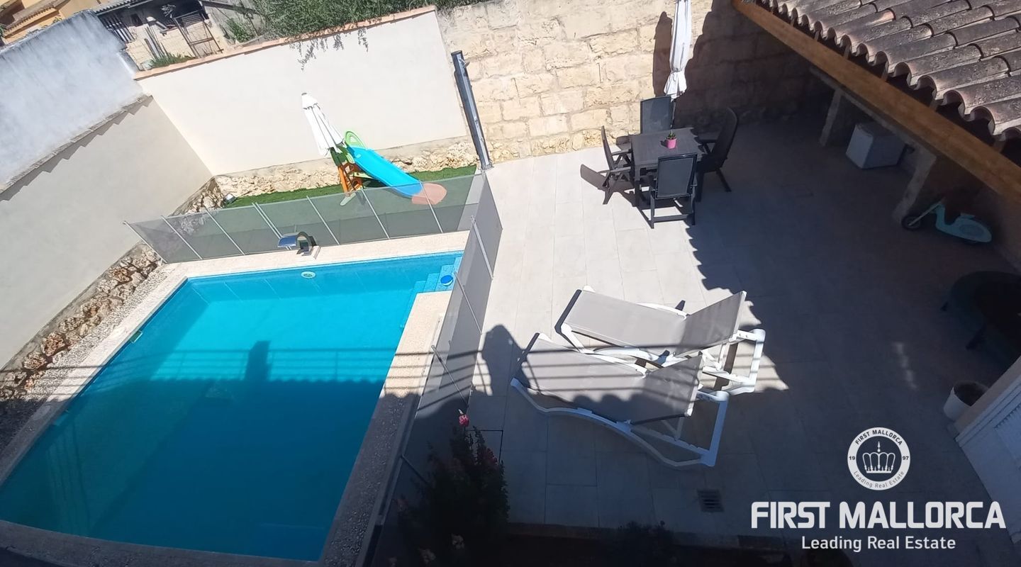 Townhouse in Ariany for long term rent. It has 280 m² living area plus 60 m2 of terrace and garden, with four double bedrooms, two spacious living rooms, office, fully fitted kitchen, two bathrooms and a guest toilet. It includes garage, garden, swimming pool, barbecue area and large terrace with views. It is equipped with central heating, air conditioning and fitted wardrobes. It is offered semi furnished or unfurnished. Located in the quiet village of Ariany, ideal for those looking to live in peace and style close to the north coast of Mallorca.