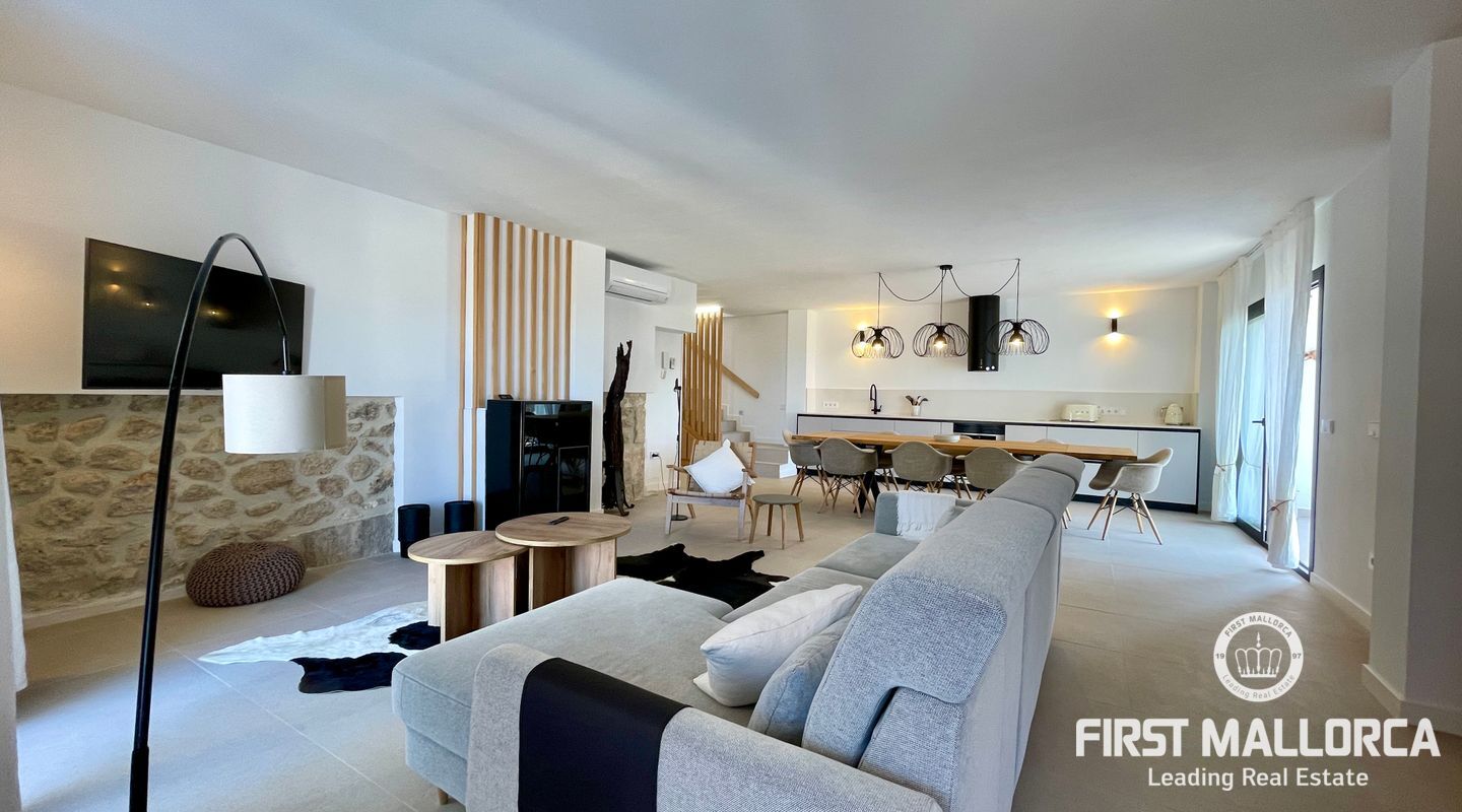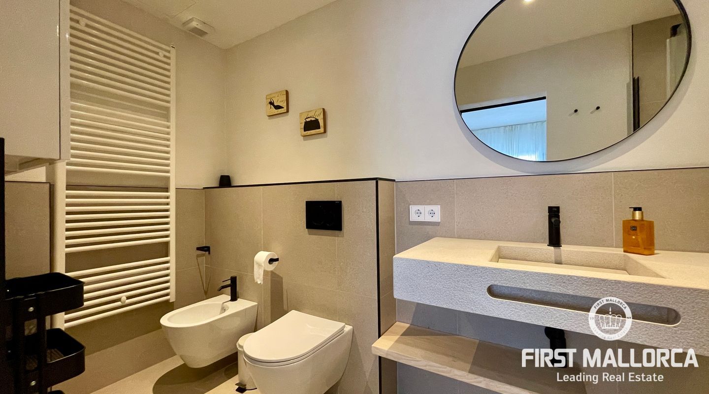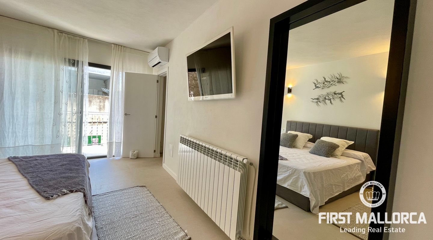In the charming village of Búger, surrounded by tranquillity and open views to the Tramuntana mountains, this spectacular recently refurbished house is for rent, designed for those who value design, quality and comfort. The property has two spacious bedrooms, both with en suite bathrooms, as well as a guest toilet. A multifunctional space offers the possibility of adapting it as a third bedroom, office, living room or study, depending on the tenant's needs.