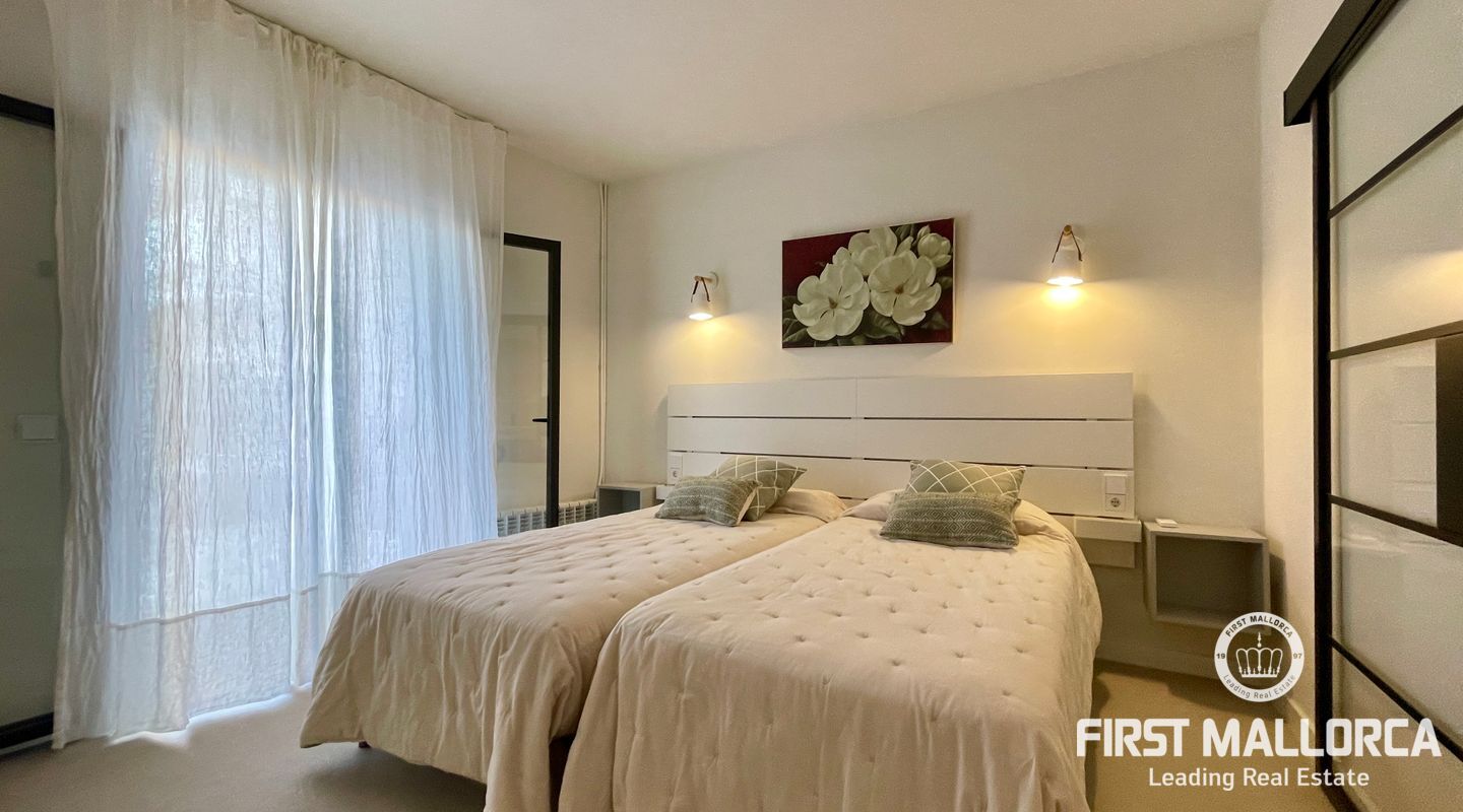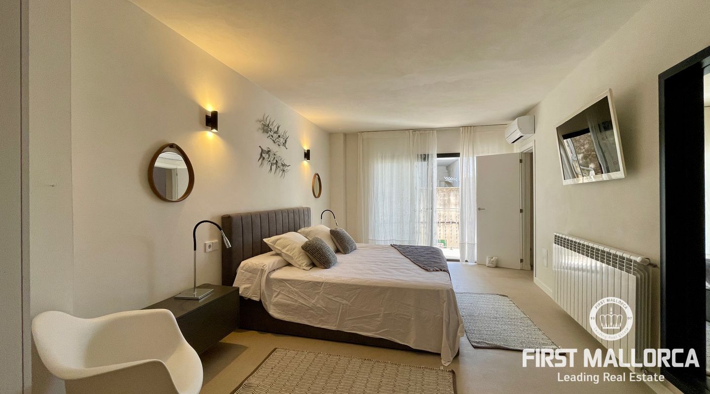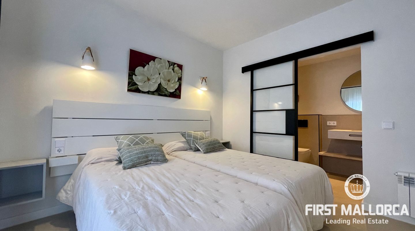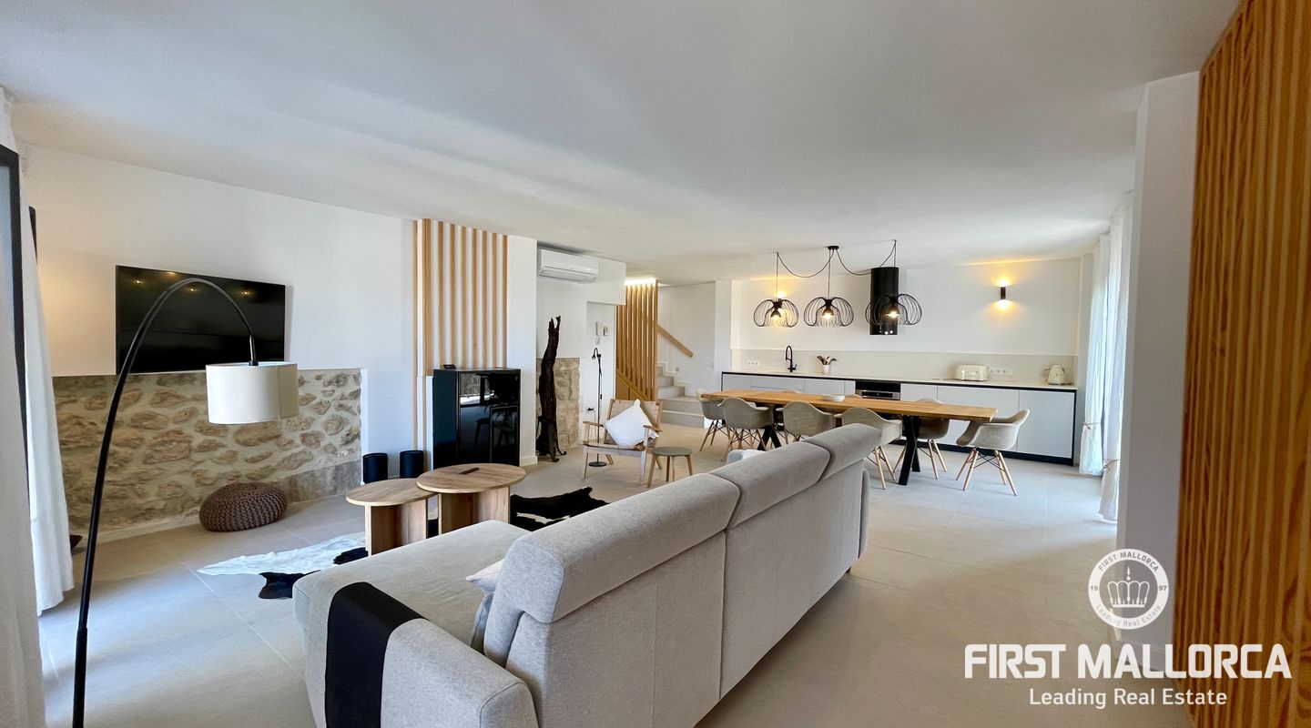 In the charming village of Búger, surrounded by tranquillity and open views to the Tramuntana mountains, this spectacular recently refurbished house is for rent, designed for those who value design, quality and comfort. The property has two spacious bedrooms, both with en suite bathrooms, as well as a guest toilet. A multifunctional space offers the possibility of adapting it as a third bedroom, office, living room or study, depending on the tenant's needs.
