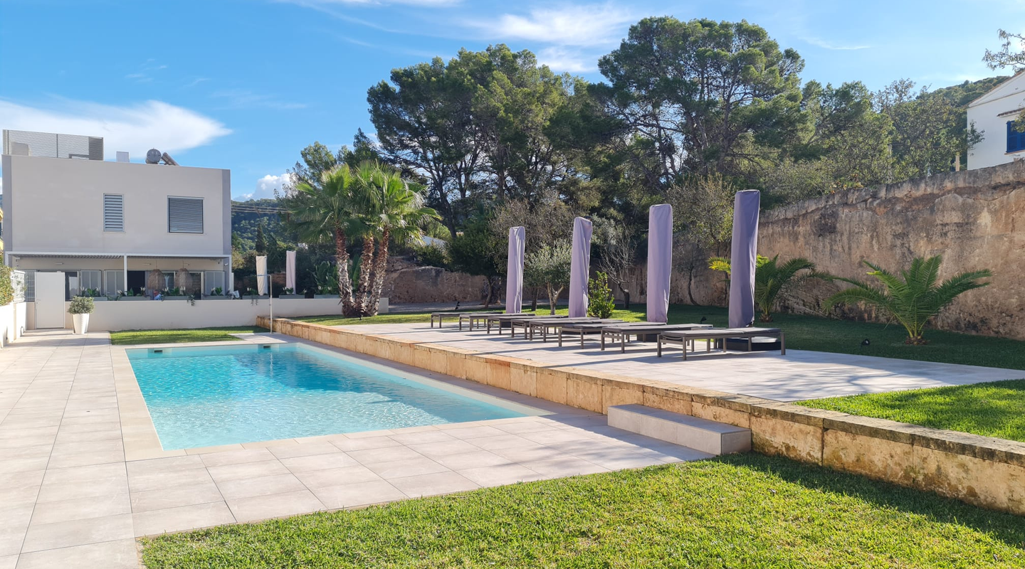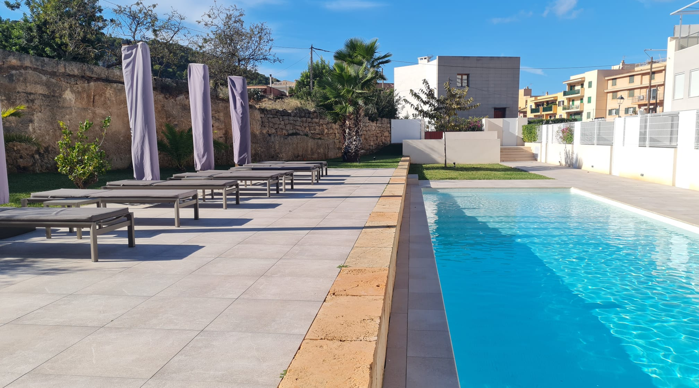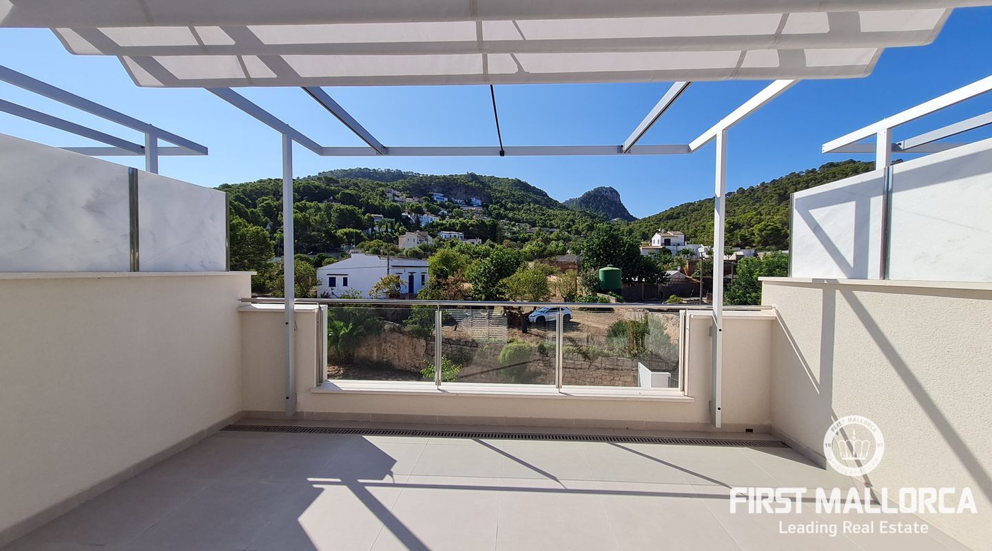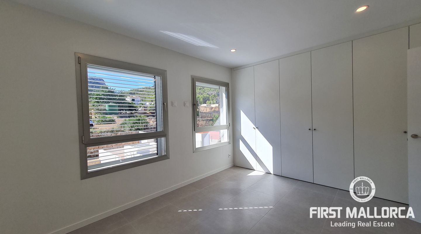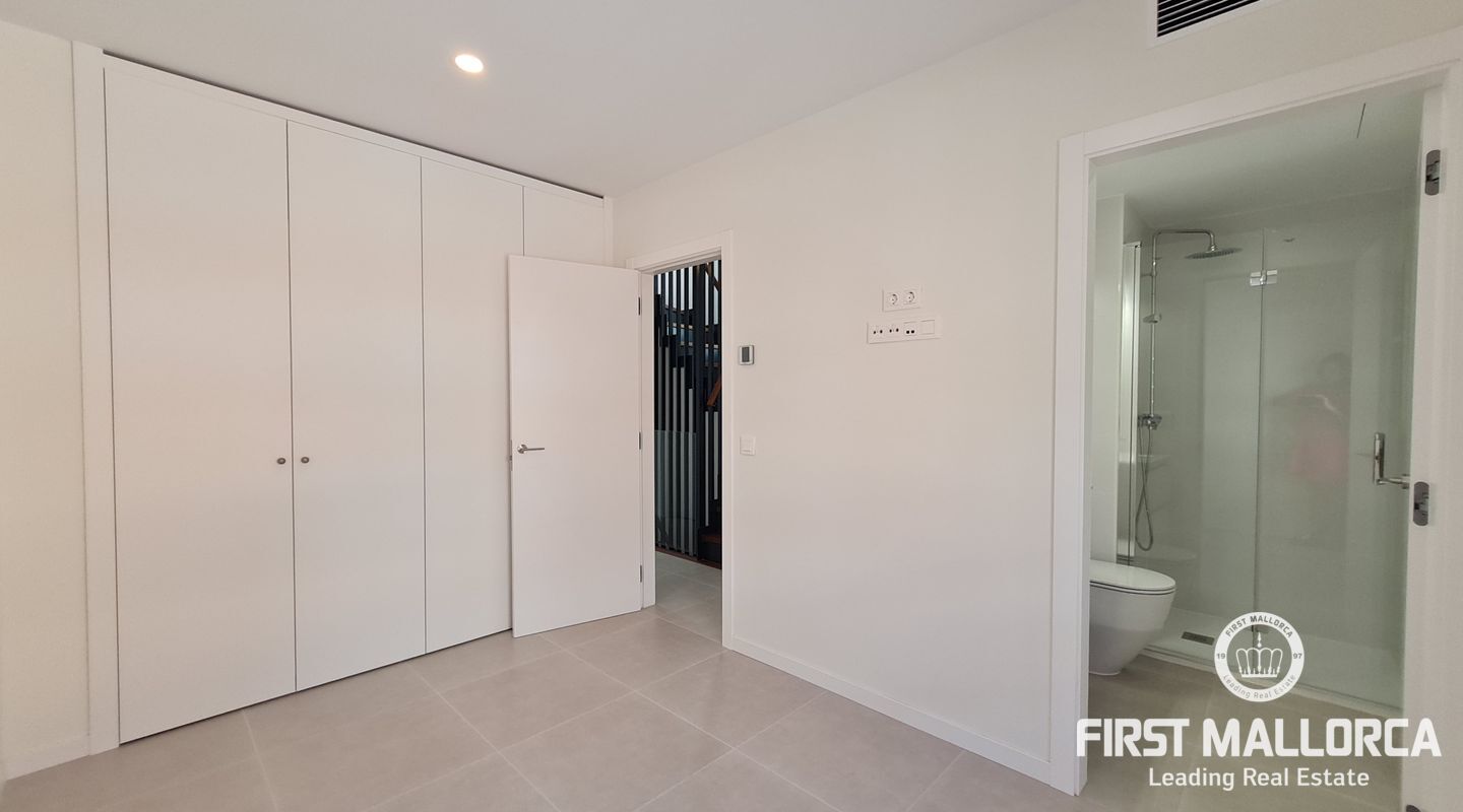 This brand new townhouse is the ideal place to reside the entire year or to use as a second home. Located within a modern development with a saline swimming pool and community gardens, this property offers residents the opportunity to enjoy the Mediterranean lifestyle and is easy walking distance to the harbourside, the international cuisine restaurants, sunny terrace cafés, chic boutiques and all amenities within the vicinity. The distribution is set over 4 floors with a private lift and stairs to all levels. The entrance level comprises a guest wc, a spacious living room with an open plan kitchen, doors leading to the private terrace and garden with an access to the community gardens and lovely swimming pool area. The first floor has a generous master bedroom with an ensuite bathroom and in addition a double bedroom with a shower bathroom ensuite. The upper level offers a wonderful open plan area which is ideal as a bedroom or an office enjoying a private terrace with panoramic views to the hills and the community swimming pool and there is also a rear terrace for laundry purposes. All bedrooms have fitted and furnished wardrobes, home automation controls, electric or manual shutters and an internet/ TV connection. Further features of this perfect property include: an Ecodan economy efficient heat pump system for hot & cold air-conditioning and underfloor heating, double glazing, ceramic floors, halogen lighting throughout, sun blinds, osmosis water tap, fully equipped kitchen with new appliances and a breakfast bar. The lower level comprises the private lock up garage for 2 cars, a separate laundry room and a store room. Rented unfurnished but owner will install a washing machine and drier if desired and also finish the garden area according to the wishes of the tenants. Puerto Andratx is one of the most sought after areas to live on Mallorca offering wonderful facilities and only a short drive to the local beaches of Camp de Mar and Paguera. The historical Palm city centre is only a 25 minute drive away with a lively ambience and exquisite shopping all year around.