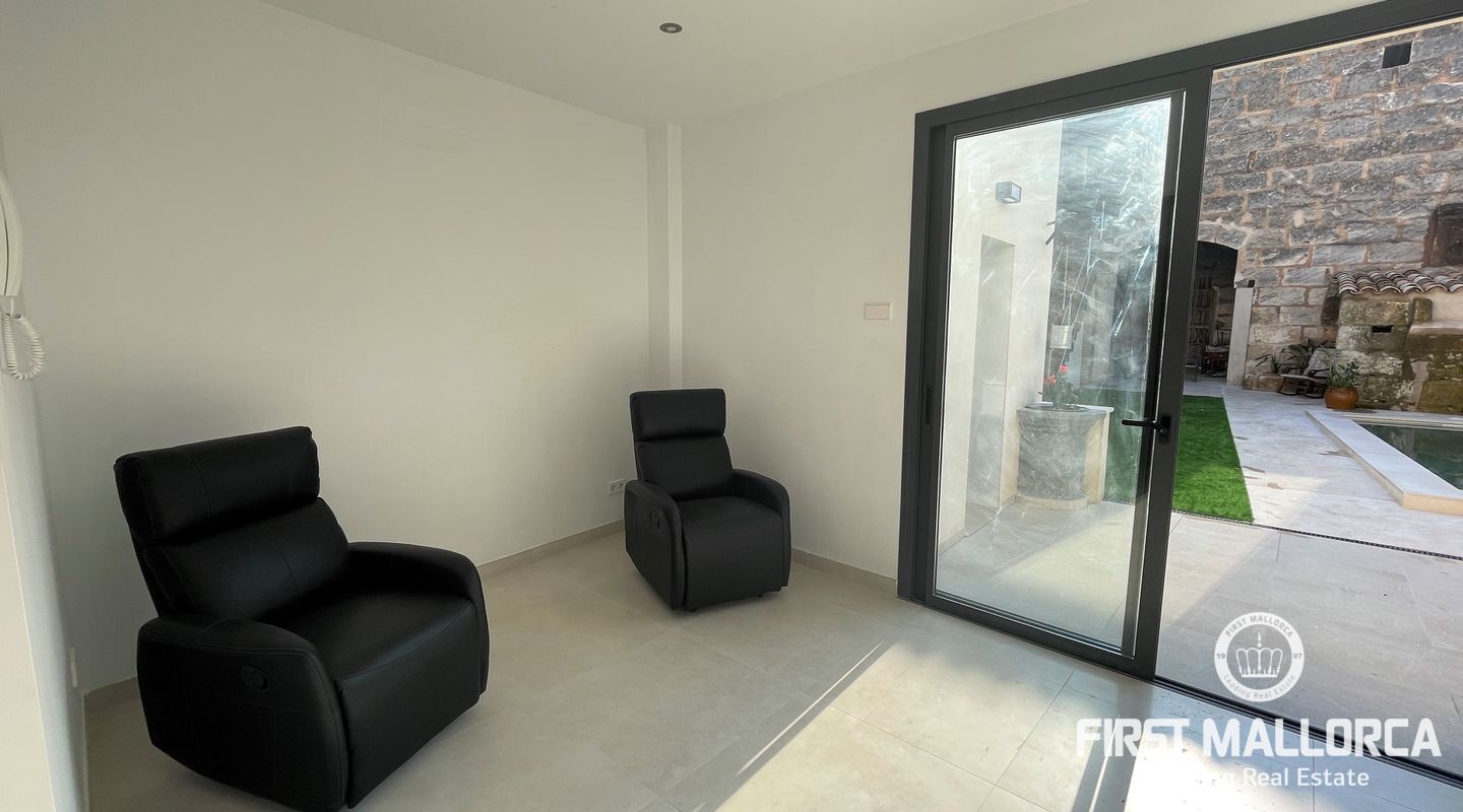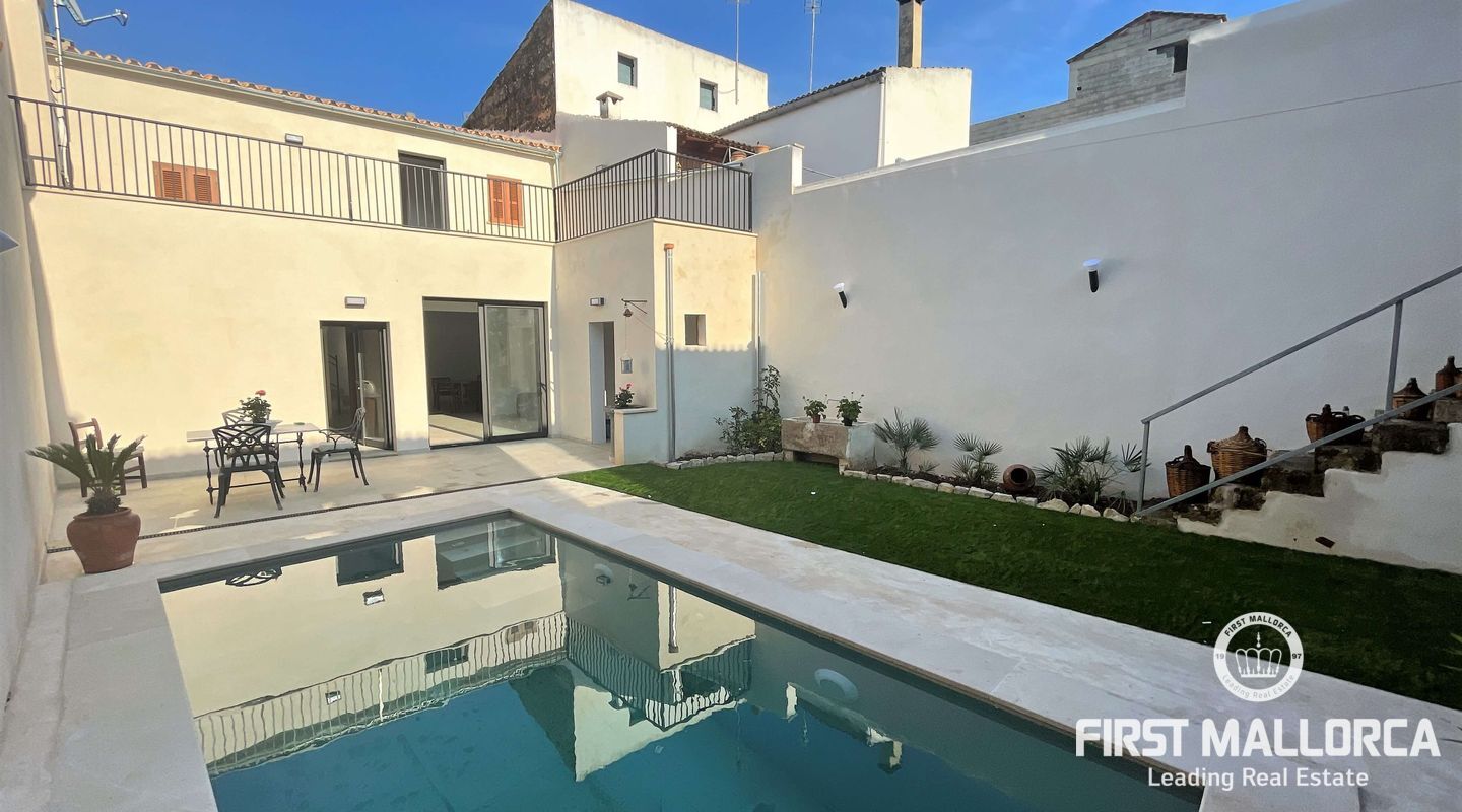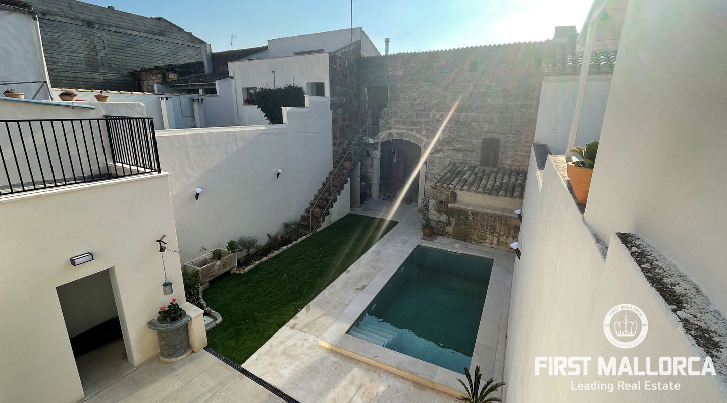 This beautifully renovated modern townhouse is located within walking distance of the main square in Sa Pobla, in the north of the island of Mallorca. It stands out for its authentic original features such as its high ceilings and wooden beams. The premises, which has a total constructed area of 322m2, is distributed between two floors. The property consists of 4 bedrooms and 4 bathrooms. On the entrance level there is a dining area from where you enter the charming patio which offers enough space for evenings with family and friends. The highlight of the Patio is the swimming pool and the lawn area. Do not hesitate to contact our FIRST MALLORCA team for further information and an appointment to view the property.