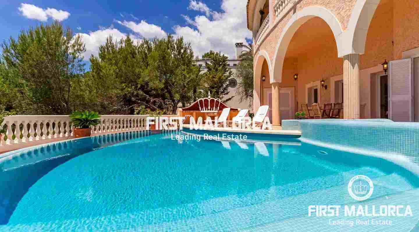 This deluxe Mediterranean-style villa in a prime location in Bendinat enjoys splendid sea, golf and mountain views.
