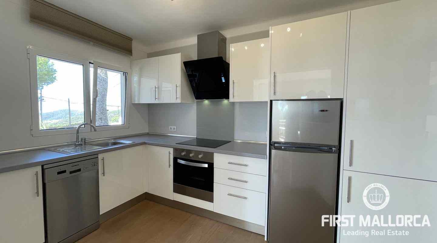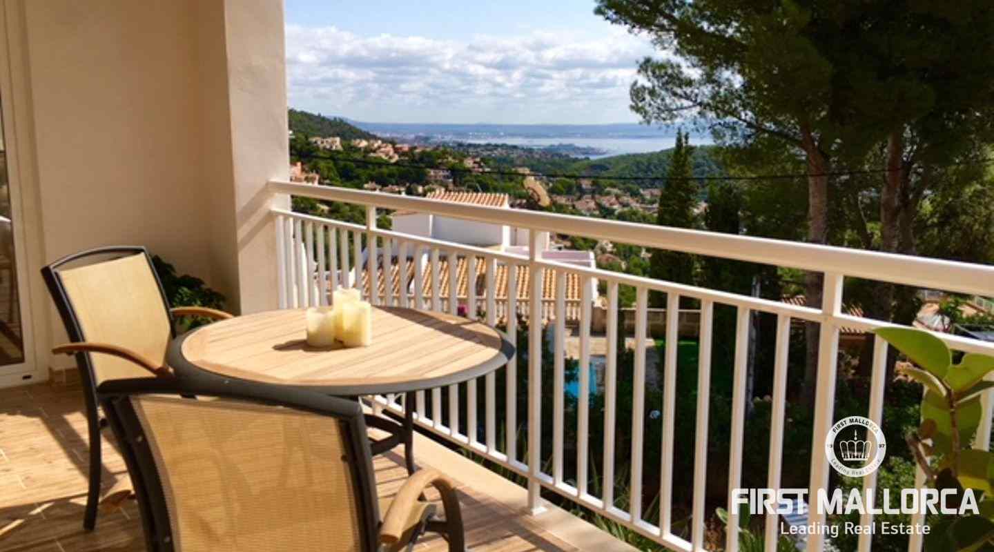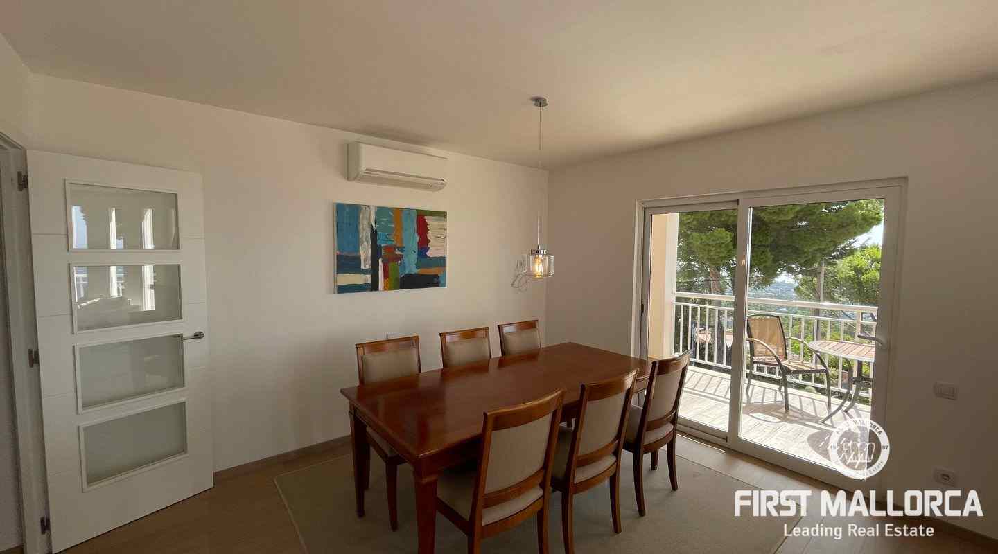This lovely house stands out due to its good location, beautiful views and its functional layout. On the upper level there is an open living and dining area as well as 2 bedrooms and a bathroom. The lower level is independent and offers a large living- / sleeping area, a smaller room and a bathroom. Spacious terraces surround all these areas. The house features a well-kept Mediterranean garden, a large utility room, air conditioning cold / warm and a carport. This property is offered furnished. The elegant port of Marina Portals is only a few minutes away as well as the international schools of the island. The centre of Palma and also the airport are only 10 minutes away.