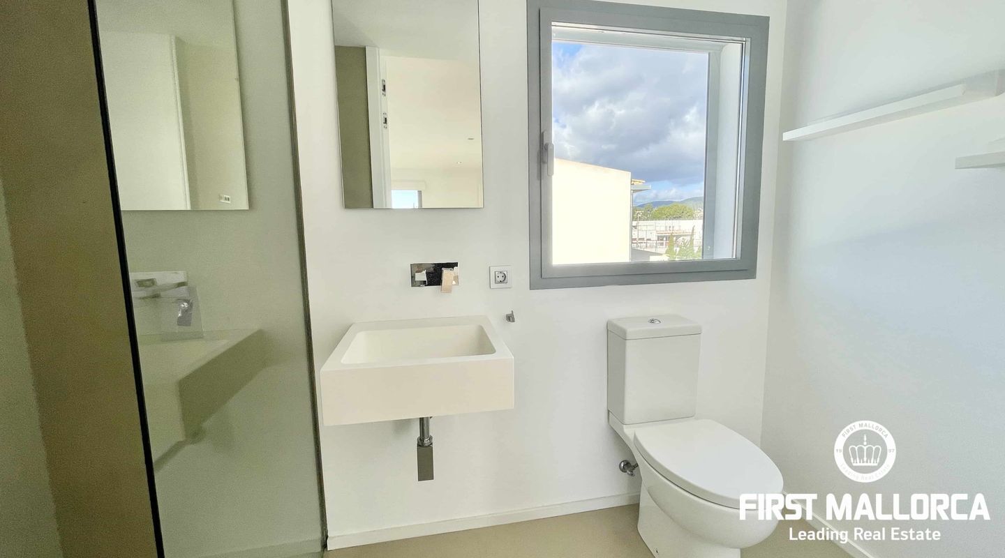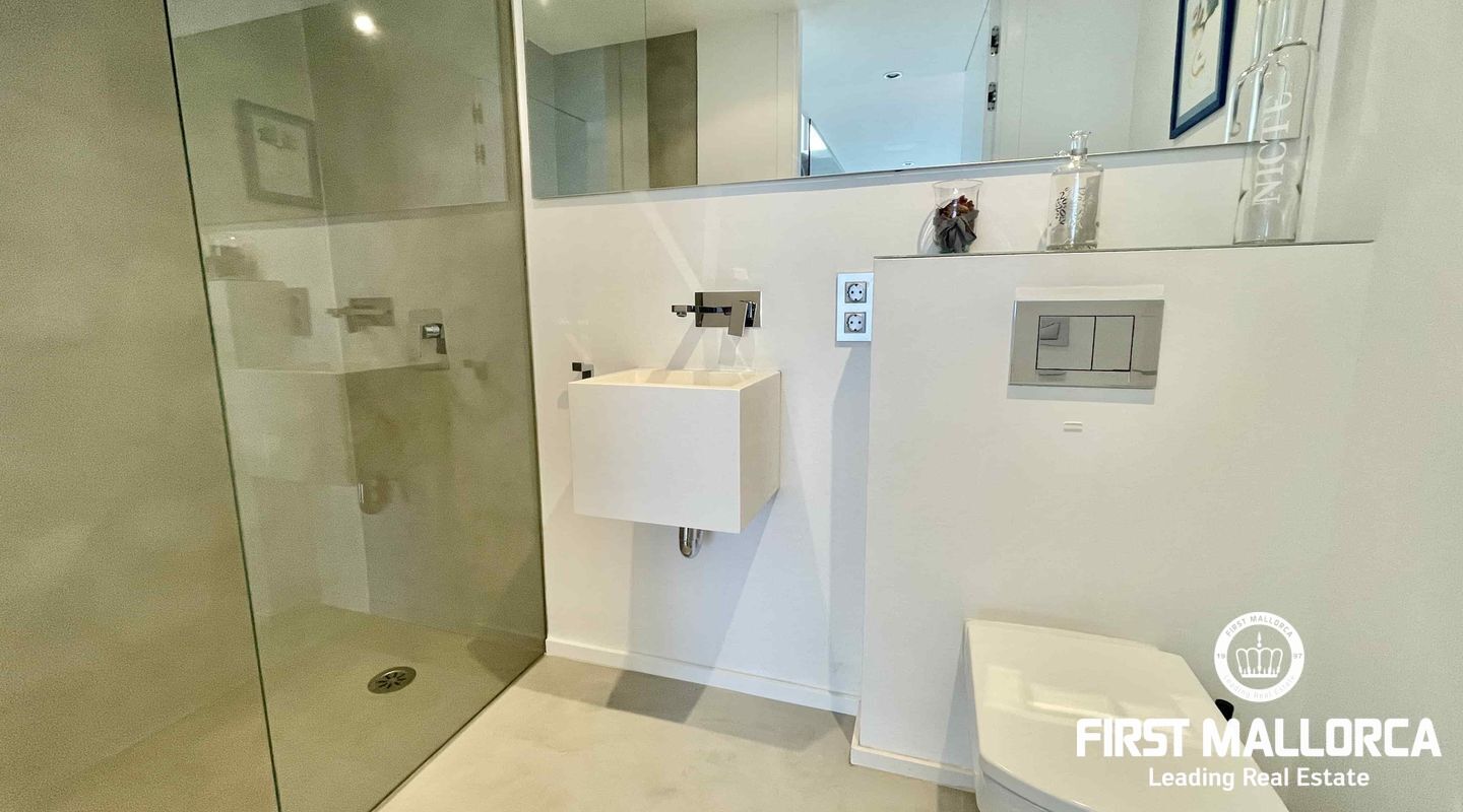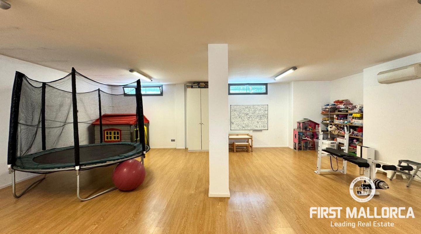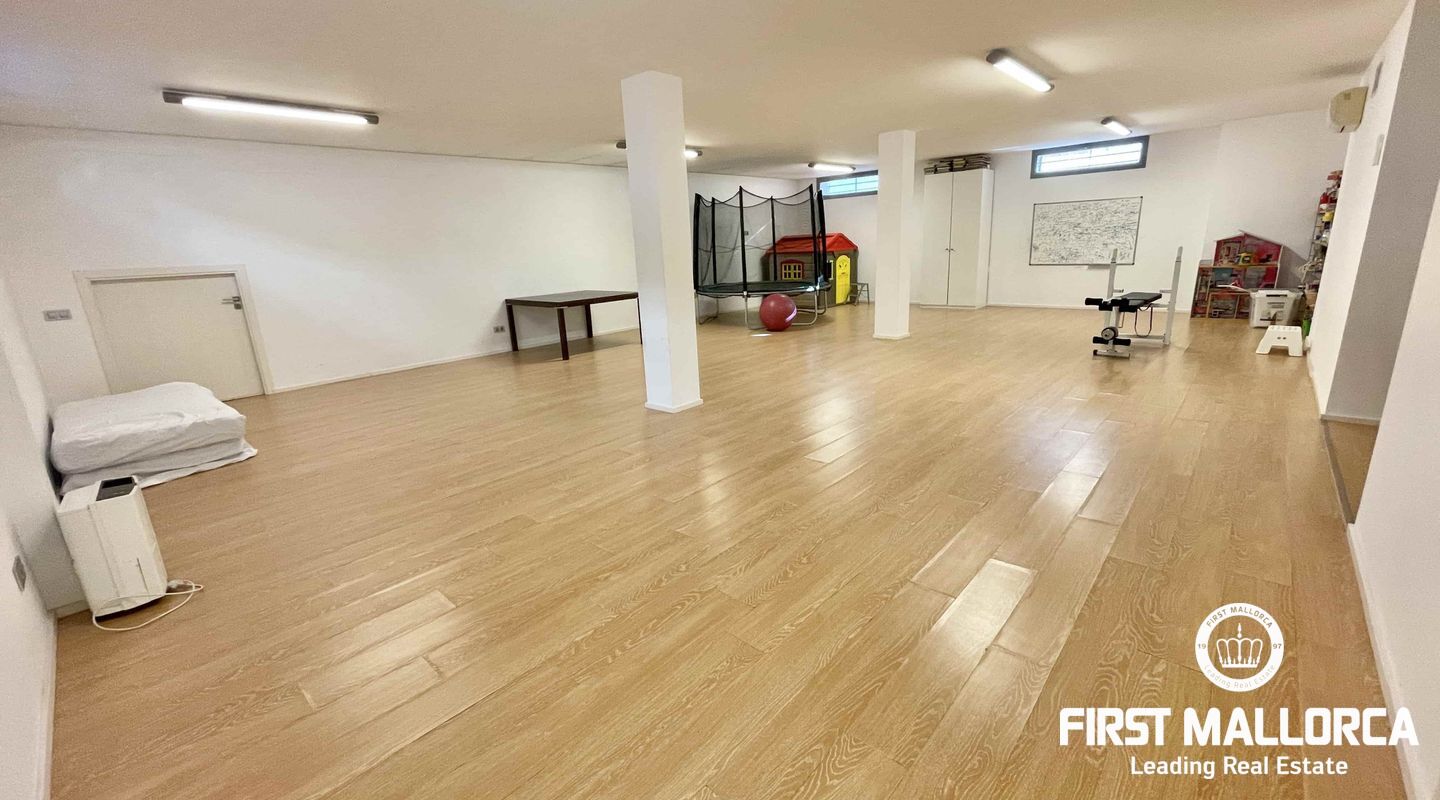 On the upper floor there are three bedrooms, three bathrooms (two are ensuite) and a living room with breathtaking views of the Tramuntana mountains, which could be used for various purposes.
