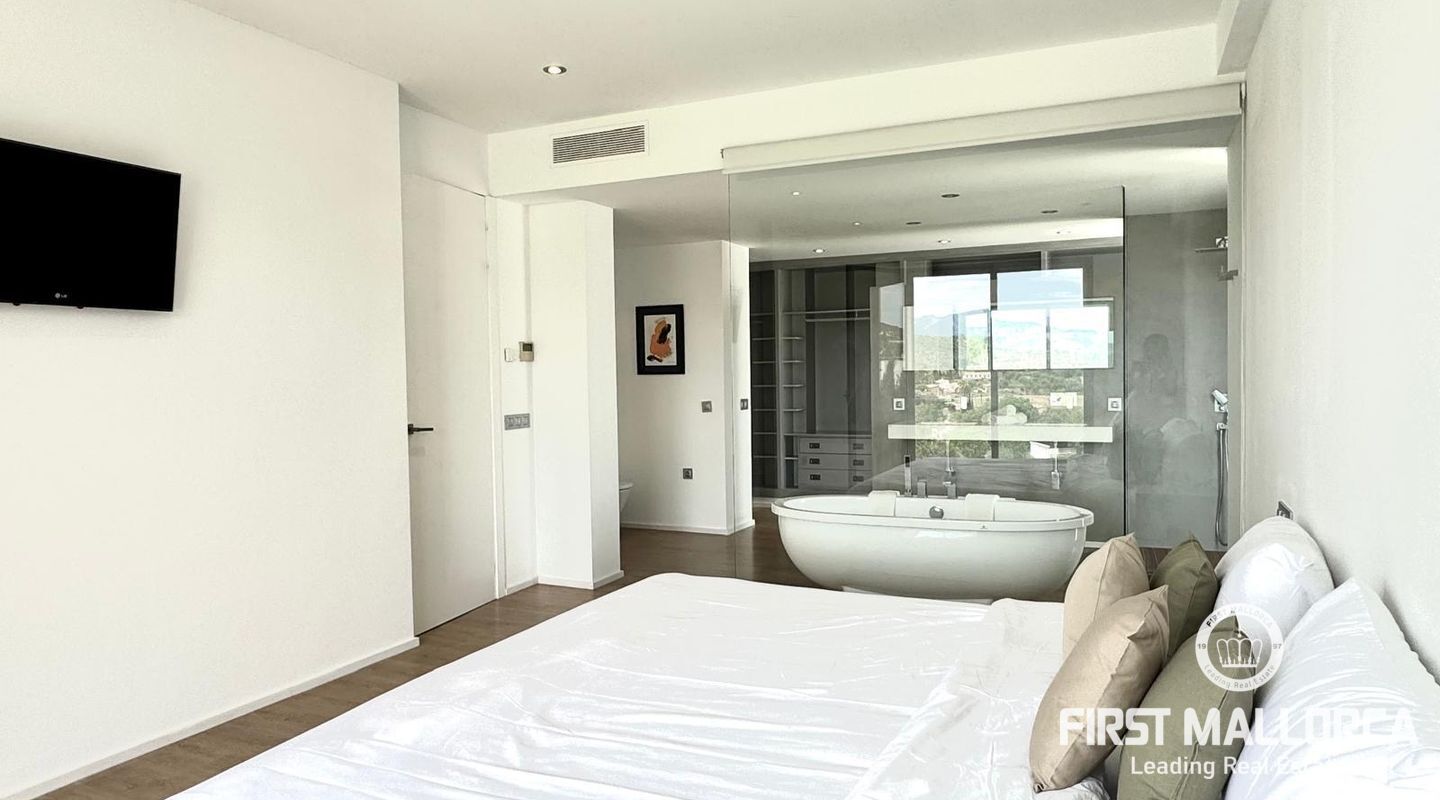 This modern and spacious light-flooded villa with all mod cons is located on the edge of the quiet village of Establiments, only a 5 minute drive from Palma. The property is ideal for families and offers plenty of space for guests and staff.