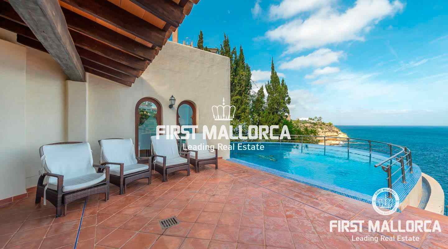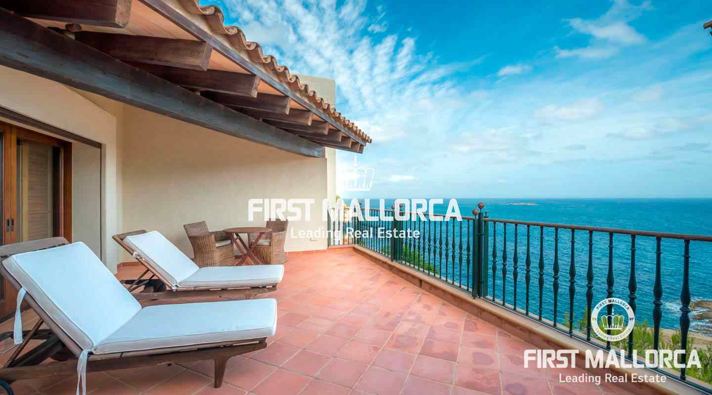 This frontline residence is located in the quiet residential area of Sol de Mallorca only a few minutes from golf courses, beaches and a small marina. The city of Palma is approximately 20 minutes by car.