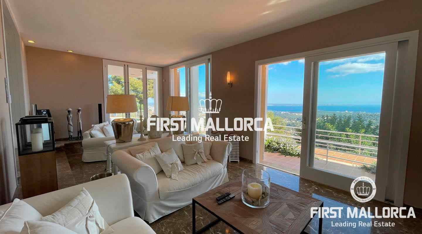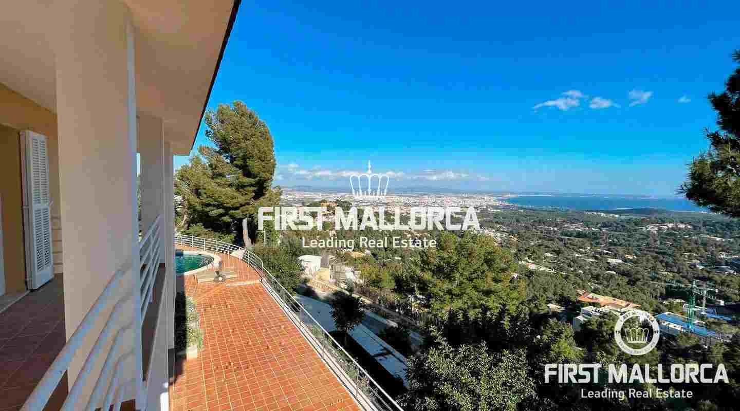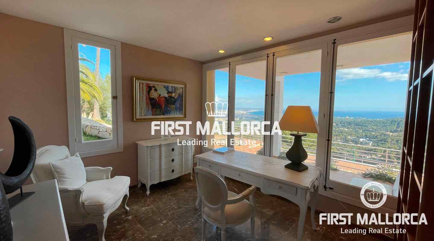 Villa with spectacular sea views located in the exclusive residential area of Son Vida. The property of 350m2 built has 3 spacious bedrooms located on the upper floor, with a master bedroom with its own bathroom en suite and a small living room in the same room, with access to the terrace from which to admire the views. On the lower floor we can find the fully equipped kitchen, with a living room with multiple accesses to the terrace and the swimming pool, as well as a small office. The laundry room is accessible from the kitchen as well as from the garage with 2 parking spaces.