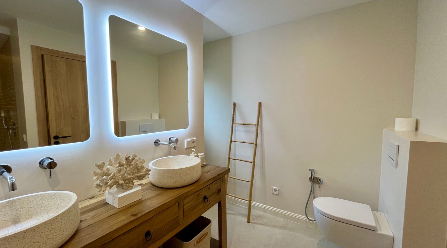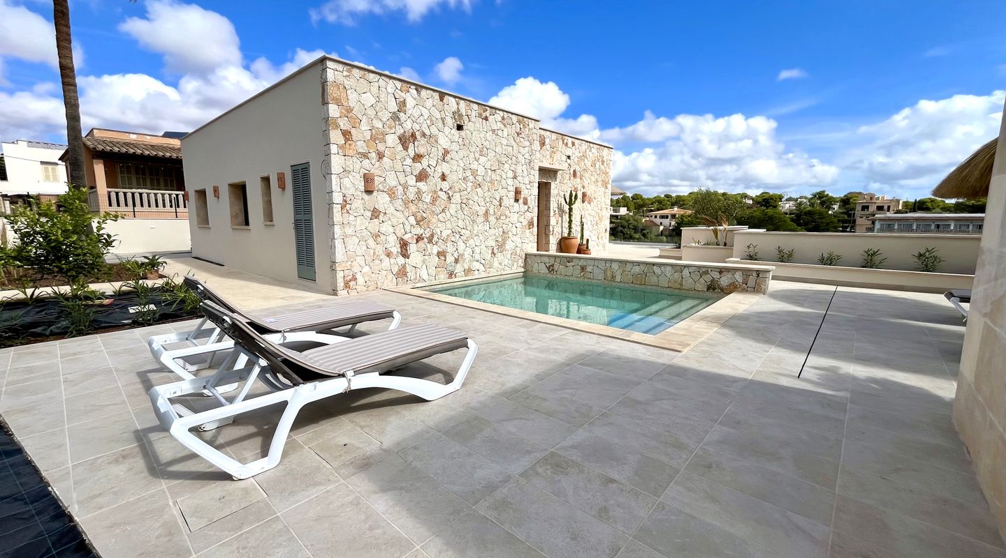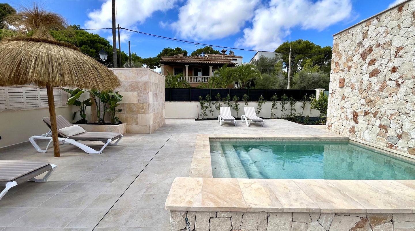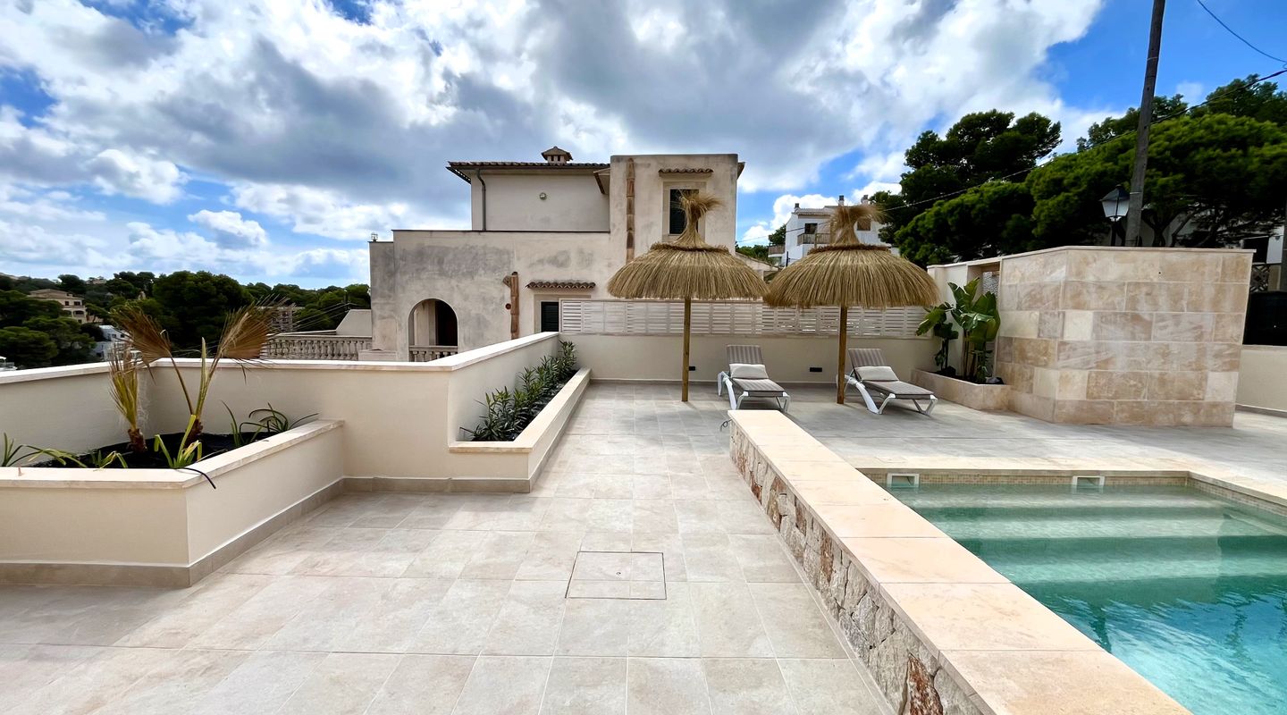 This beautifully fully renovated house is just a few steps from the sandy beach of Cala Santanyí. Stylishly and comfortably furnished, it features an open-plan living area with a large kitchen island and floor-to-ceiling glass doors that flood the space with natural light. Outside, you’ll find a fantastic outdoor area with sunny terraces, covered spaces for relaxing, and your own private pool.