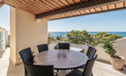 From the living area, step out onto the large south-facing terrace with stunning views of the sea and pools, perfect for sunbathing, al fresco dining, or enjoying spectacular sunsets.