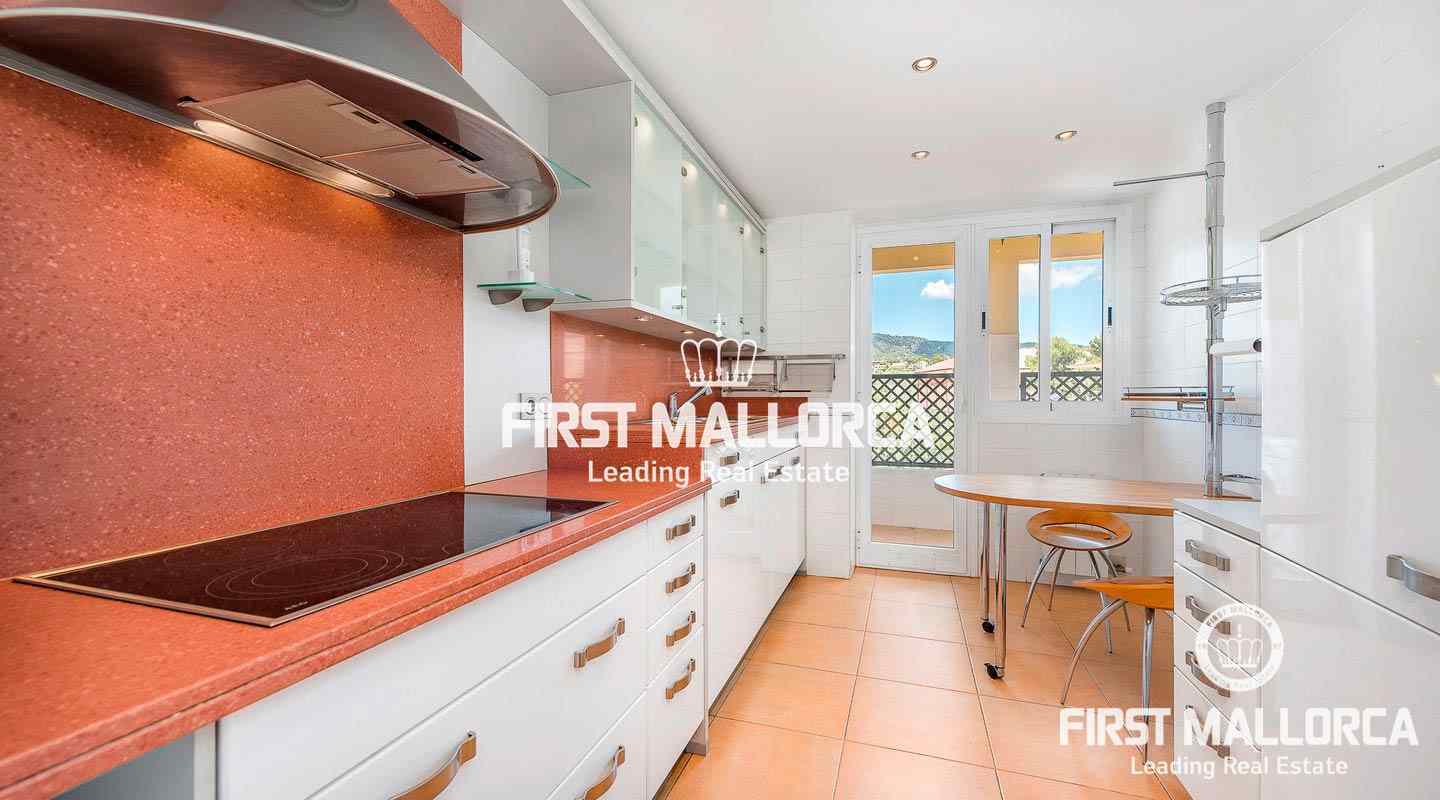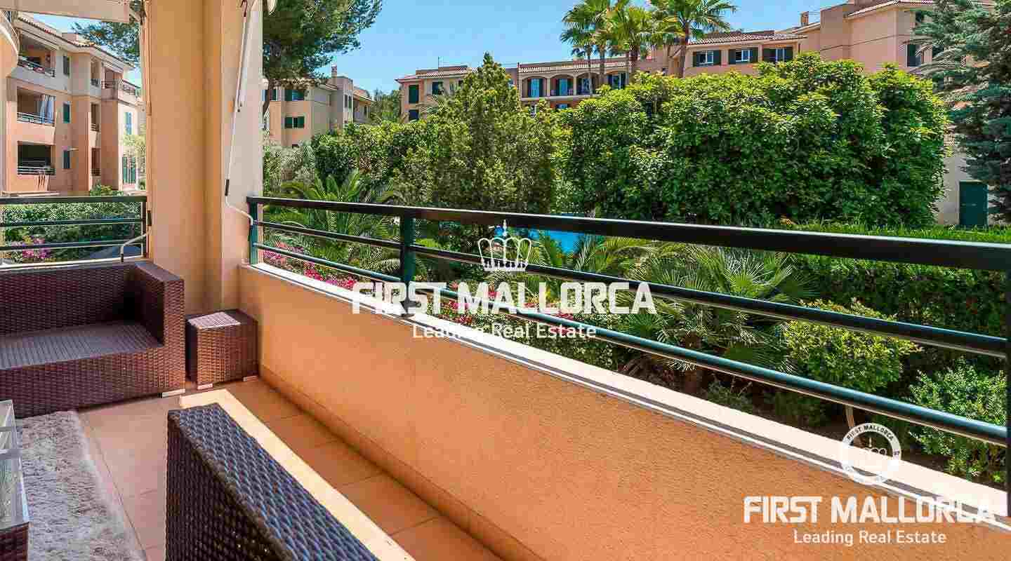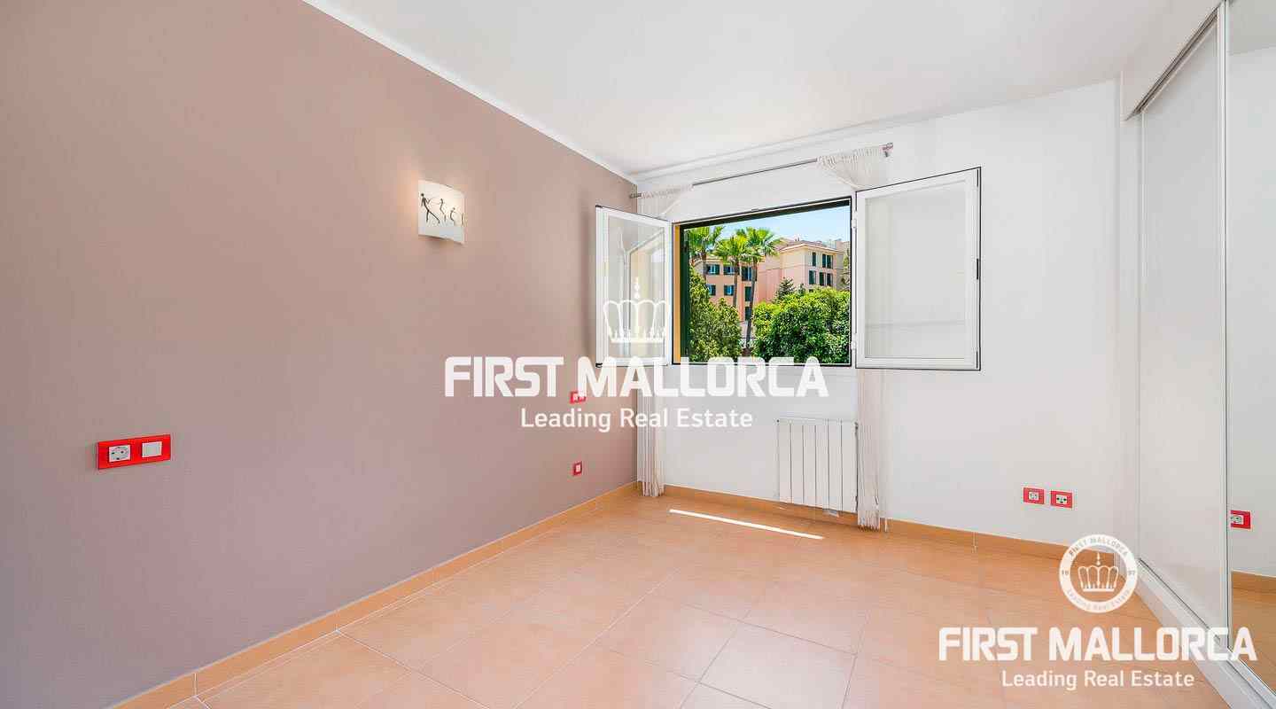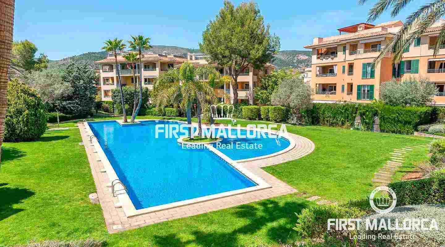 This 3-bedroom apartment is set in a beautiful and well-maintained community with a large outdoor pool. From the spacious and covered terrace you have a beautiful view of the Mediterranean garden. The Royal Golf Course, beaches and shops are nearby. The city of Palma can be reached in just 10 minutes by car and many international schools are also nearby. Other benefits include: central heating, storage room and underground parking.