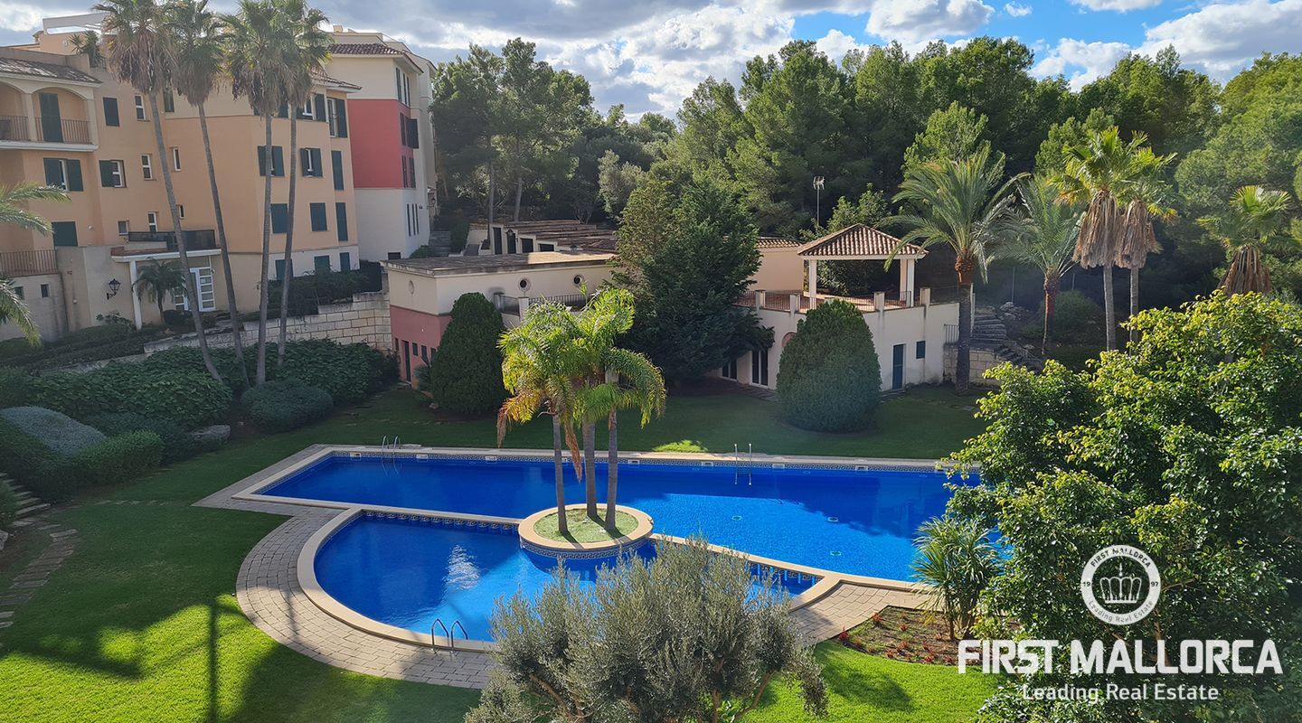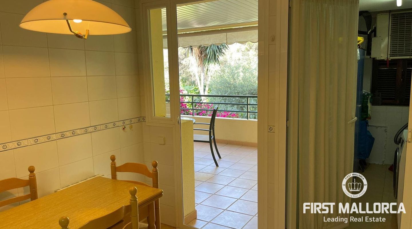 This 3 bedroom and well-maintained apartment is located in the mediterranean residential complex, Las Lomas, in Bendinat. A perfect holiday home with privacy and a nice garden view. The large living area and the covered terrace are perfect for al fresco dining. 3 double bedrooms, 2 complete bathrooms, spacious living room, large kitchen, utility room and entrance area. Garage space and storage unit included in the sale. The perfectly located community offers 2 outdoor swimming pools.