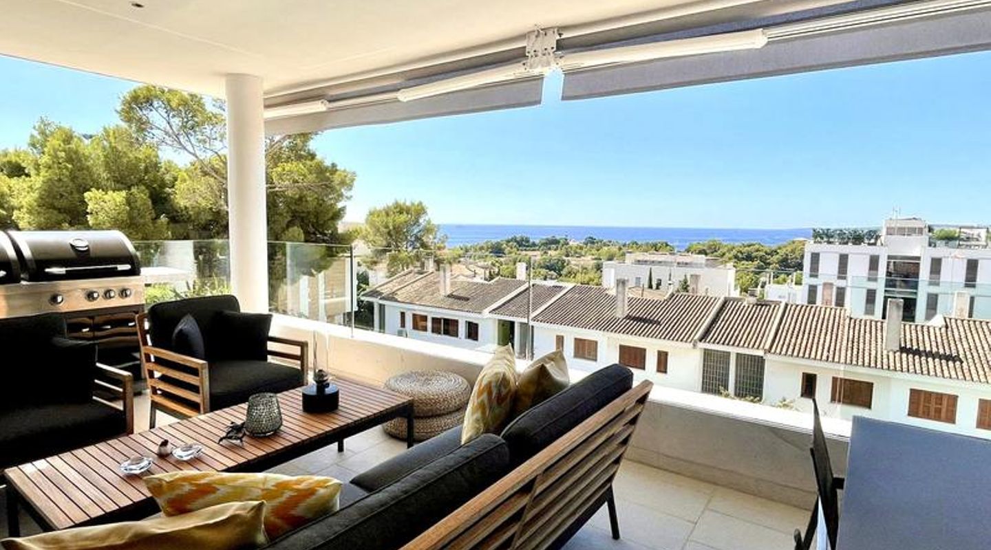 An exclusive and luxury apartment, situated in the residential area of Son Buit, Bonanova, very close to Palma de Mallorca. It enjoy nice views to the bay of Palma. This property is designed to the highest standards and specifications. It has a bright constructed area of 114 m2 and is divided as follows: A spacious living room, an open kitchen which has direct access to the terrace, 2 bedrooms, one bathroom ensuite and another guest bathroom. These beautiful apartments are close to the famous international school Queens College, the big shopping centre Porto Pi and the elegant harbour Marina Port de Mallorca.