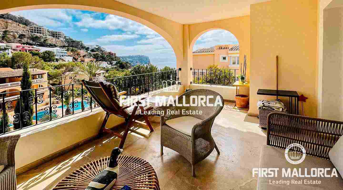 This modern sea view apartment is located in a very well-maintained community in the famous Cala Moragues in Puerto de Andratx.