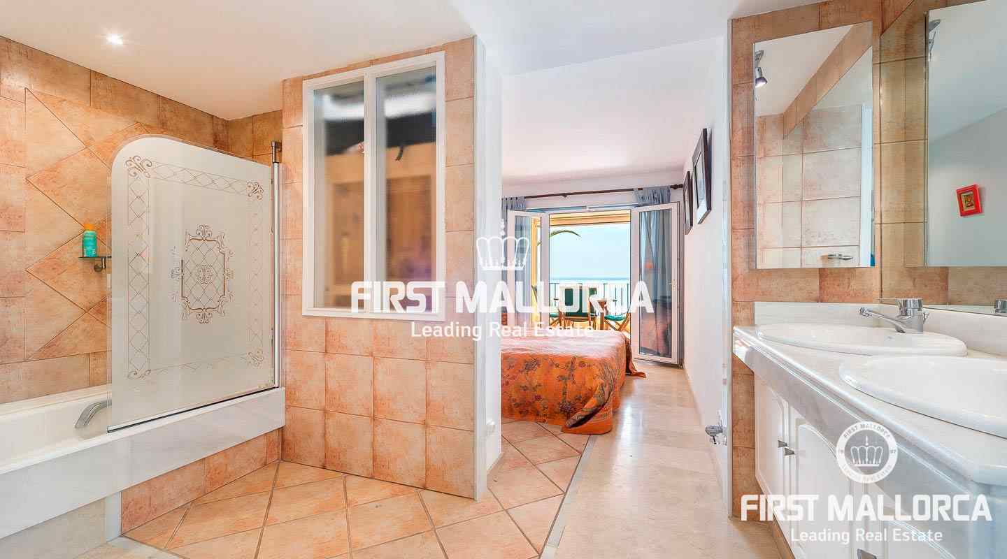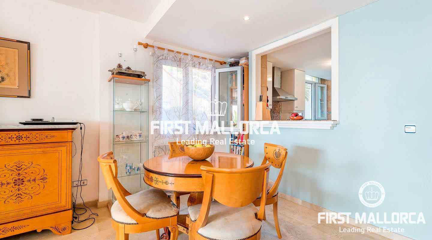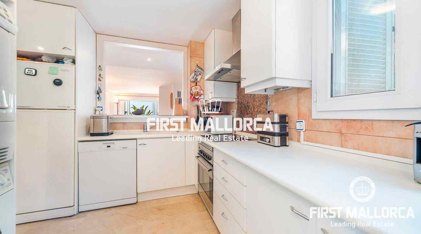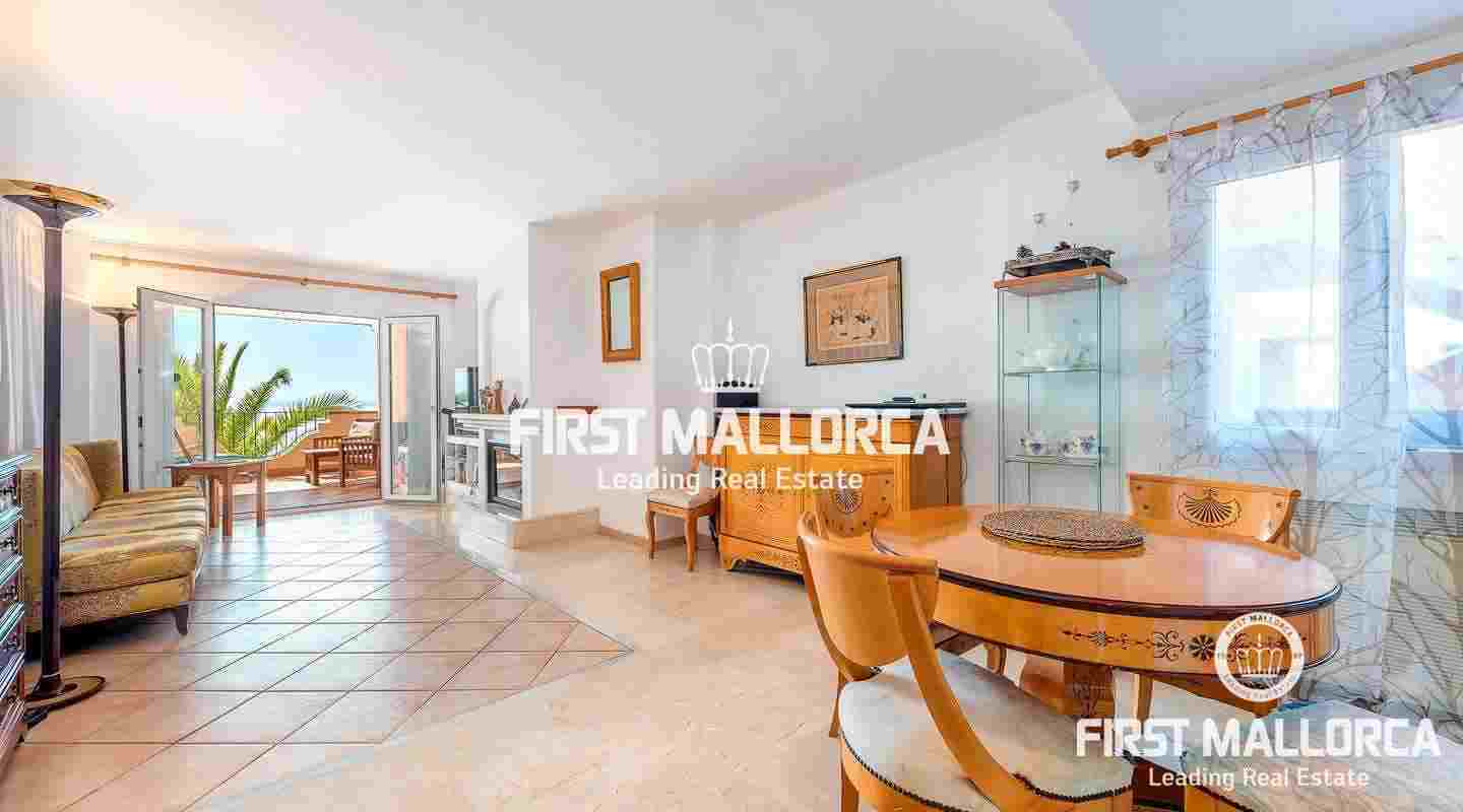 The absolute highlight is the large and private terrace, which has plenty of space for e.g. an outdoor kitchen, a chill-out area and a large dining table. Further facilities include air conditioning hot/cold, features and a fireplace. The complex has a community swimming pool and direct sea access. Do not hesitate to contact the First Mallorca team to arrange a visit!