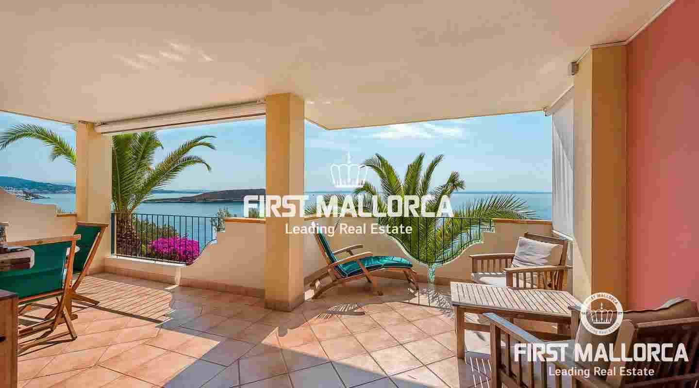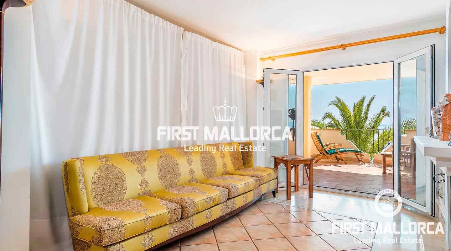 This spacious apartment with outstanding panoramic sea views enjoys an enviable frontline location in Cala Vinyes, only a few steps from the sea on the south-west coast of Mallorca.