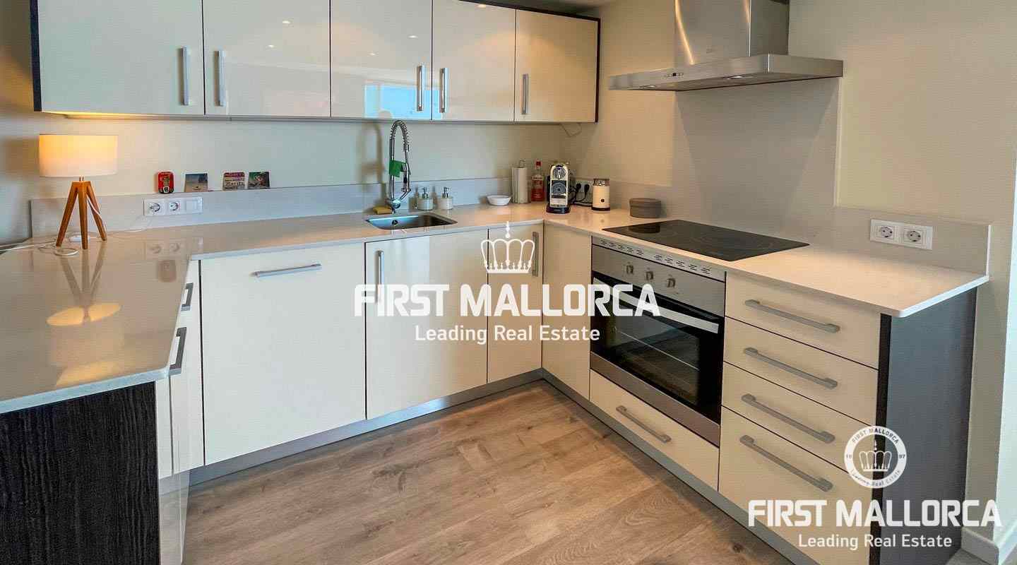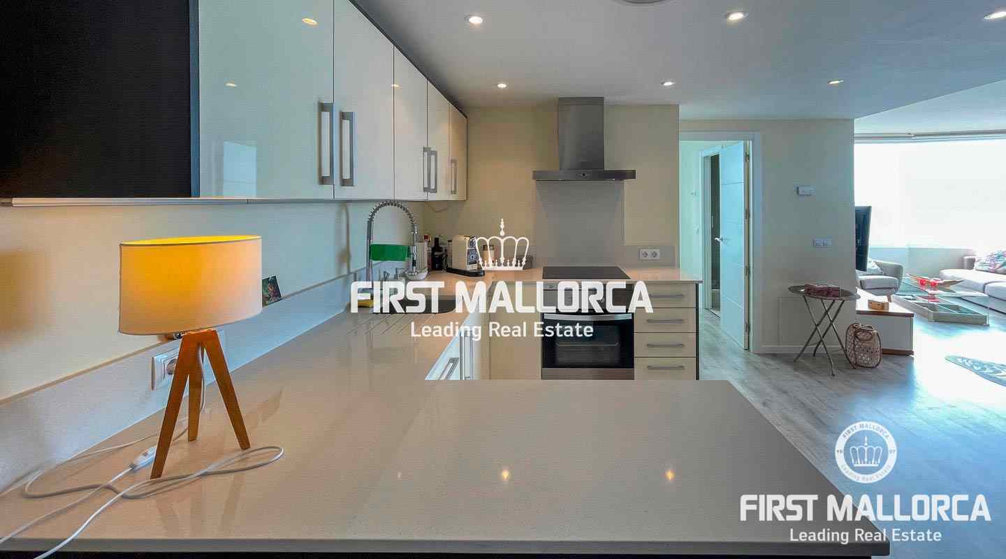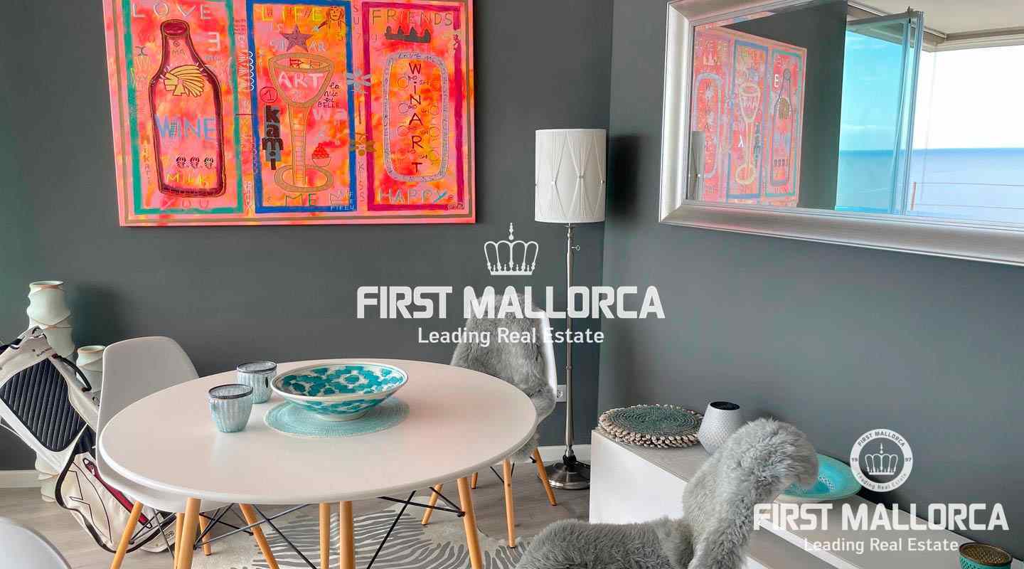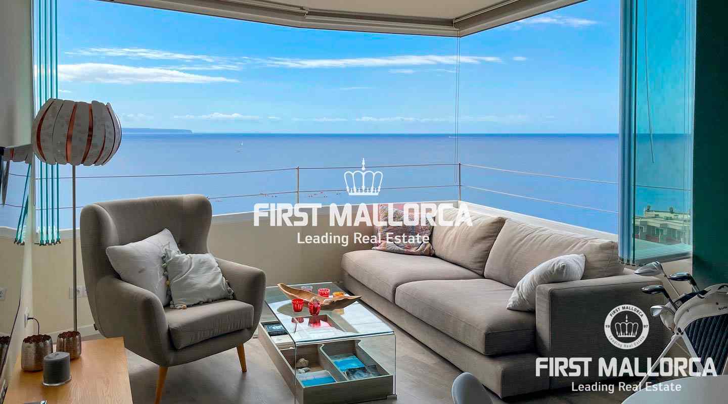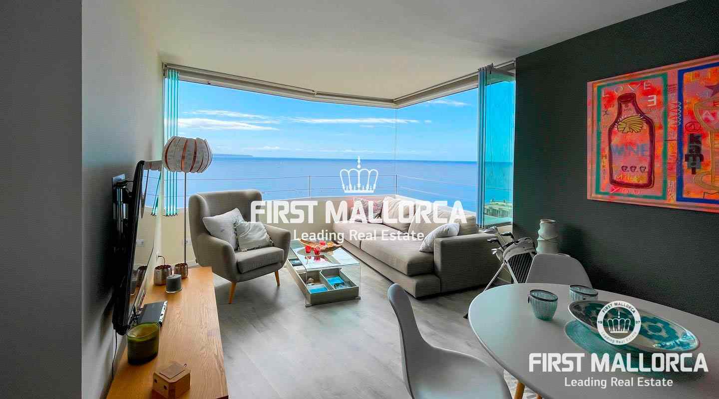 This beautiful renovated apartment is the perfect holiday home. The amazing seaviews can be enjoyed from both bedrooms and from the living area, which thanks to the completely foldable windows can be completely opened up, allowing the seabreeze in and even sunbathing in your own living room. The apartment is located on a 10th floor and offers two bedrooms, both with en-suite bathrooms, and a open plan living and kitchen area, It is sold fully furnished. The complex is located in Illetes, in walking distance to restaurants, bars, shops and of course the dazzling beach of Illetes. It offers a front sea community pool, and direct access to the sea.