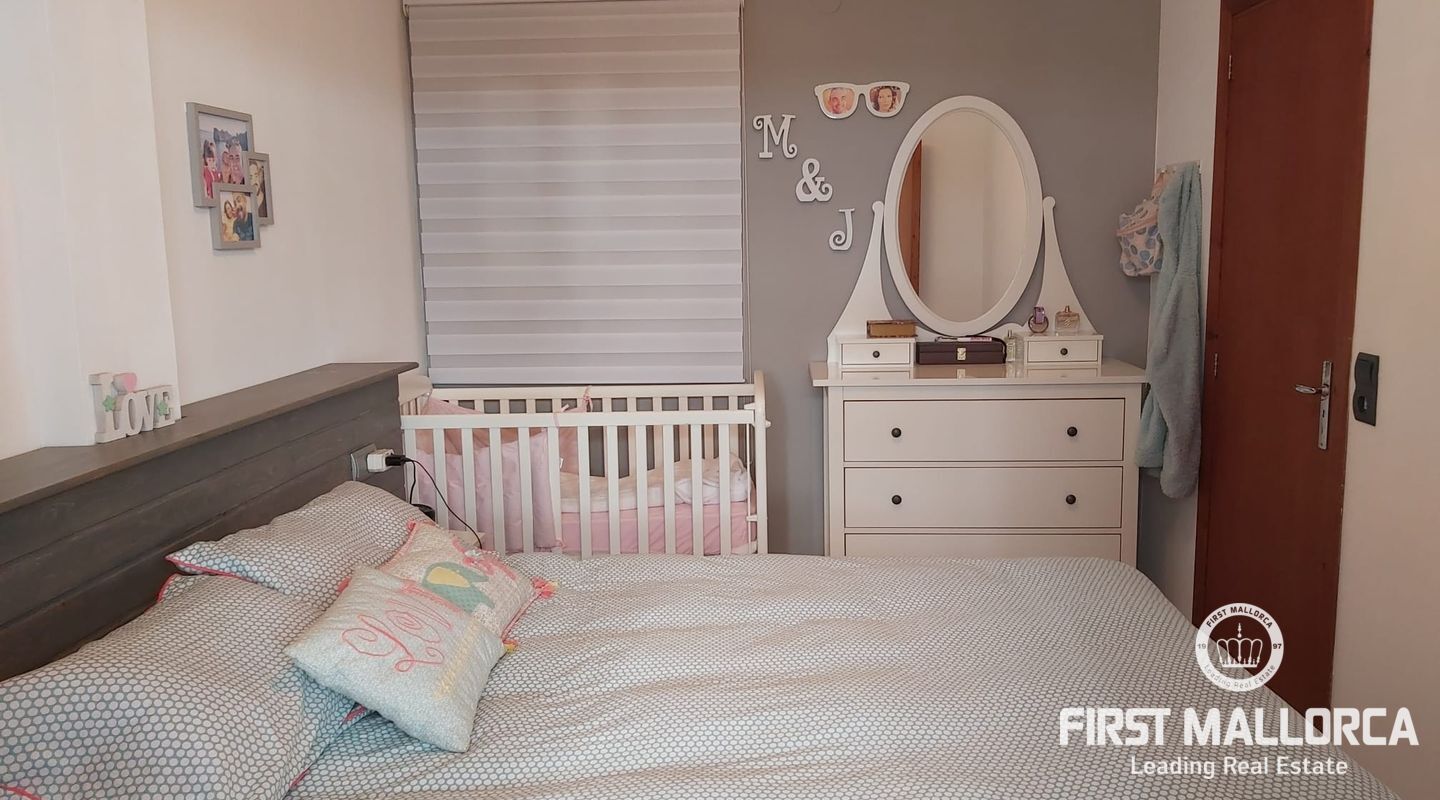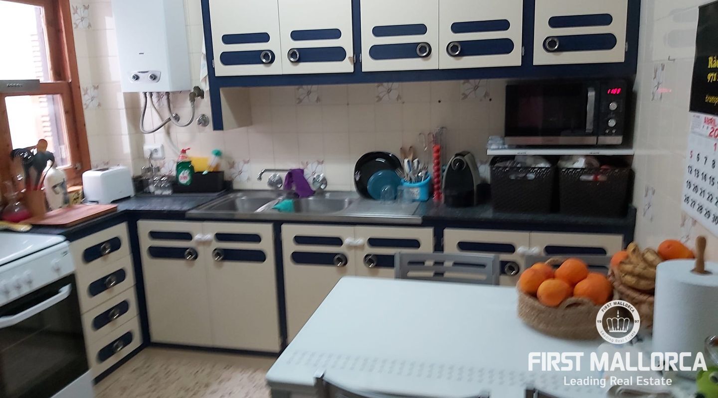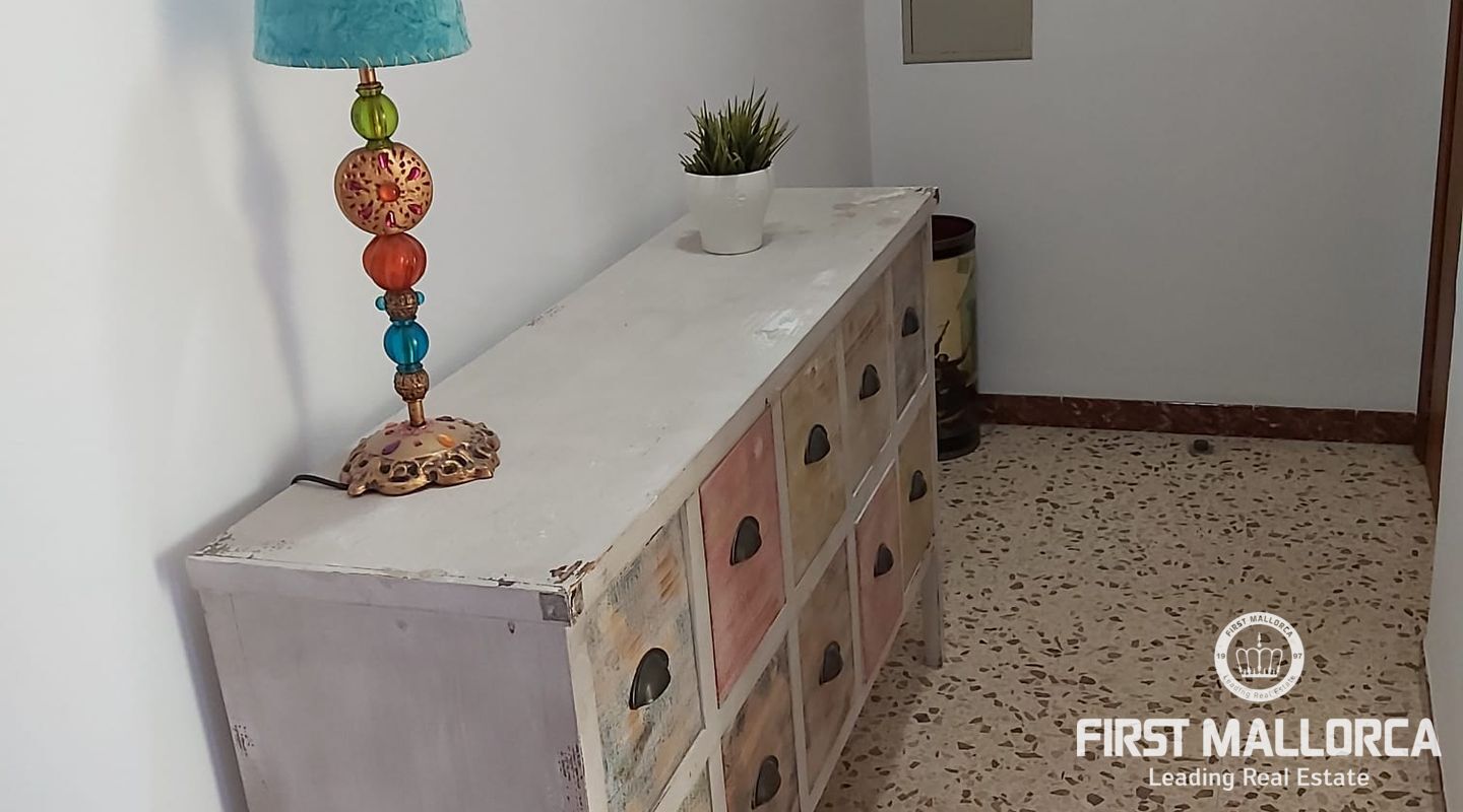 Cute and bright third floor flat in Llucmajor with very good access and in a very quiet area. This third floor without lift of 99 m2 is divided in a spacious and bright living-dining room with exit to a small balcony of about 5 m2, 4 bedrooms of which two of them are double, 2 bathrooms with shower in each of them. The kitchen is of good size and is fully equipped, but needs to be updated. Wooden and aluminium exterior carpentry in some areas of the house. It also has 2 air conditioners with heat pump, city gas heater and individual water meter. Due to its location it has unobstructed views to the village and surroundings, from its upper communal terrace there are views to the Puig de Randa. Very quiet area with easy access and with the possibility to park easily. All kinds of shops, restaurants, bars and a school can be found in the surrounding area. Do not hesitate to contact us to schedule a viewing.