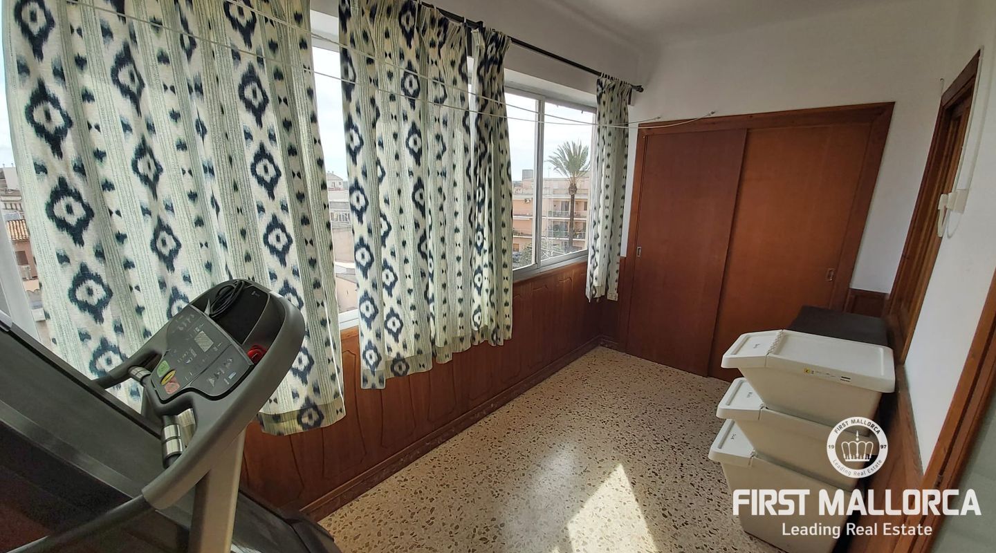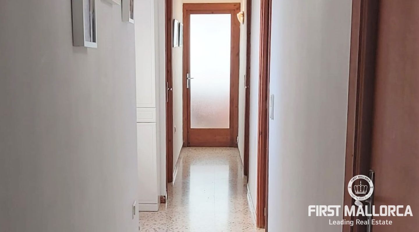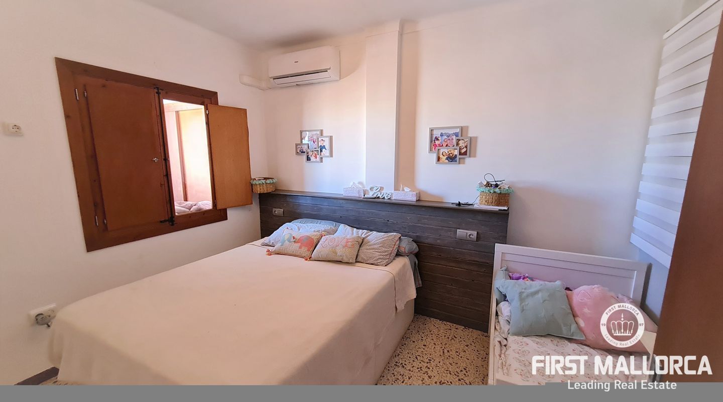 Cute and bright third floor flat in Llucmajor with very good access and in a very quiet area. This third floor without lift of 99 m2 is divided in a spacious and bright living-dining room with exit to a small balcony of about 5 m2, 4 bedrooms of which two of them are double, 2 bathrooms with shower in each of them. The kitchen is of good size and is fully equipped, but needs to be updated. Wooden and aluminium exterior carpentry in some areas of the house. It also has 2 air conditioners with heat pump, city gas heater and individual water meter. Due to its location it has unobstructed views to the village and surroundings, from its upper communal terrace there are views to the Puig de Randa. Very quiet area with easy access and with the possibility to park easily. All kinds of shops, restaurants, bars and a school can be found in the surrounding area. Do not hesitate to contact us to schedule a viewing.