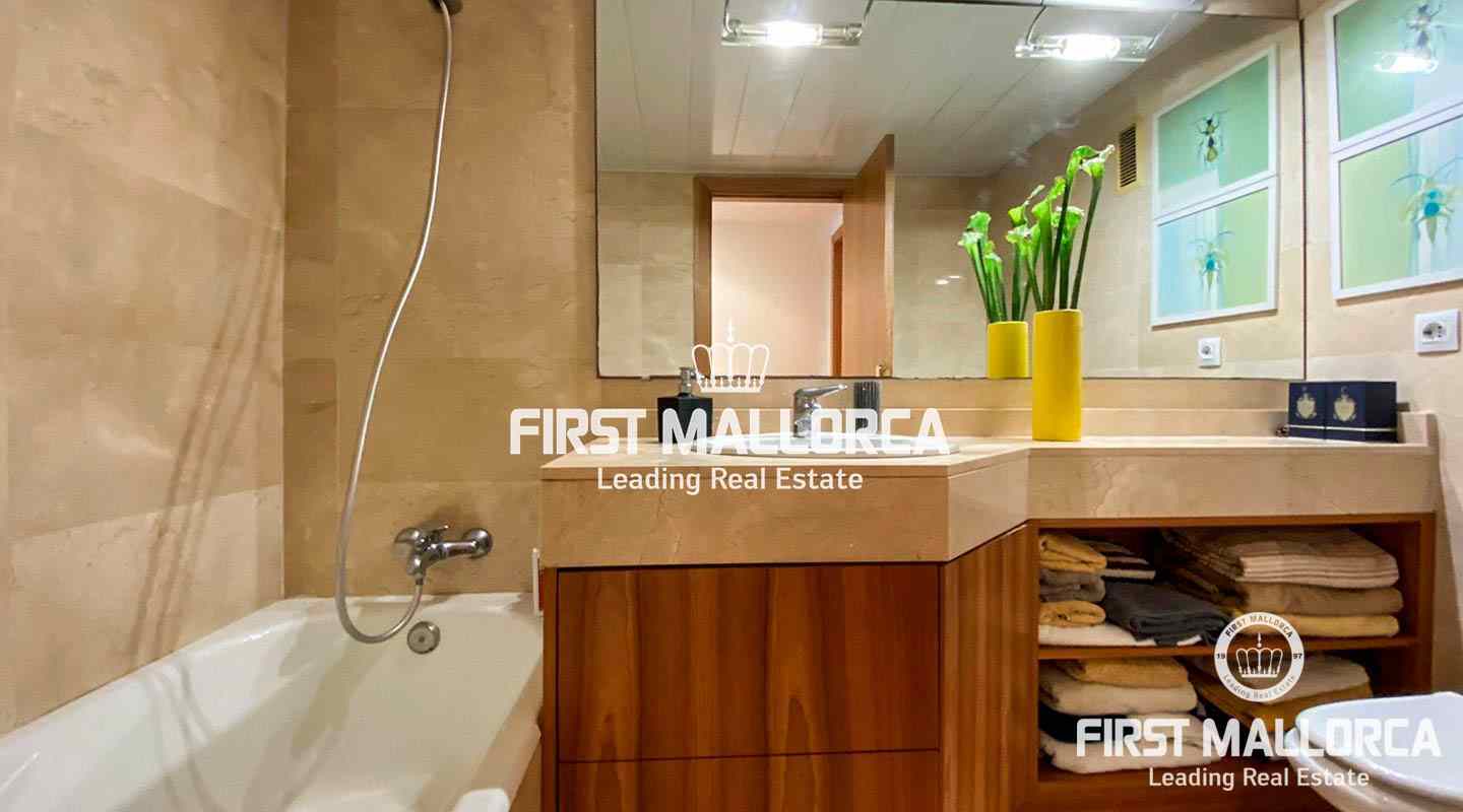 It has a constructed area of approx. 120 m² and it is distributed in three bedrooms, two bathrooms and a guest toilet. It has a fully equipped kitchen with utility room and a large terrace of 50 m². Other features are: central heating by air conditioning hot / cold, parquet floors, double glazing, elevator, garage. Opportunity to live in a residential area on the outskirts of Palma very close to the beach.