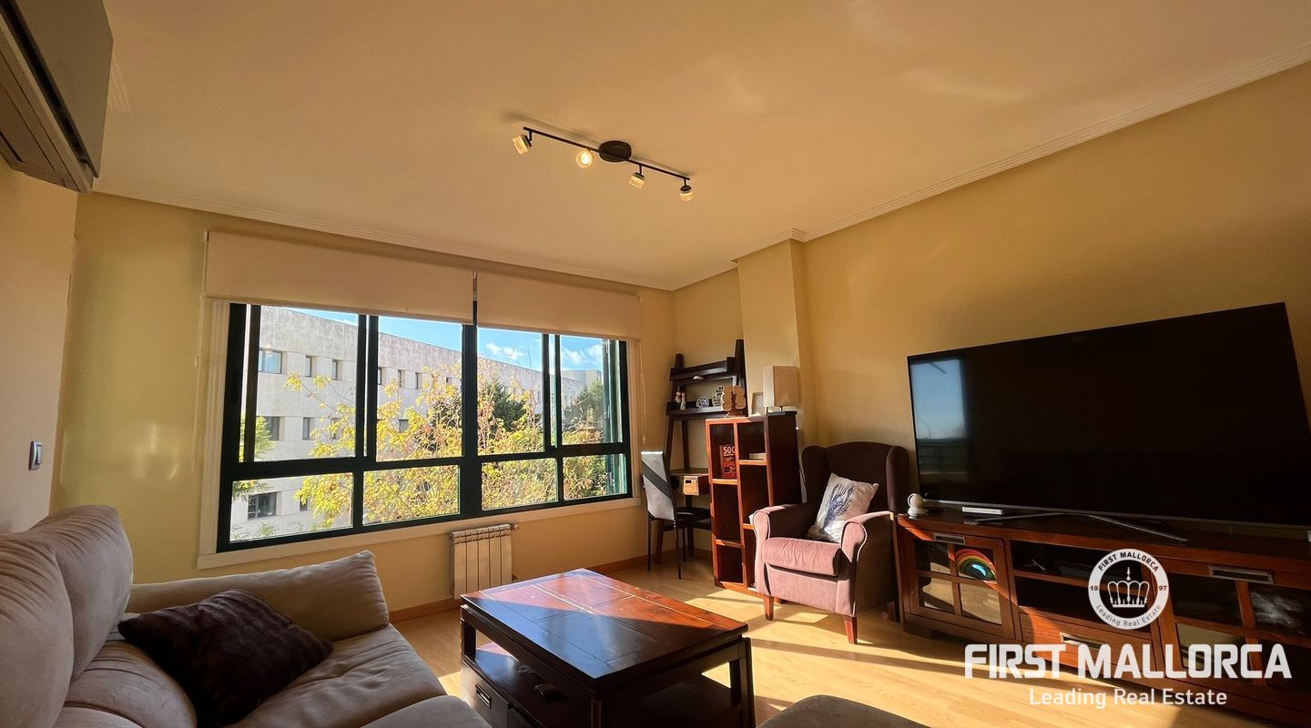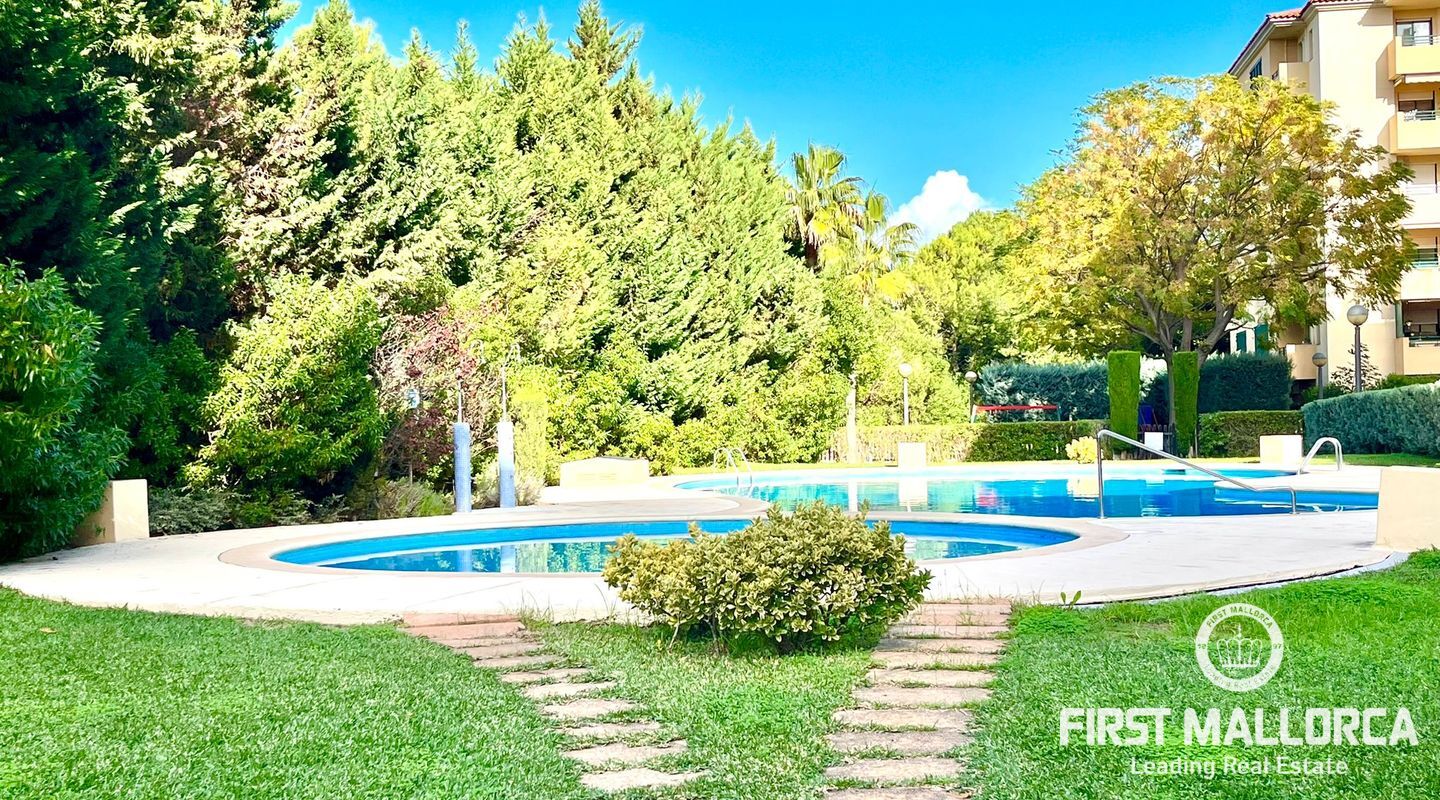 This apartment is located in a family-friendly complex near the Juaneda Miramar clinic. In a well-maintained communal area resembling a park, there's a spacious pool, a playground, and paddle court. The apartment comprises a large living-dining area, a newly renovated kitchen, four bedrooms, and two bathrooms. The principal bedroom features an en suite bathroom. From the living room, there's access to a spacious balcony with an open view and south orientation. The apartment also includes a garage space and a generous storage room