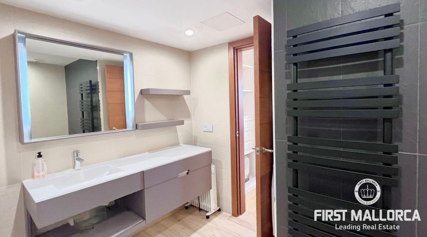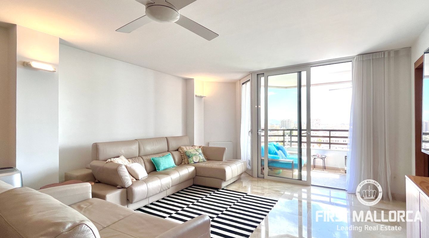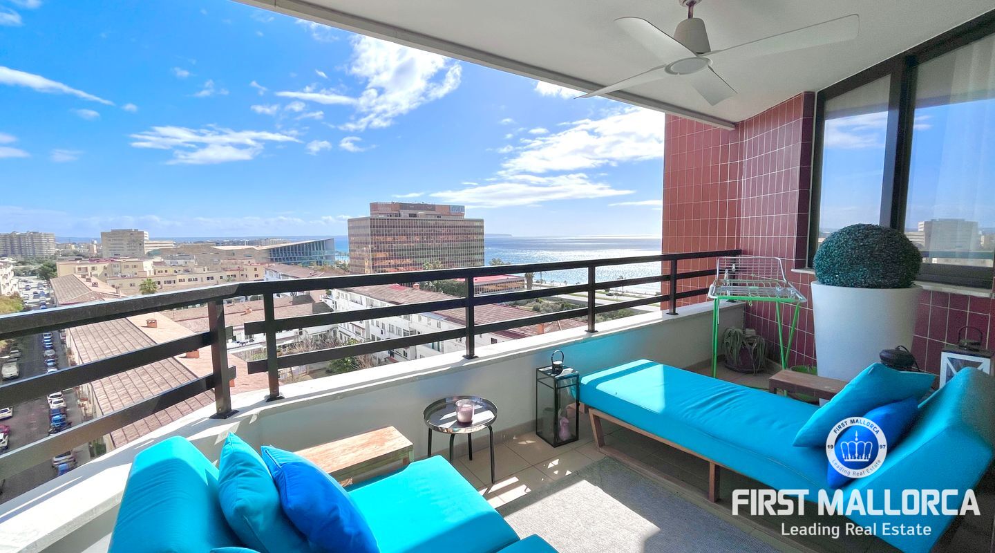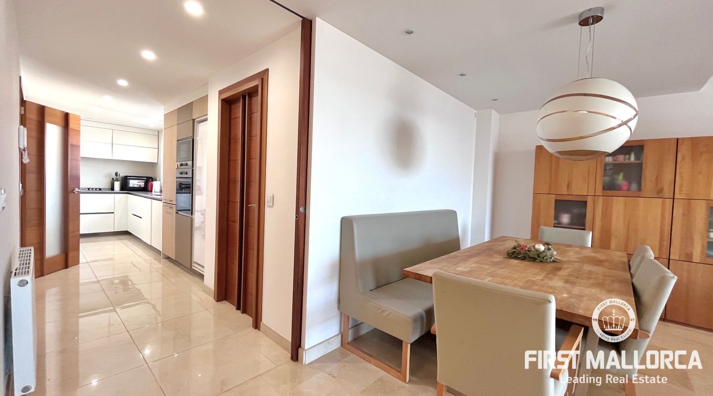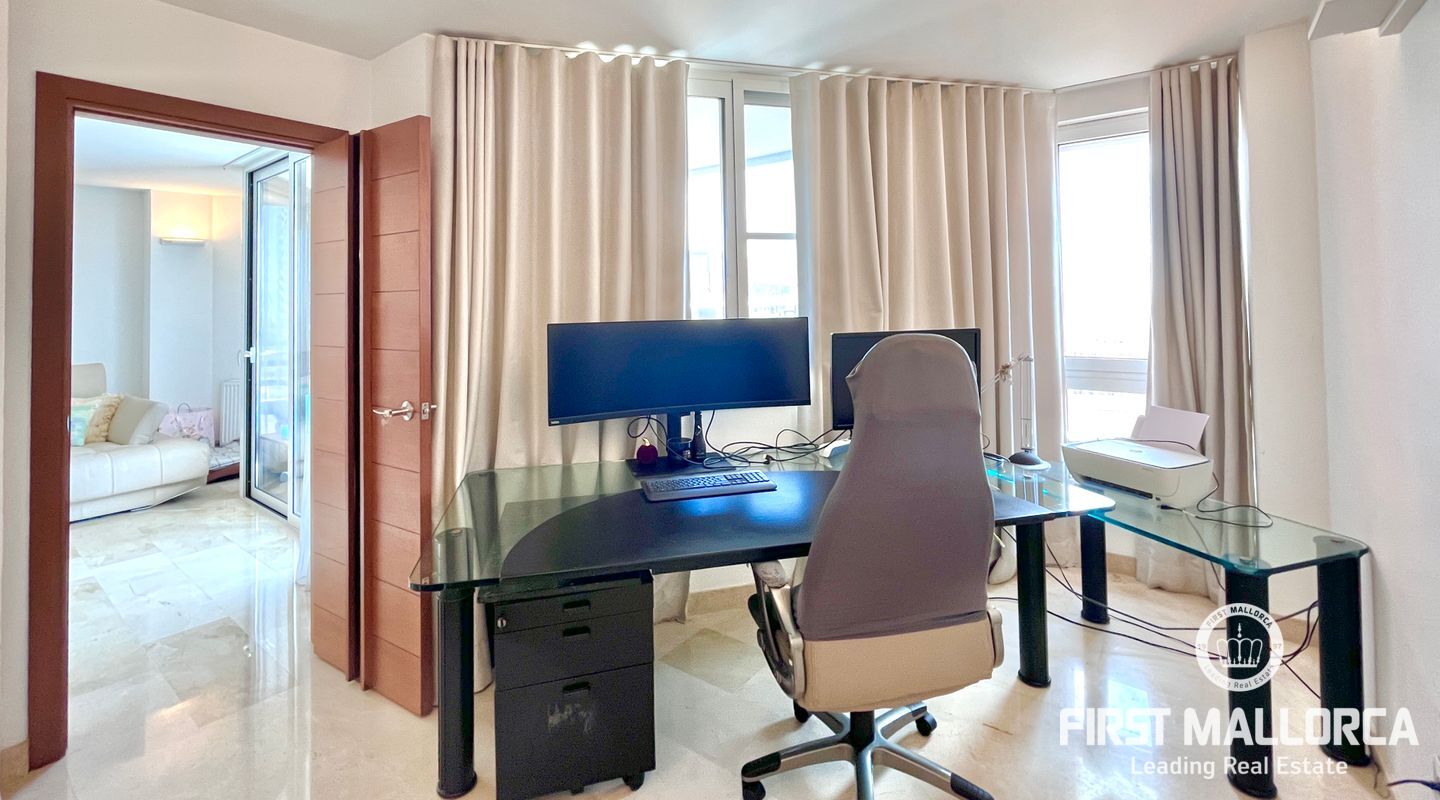 Fantastic luxury flat with sea views in the neighborhood of Foners, next to the historic center of Palma and on the coastline. The flat is located in a high-standing building, with a beautiful large entrance with a fountain decorated with green plants, 4 lifts (for people and freight) that go down to the underground parking of the building. The flat consists of 4 double bedrooms, 3 bathrooms (2 of them en suite), an independent kitchen with a laundry room, the sliding door of the kitchen leads to the living-dining room with a fantastic terrace with views to the sea and the city. The flat is equipped with a ducted air-conditioning system, a city gas central heating system, in the living room there is an electric fireplace, and marble floors throughout the house, the master bedroom has its own dressing room, and other bedrooms are equipped with built-in wardrobes. A parking space is included in the price. Don't miss this fantastic opportunity to live in Palma city, next to the historic center, the sea, and the beach, and at the same time with all urban services within easy reach. Please do not hesitate to contact the First Mallorca team to arrange a viewing.