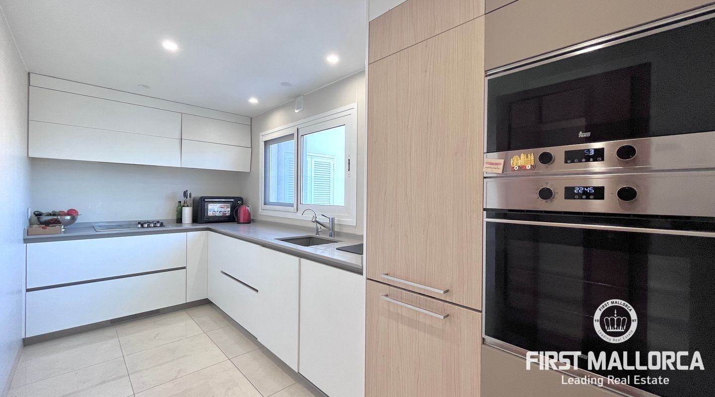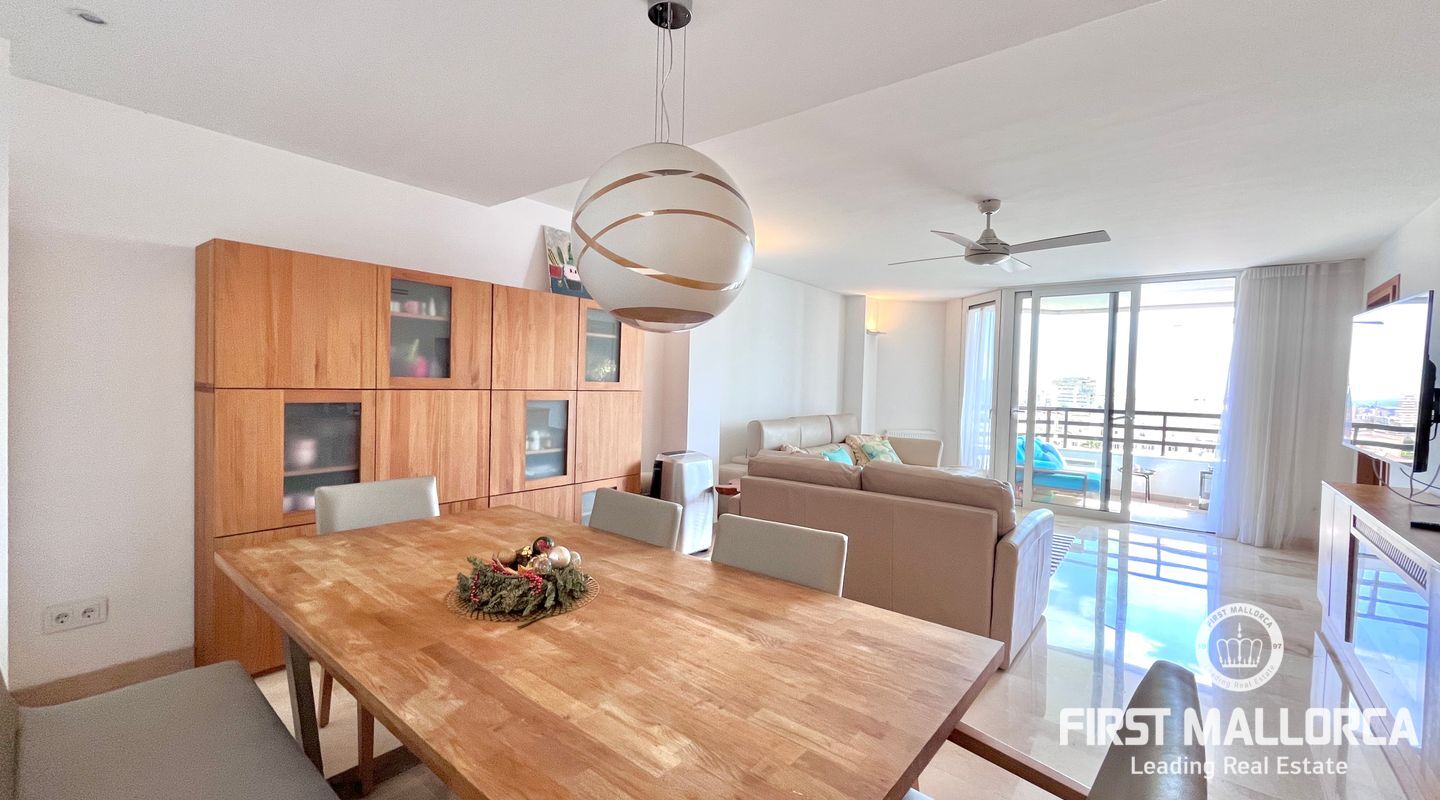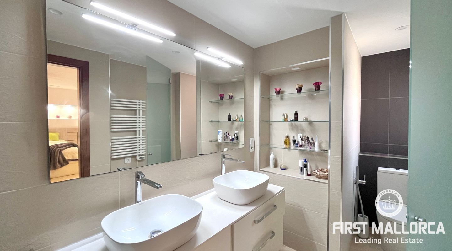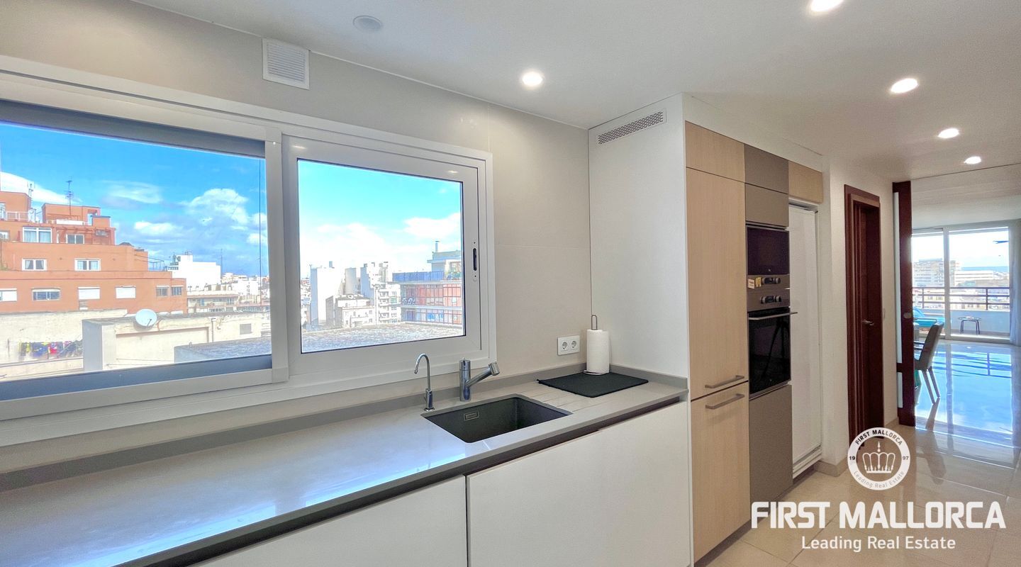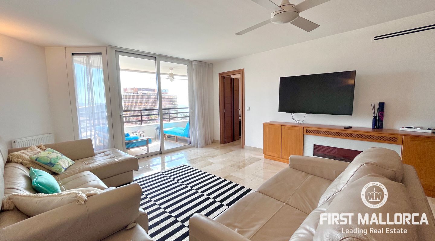 Fantastic luxury flat with sea views in the neighborhood of Foners, next to the historic center of Palma and on the coastline. The flat is located in a high-standing building, with a beautiful large entrance with a fountain decorated with green plants, 4 lifts (for people and freight) that go down to the underground parking of the building. The flat consists of 4 double bedrooms, 3 bathrooms (2 of them en suite), an independent kitchen with a laundry room, the sliding door of the kitchen leads to the living-dining room with a fantastic terrace with views to the sea and the city. The flat is equipped with a ducted air-conditioning system, a city gas central heating system, in the living room there is an electric fireplace, and marble floors throughout the house, the master bedroom has its own dressing room, and other bedrooms are equipped with built-in wardrobes. A parking space is included in the price. Don't miss this fantastic opportunity to live in Palma city, next to the historic center, the sea, and the beach, and at the same time with all urban services within easy reach. Please do not hesitate to contact the First Mallorca team to arrange a viewing.