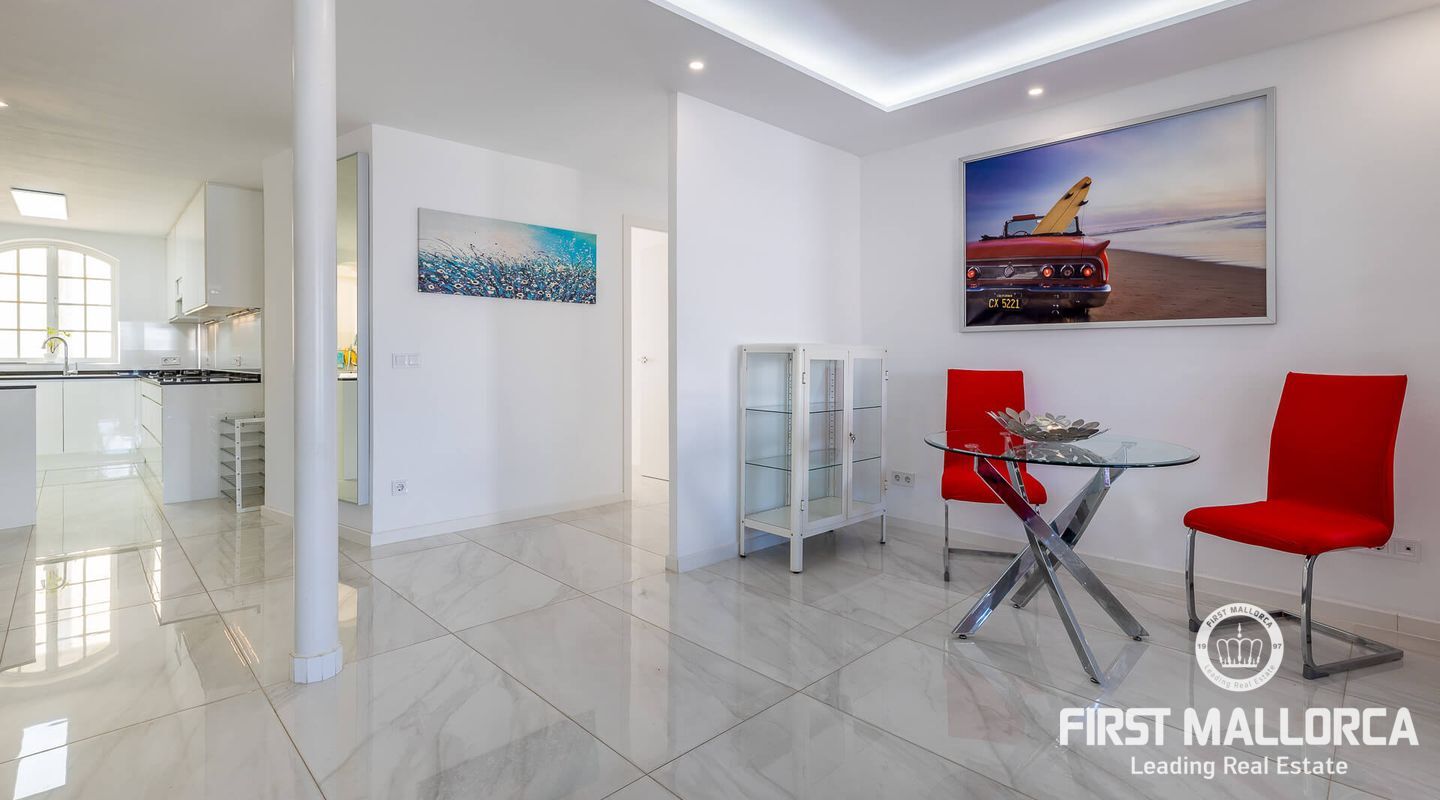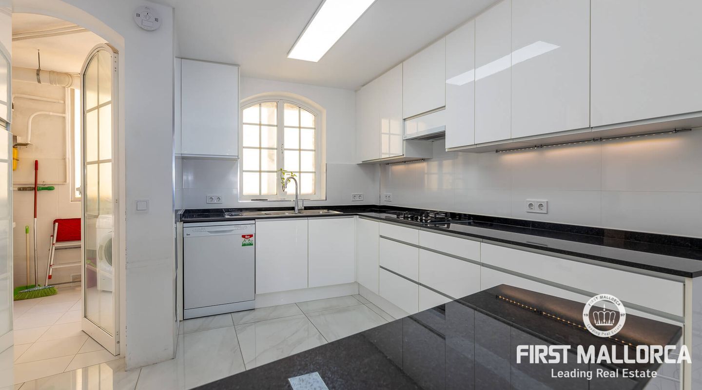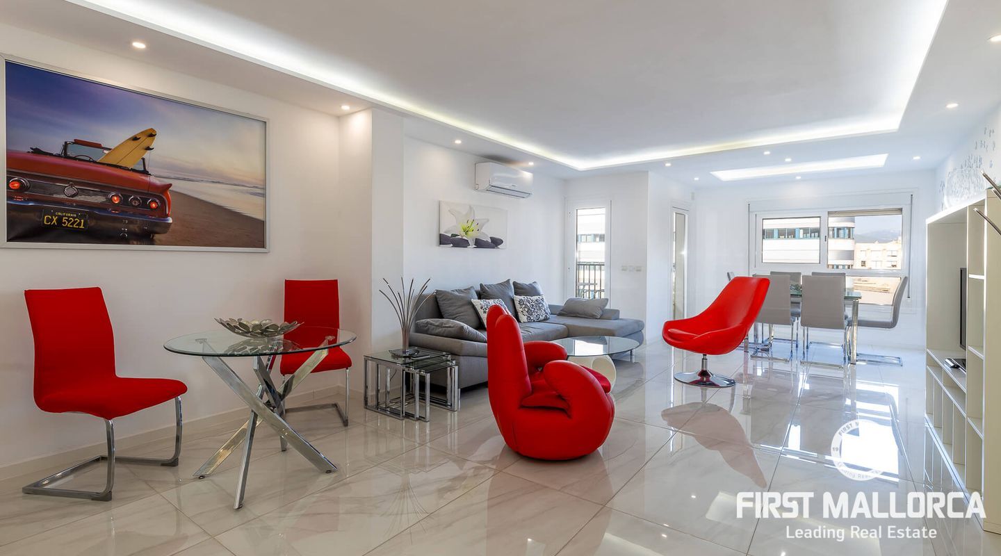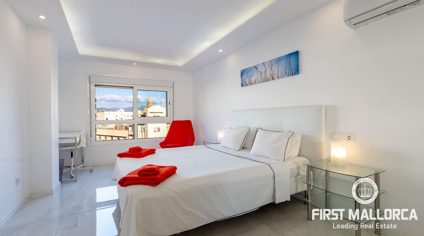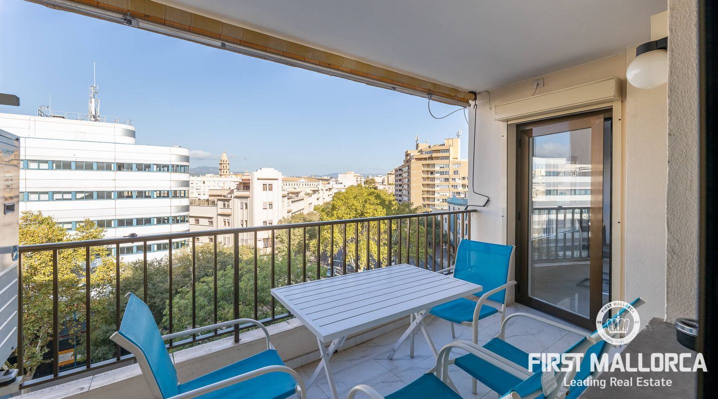 This spacious flat, completely refurbished, offers views of the sea and the old town of Palma. With a constructed area of 153 m², this property has 4 bright double bedrooms, all equipped with air conditioning. The spacious living room is integrated with a fully equipped open plan kitchen. Furthermore, the property disposes of two complete bathrooms, a guest toilet and a utility room. There is also the possibility of buying a parking space in the same building for 50,000 euros.