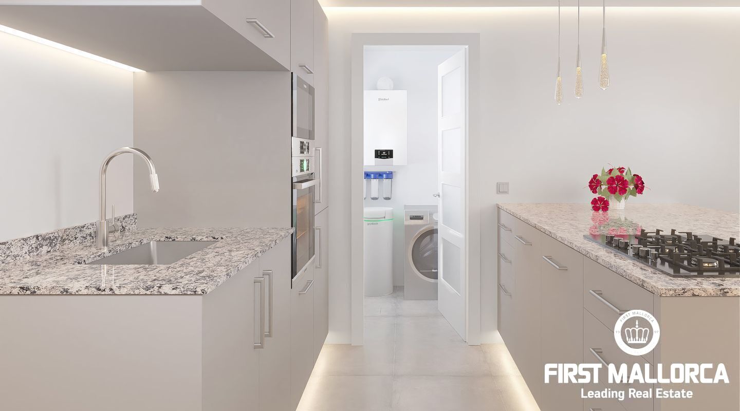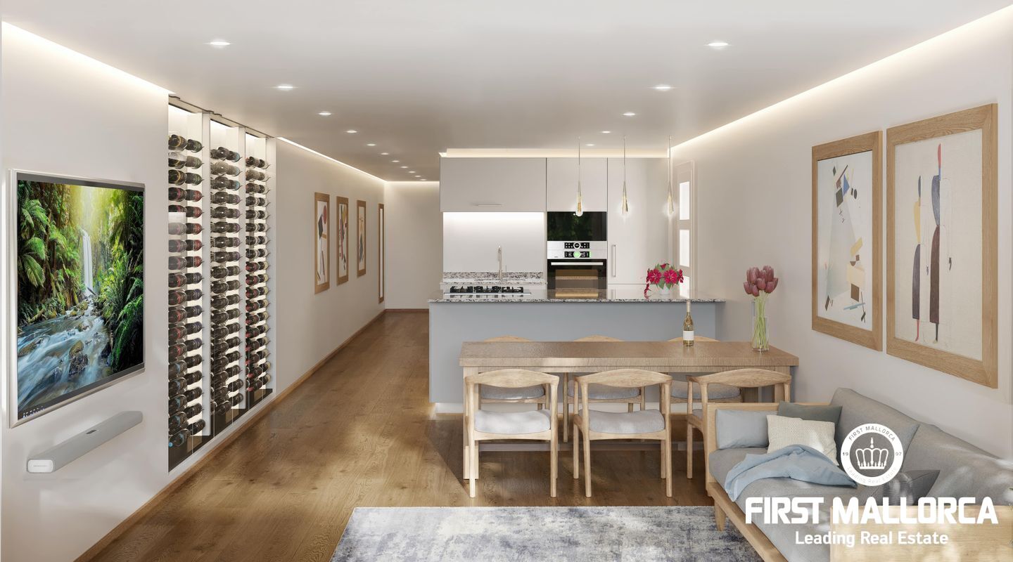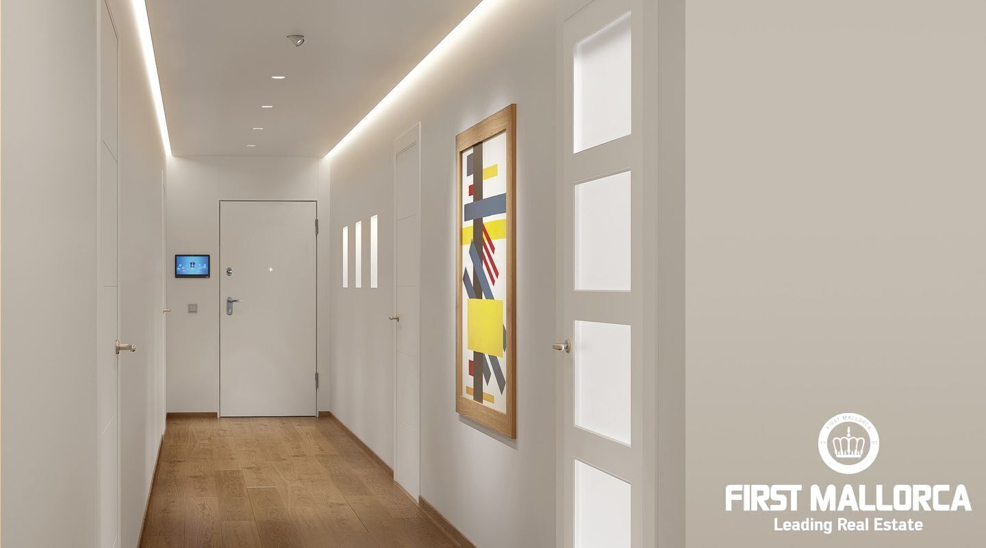 The modern and cosy property is equipped with high-end light design and boast a total living area of 132m². Scandinavian style, light and warm beige and grey tones, large hallway, three bedrooms, two bathrooms, a spacious living room and an open plan white, fully equipped high-tech styled kitchen with an island and an induction stove. The apartment's ambience is completed with a terrace exclusively planted with native Mediterranean plants. The entire property is enabled with a modern home automation system (Smart Home). There is a possibility to rent a parking space in the garage.