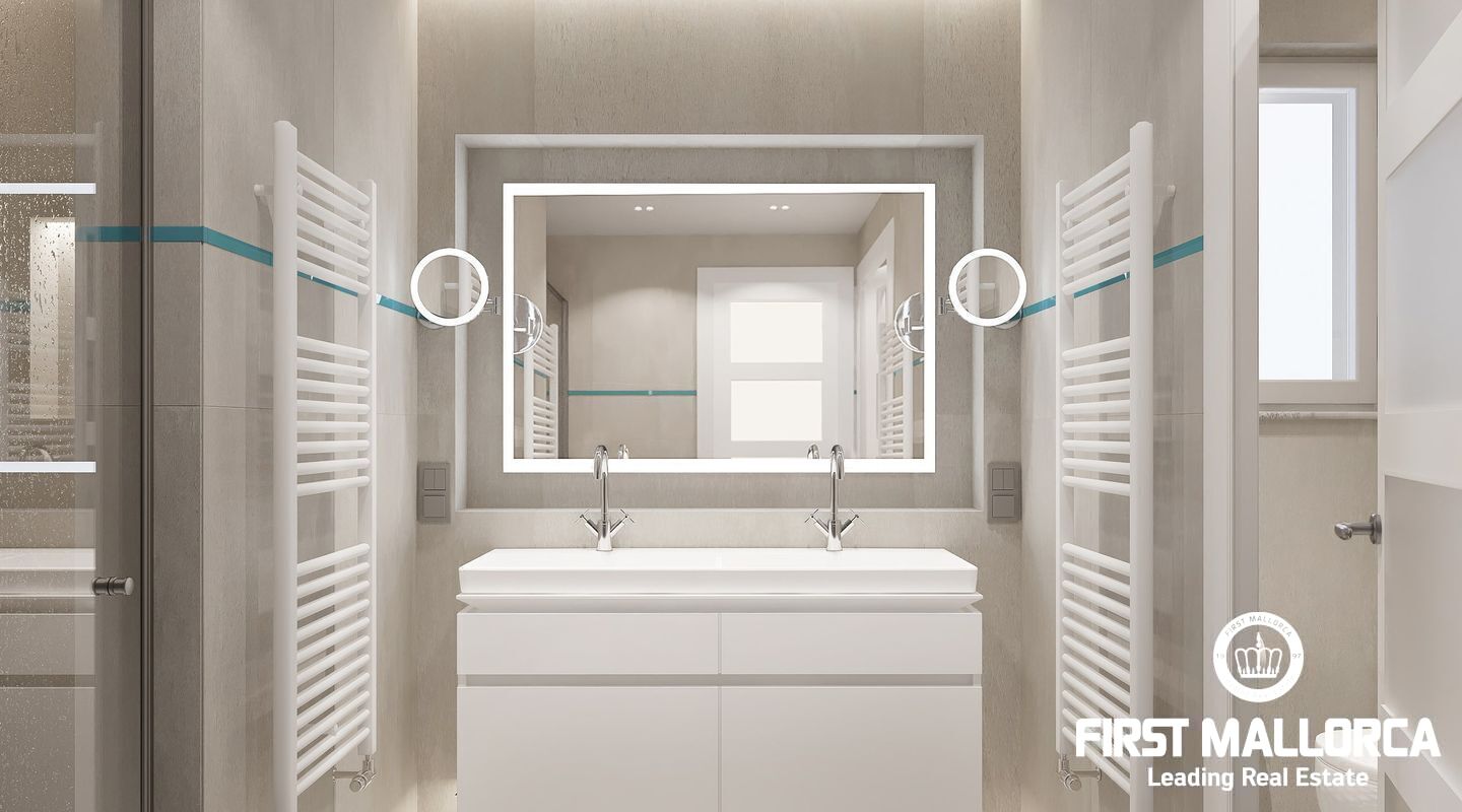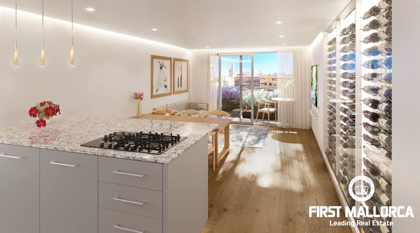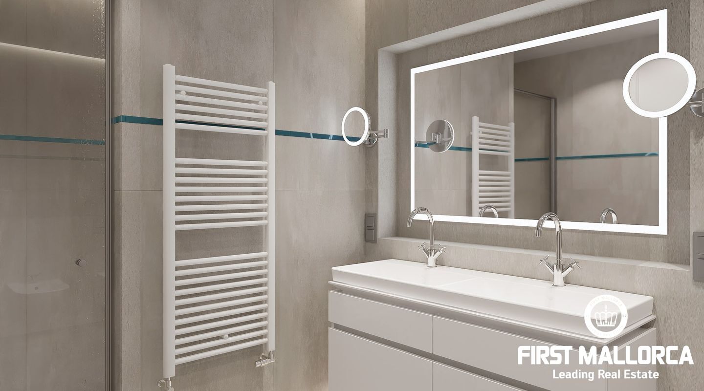The modern and cosy property is equipped with high-end light design and boast a total living area of 132m². Scandinavian style, light and warm beige and grey tones, large hallway, three bedrooms, two bathrooms, a spacious living room and an open plan white, fully equipped high-tech styled kitchen with an island and an induction stove. The apartment's ambience is completed with a terrace exclusively planted with native Mediterranean plants. The entire property is enabled with a modern home automation system (Smart Home). There is a possibility to rent a parking space in the garage.