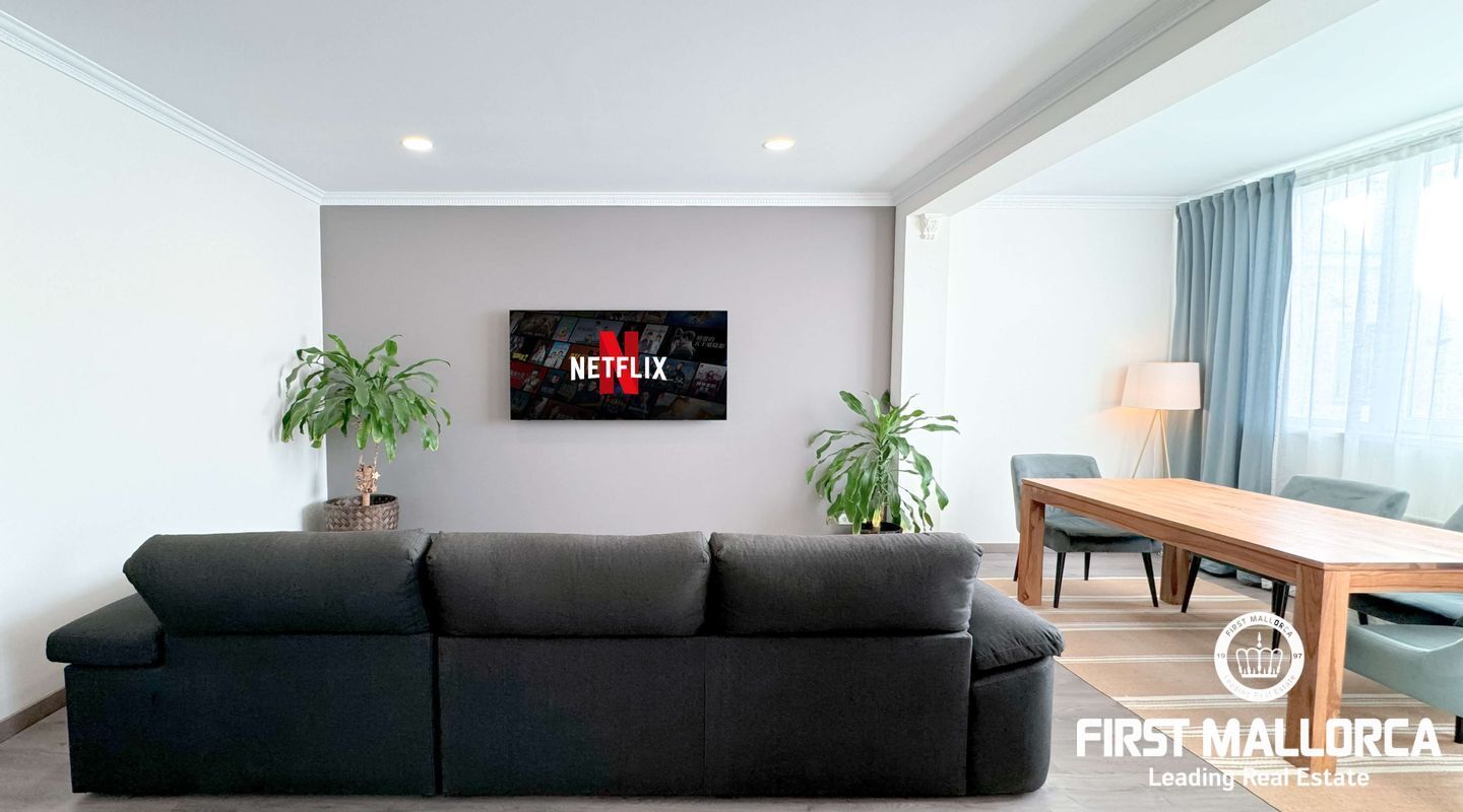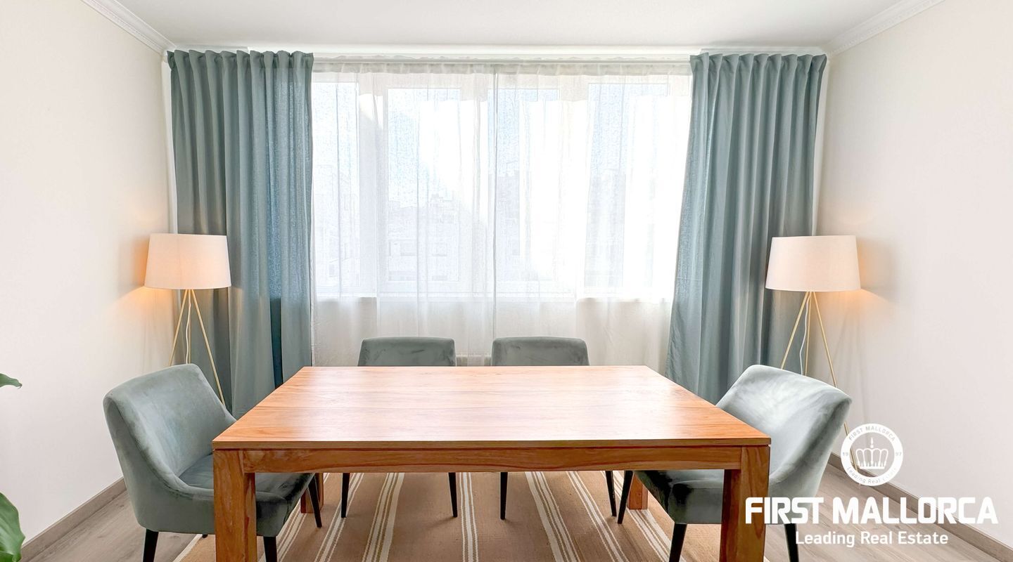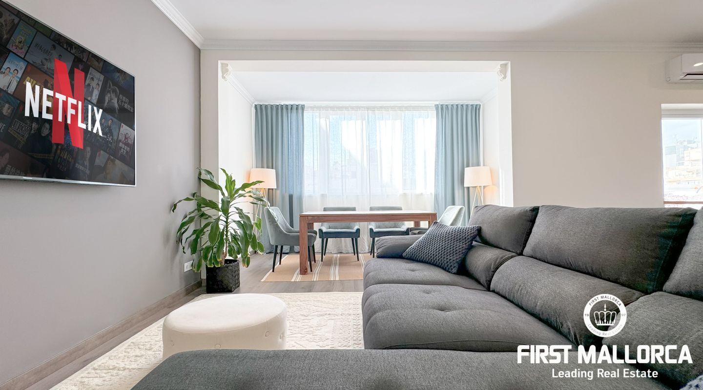 This beautifully renovated flat enjoys a privileged location in the heart of Palma de Mallorca. It is spacious and equipped with modern facilities. It is a third floor of 97 m2 with 3 bedrooms. It has a spacious and bright living room with open kitchen and an island separating the kitchen from the living room. All appliances (large double door fridge, dishwasher, washing machine, oven, microwave) are Samsung. The spacious bathroom combines a large shower and a bathtub with window and ventilation system. Next to the kitchen there is a glazed terrace with two enclosed areas where there is a washing machine, gas installations and other utilities. The flat is equipped with gas heating (radiators in all rooms), gas water heater, air conditioning, furnished, without lift and possibility to rent a parking space. The flat is 5 minutes walking distance from the Plaza de España. The good location of the house means that you don't need a car. Everything is nearby: bus stops, metro, gyms, schools, cafes, restaurants, supermarkets, pharmacies. The famous and huge shopping centre El Corte Inglés is also a minute walk away, as well as other boutiques and clothes shops.