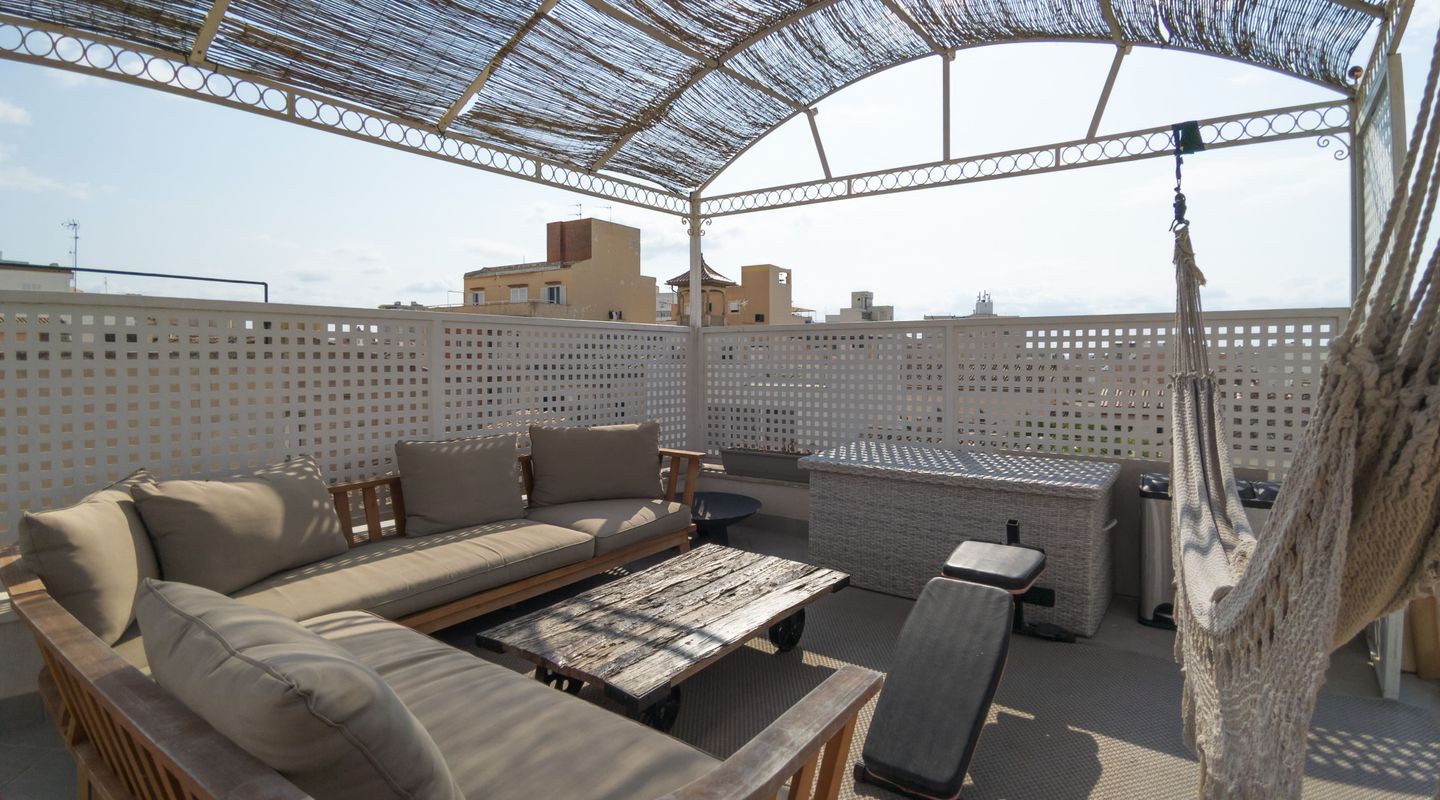 A bright and charming property for those who love spending time outdoors! This spacious apartment with a private garden and rooftop terrace is located in Son Espanyolet, Palma de Mallorca. The neighborhood is highly sought after, just above Santa Catalina, with the market and the old town within easy walking distance.