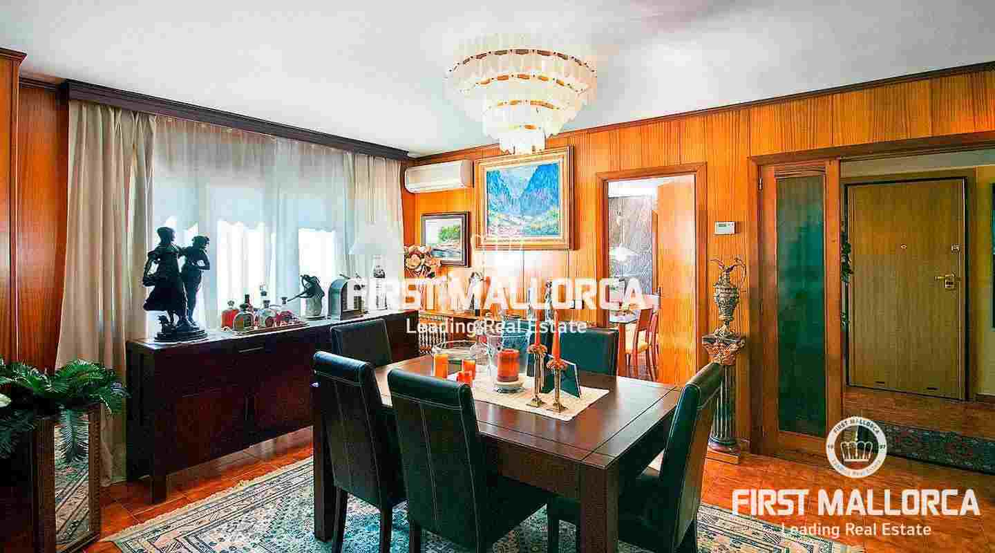 A city apartment located within a building of only 16 units situated in the heart of Palma, opposite the university´s library and close to the renown shopping avenue Jaime III as well as to the boulevard Paseo de Mallorca crossing the Riera river. The constructed area of this partly furnished, 4 bedroom property is 212 m2 with a 10 m2 balcony enjoying views overlooking the Riera and the city surroundings. Its distribution on one level is as follows: a reception area, a living room with fireplace and access to the balcony, a dining room leading into the fully fitted kitchen with adjacent utility room and integrated breakfast area, 4 bedrooms and 3 bathrooms. The master bedroom enjoys and en-suite bathroom and further features include air-conditioning, alarm, central heating and an underground parking space.