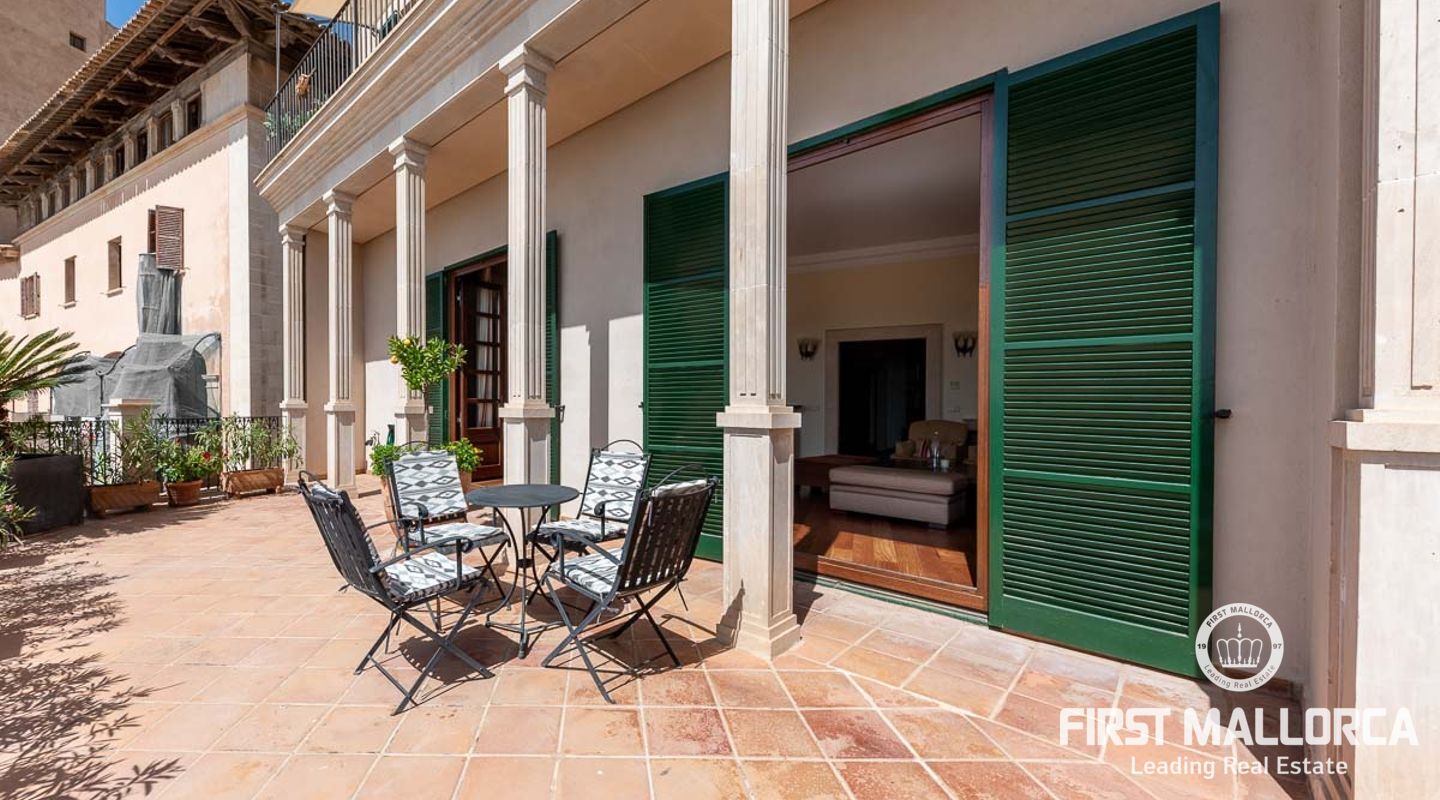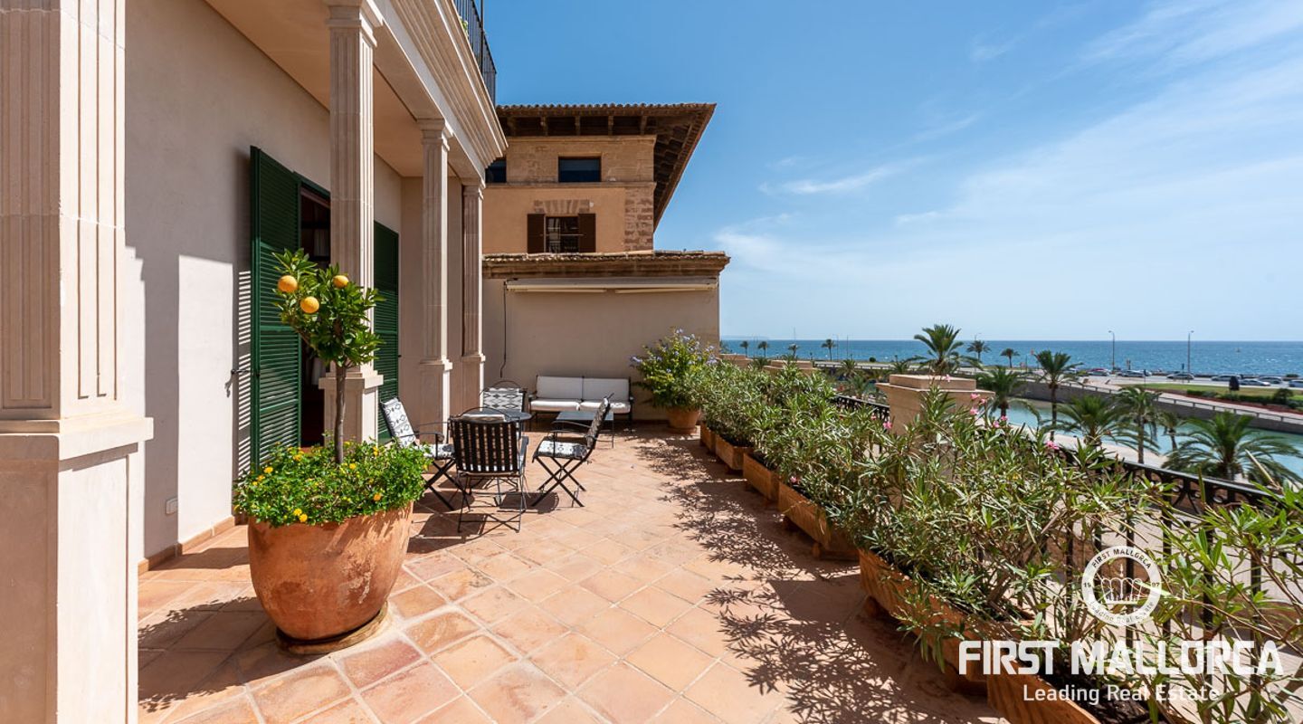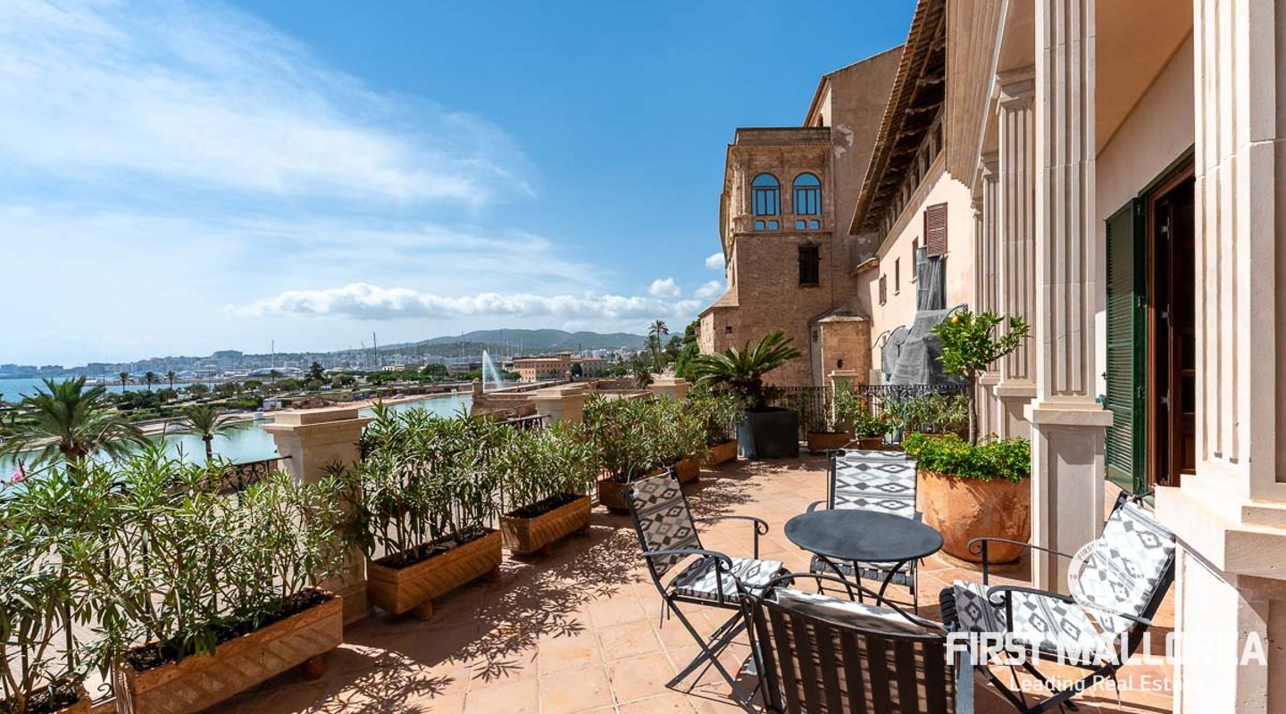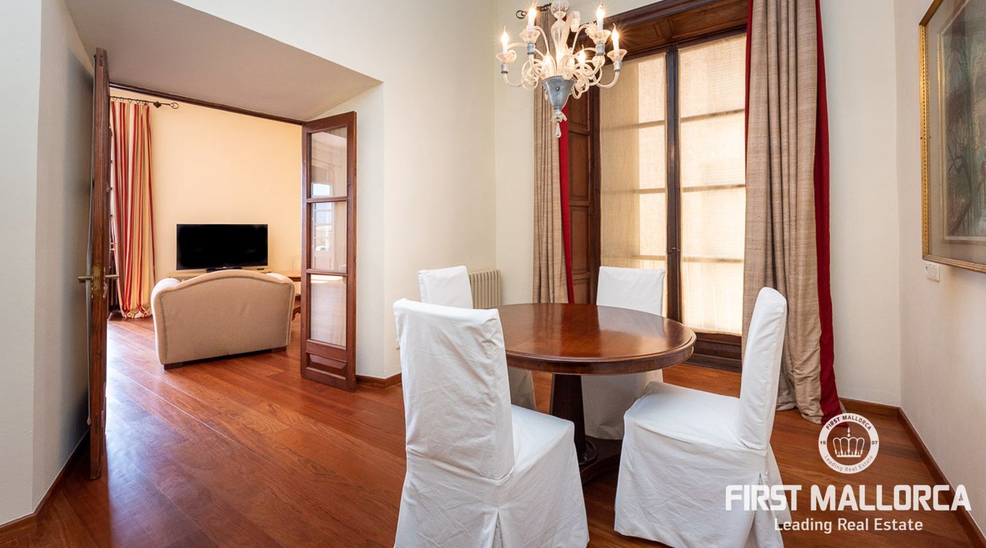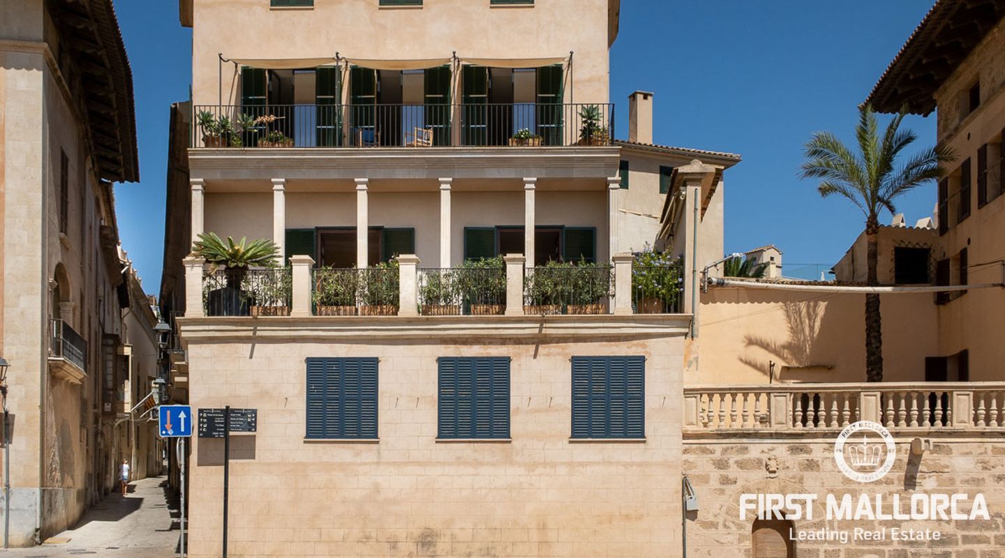 A magical property for lovers of historic Mallorcan finishes located on the front line of the majestic Cathedral of Palma, its unobstructed views of the sea and the cathedral make this property something unique to enjoy day or night evenings with the best of our company. Its 402m2 are distributed in 4 bedrooms with 3 bathrooms en suite, its spacious main living room has a fireplace with classic cast iron finishes connected to the terrace with views to the sea and the cathedral, the second terrace in this case interior and with greater privacy adjoins the fully equipped and furnished kitchen. One of the bedrooms can be considered a private flat overlooking an interior courtyard, which has fitted wardrobes with ample storage space, as well as a small office.