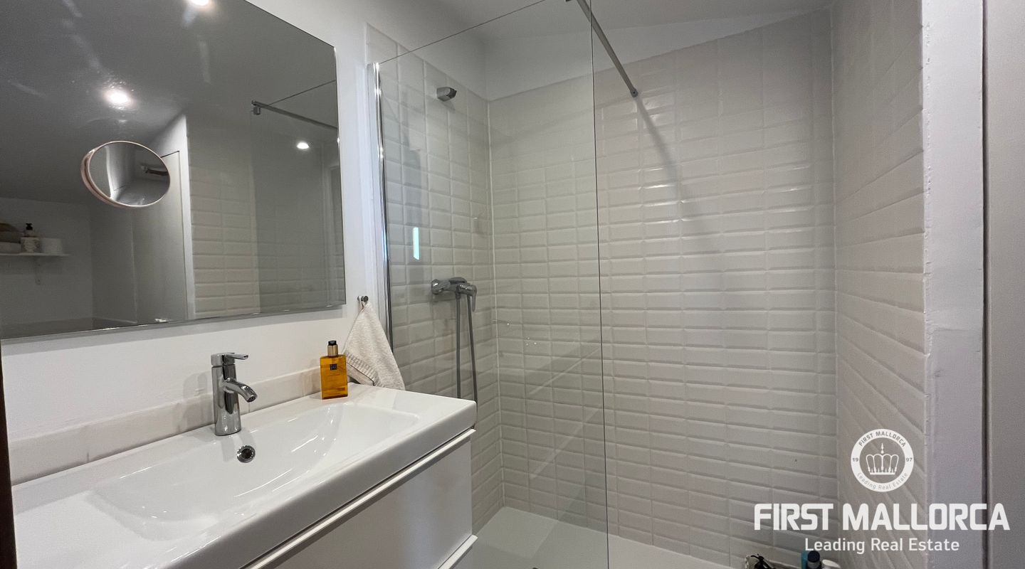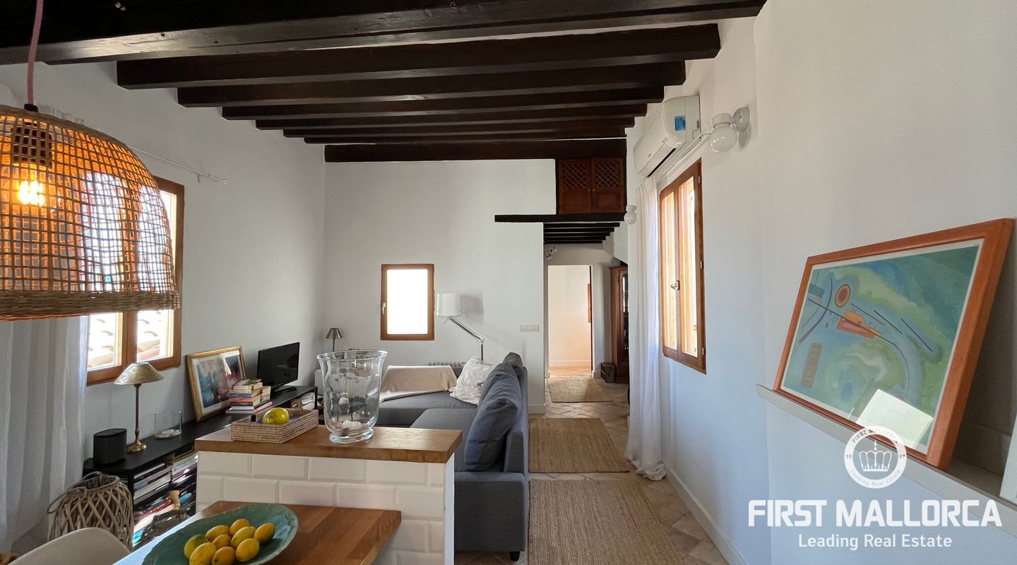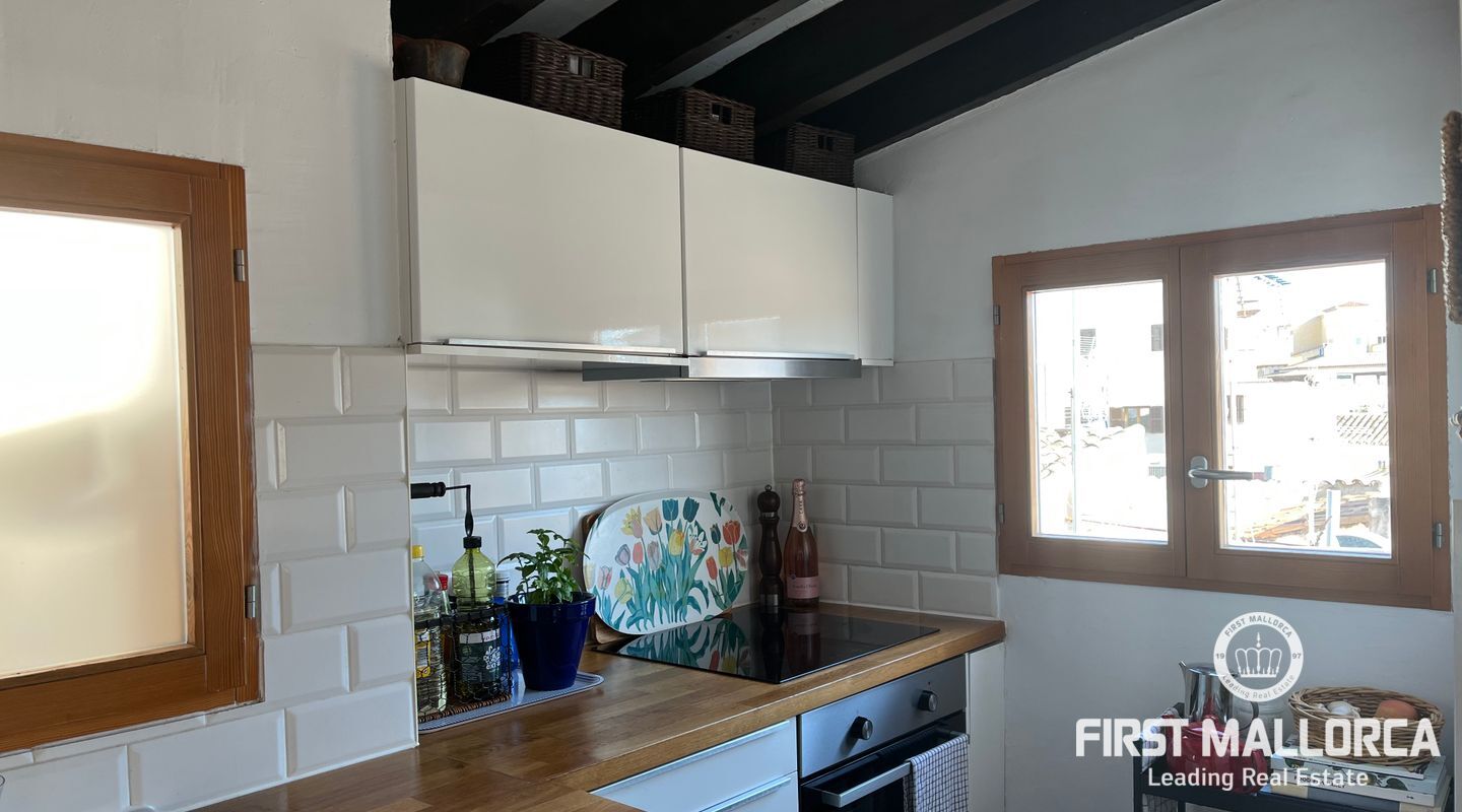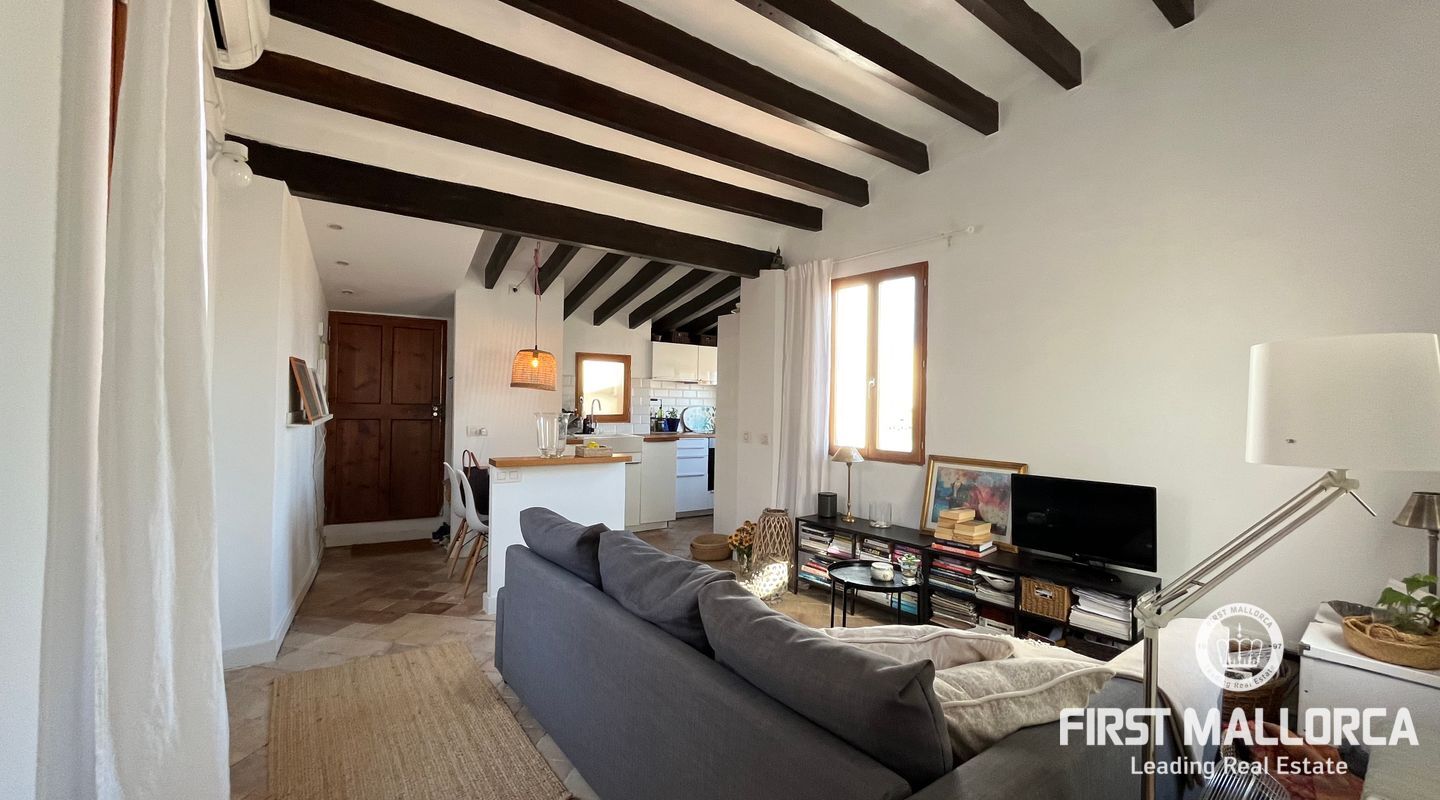 The Apartment has a modern style with the touch of the old mallorquin feeling, the layout of the Apartment is very well planned and with the high ceilings it feels very light and spacious. Thanks to that it's a penthouse and the position of the windows you get much daylight in the apartment that makes it feel very bright. The kitchen is connected with the livingroom and you also have a dining space. A nice bathroom and a large bedroom with very good light from the windows. Just outside the apartment you have a shared terrace where you can easily enjoy your morning coffee or just take a break and relax.