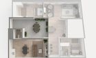The apartment is arranged over two floors. On the first floor, there are all the bedrooms as well as a spacious living and dining area. From this level, there is access to a small terrace.
