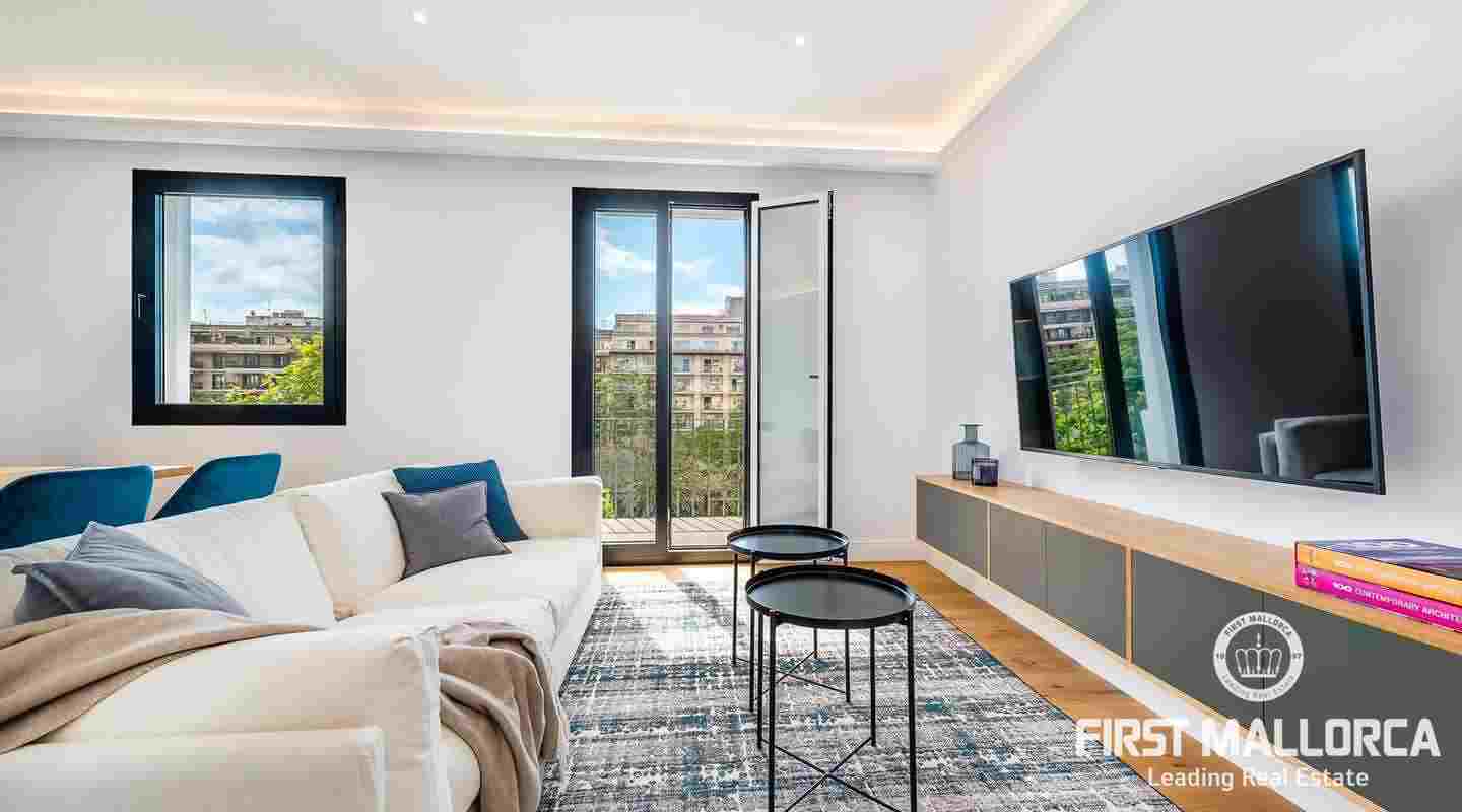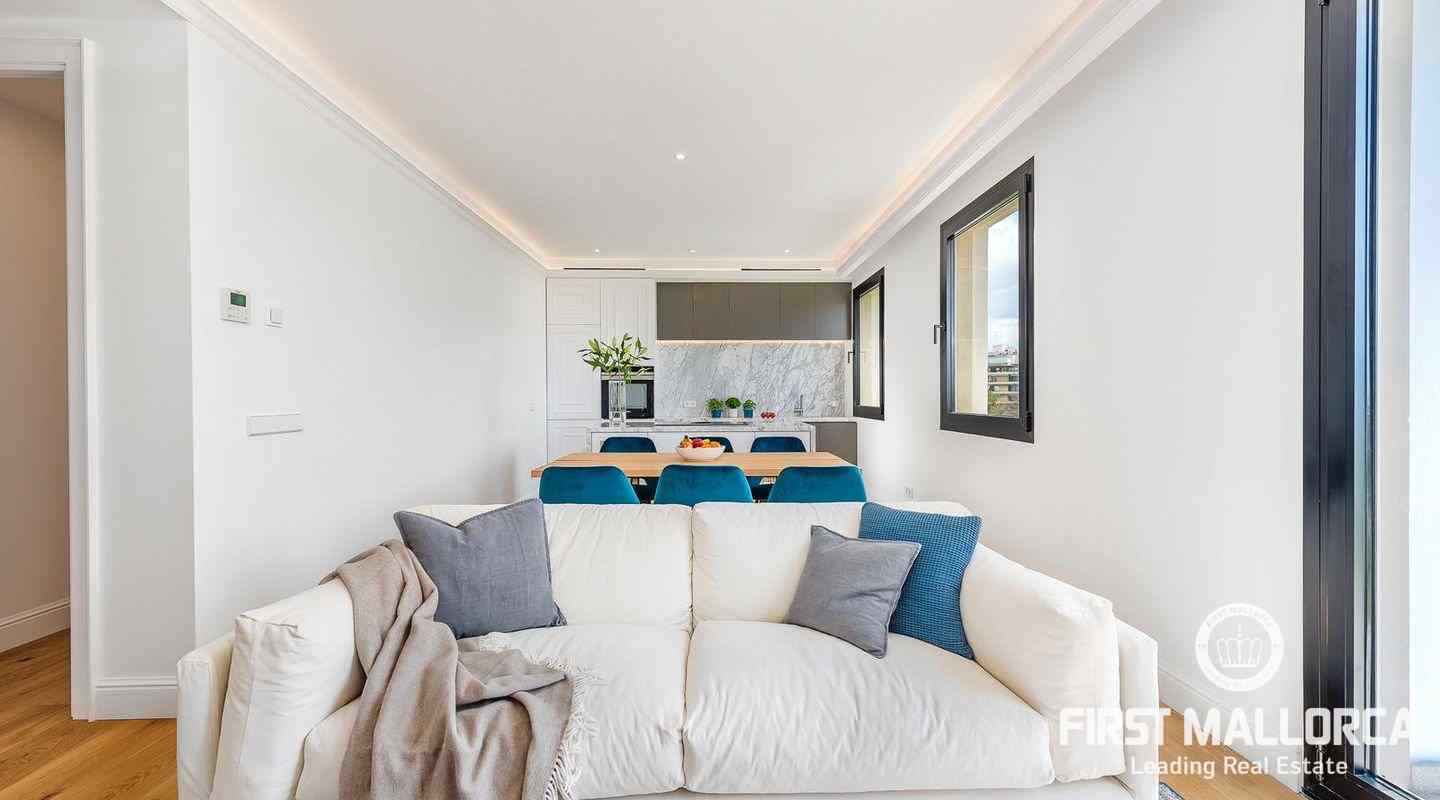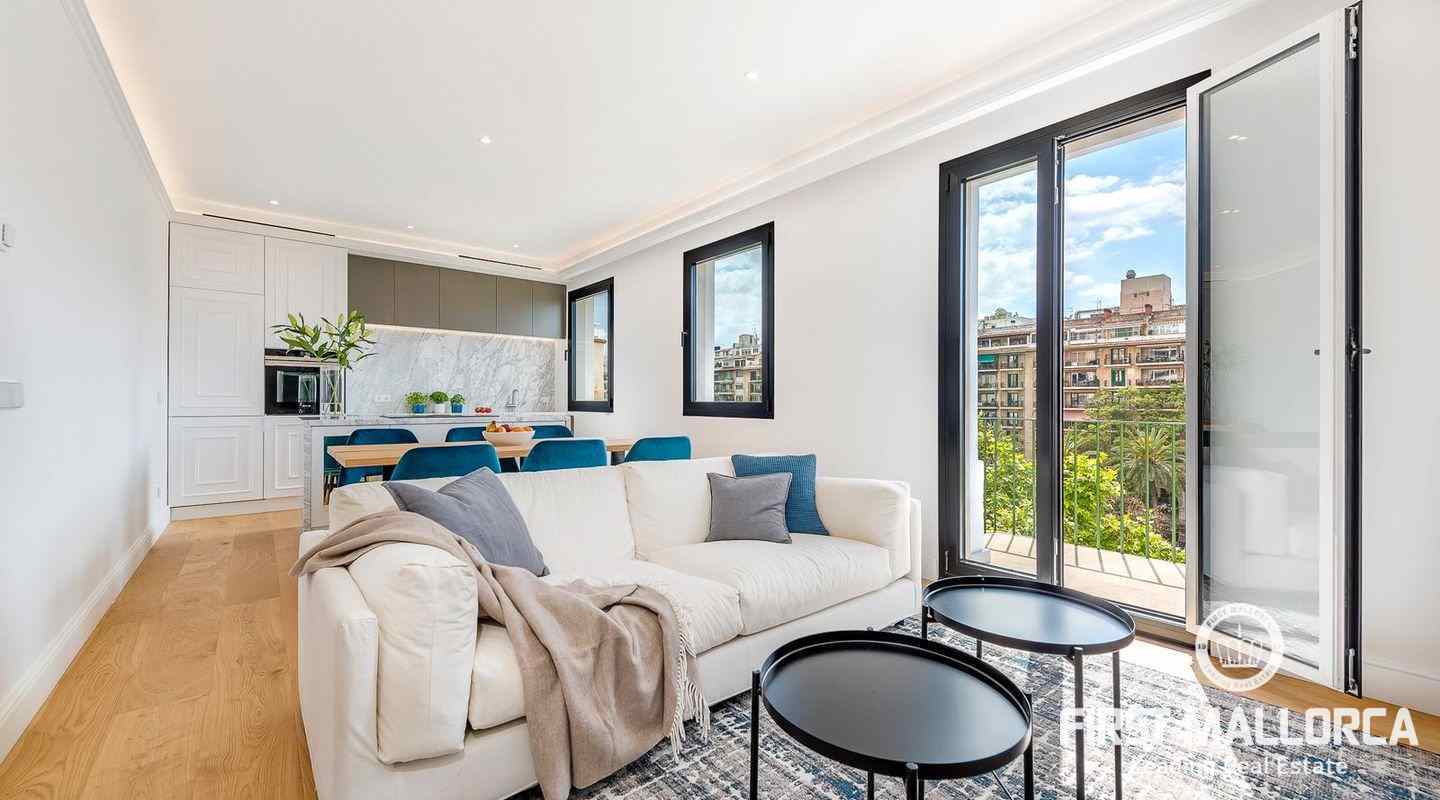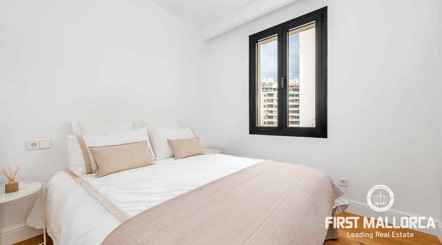 Located in a south-east facing building on the Paseo Mallorca in Palma, is this delightful apartment . The property has a master bedroom with bathroom en suite, an additional bedroom, a guest toilet and a very bright living room with an open-plan Siemens kitchen.