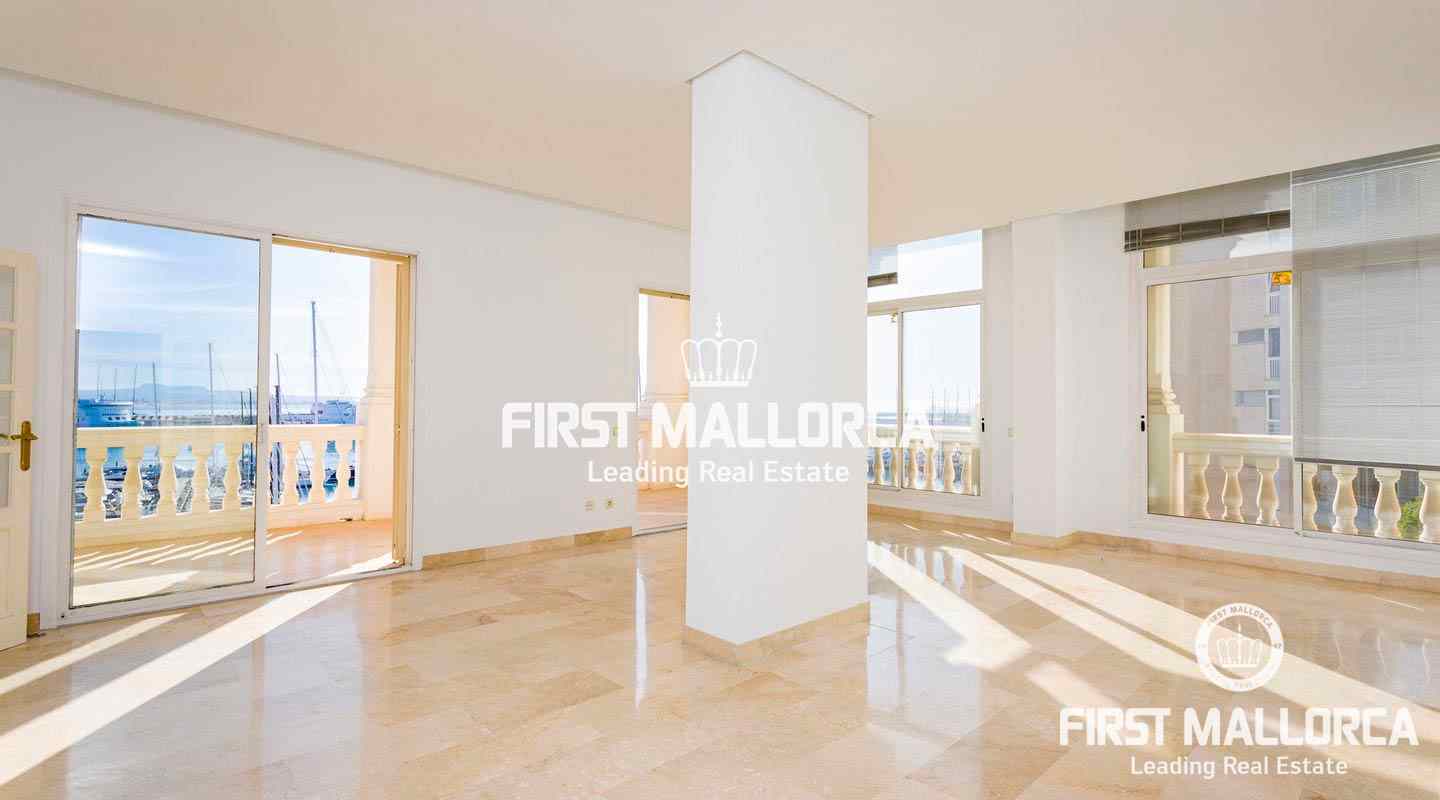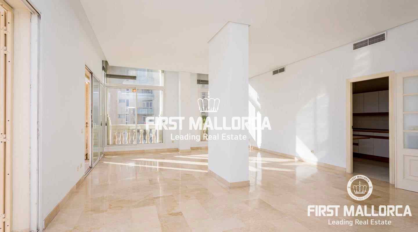 A unique opportunity: This apartment in original condition on the Paseo Marítimo in Palma de Mallorca enjoys fantastic 180º views over the bay of Palma with its cathedral and the harbour of the city. The property currently has 3 bedrooms, 3 bathrooms, 2 of them en suite, an office, a kitchen and a living room that opens up to a large front terrace.