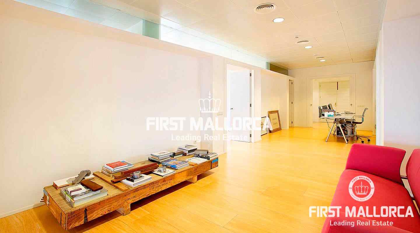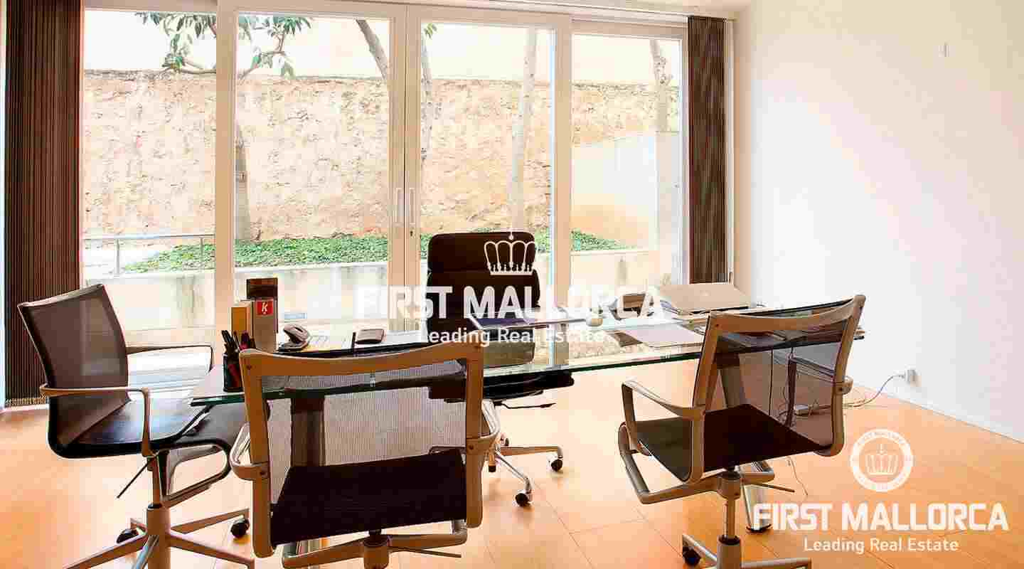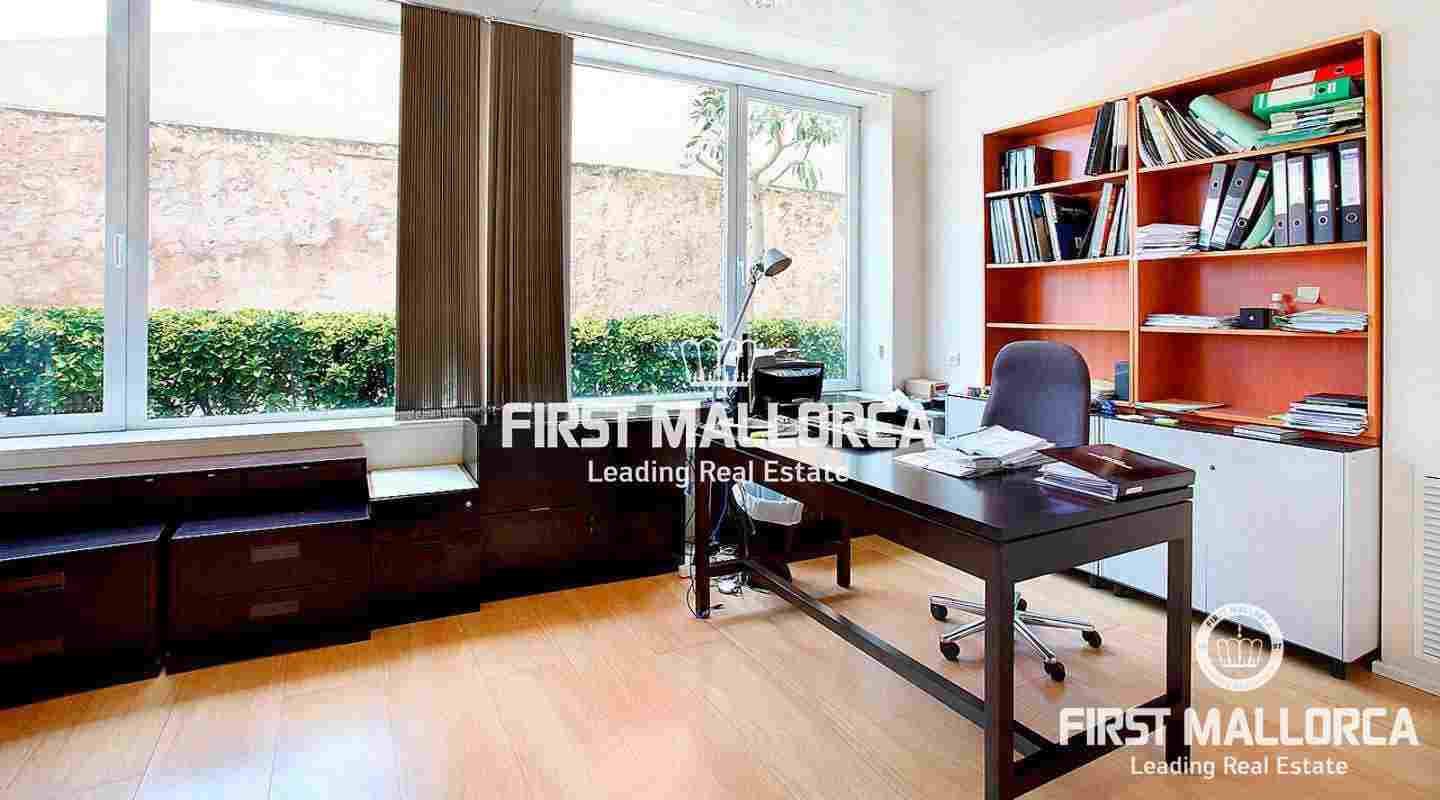 Generous Palma apartment of 356 m2 currently used as an office located on the Paseo Maritimo with access to two streets and in a top-quality building. The present distribution divides a rectangular space into four individual offices and a spacious conference room with views to the harbour of Palma with direct access to a terrace of 43 m2 and a private garden of approximately 80 m2. Additionally there are various store rooms, technical rooms and bathrooms. Because of its excellent location on the Paseo Maritimo and its special characteristics it can be converted into a home or used as an office - or both.
