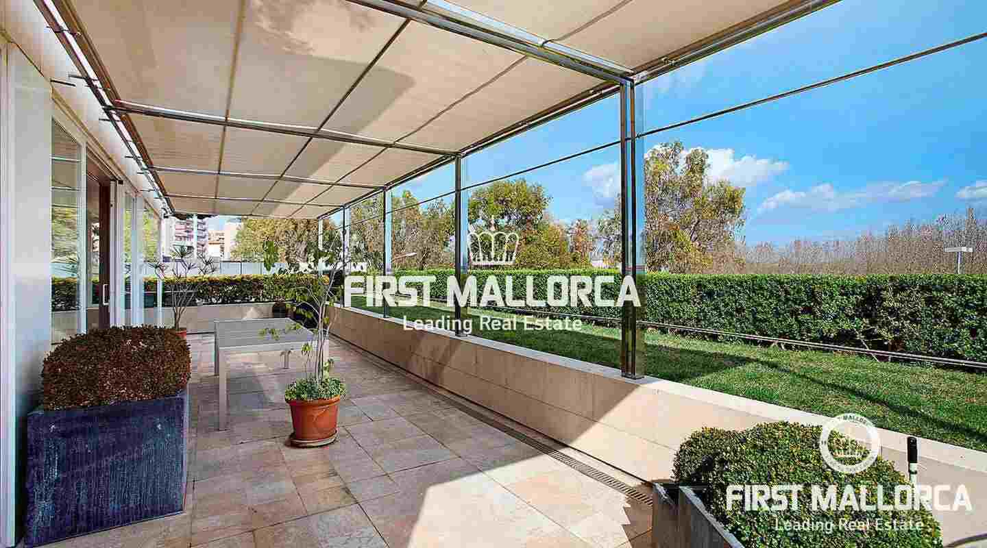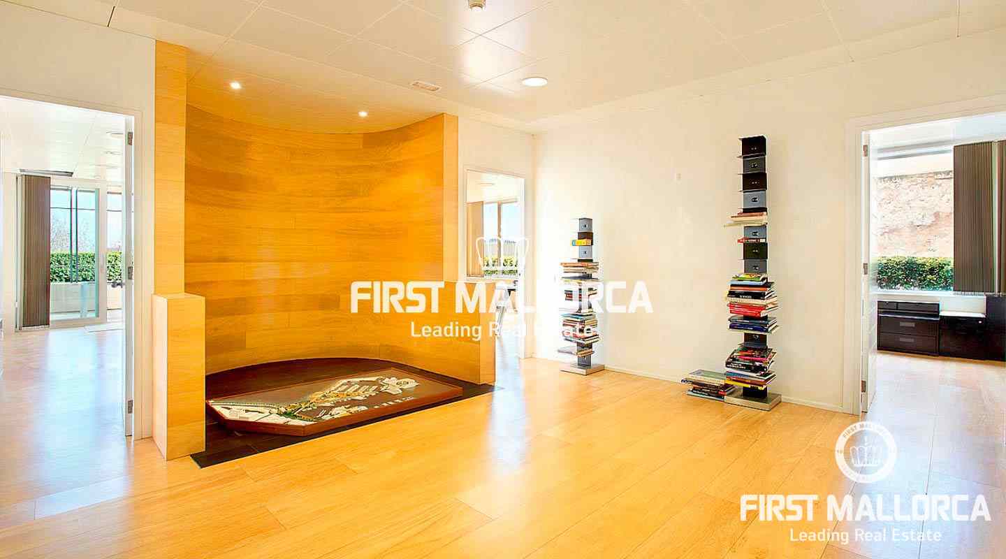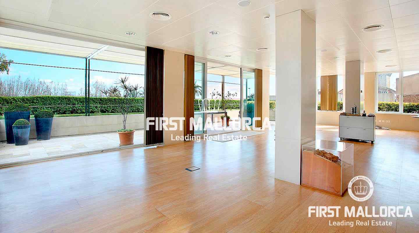 Generous Palma apartment of 356 m2 currently used as an office located on the Paseo Maritimo with access to two streets and in a top-quality building. The present distribution divides a rectangular space into four individual offices and a spacious conference room with views to the harbour of Palma with direct access to a terrace of 43 m2 and a private garden of approximately 80 m2. Additionally there are various store rooms, technical rooms and bathrooms. Because of its excellent location on the Paseo Maritimo and its special characteristics it can be converted into a home or used as an office - or both.