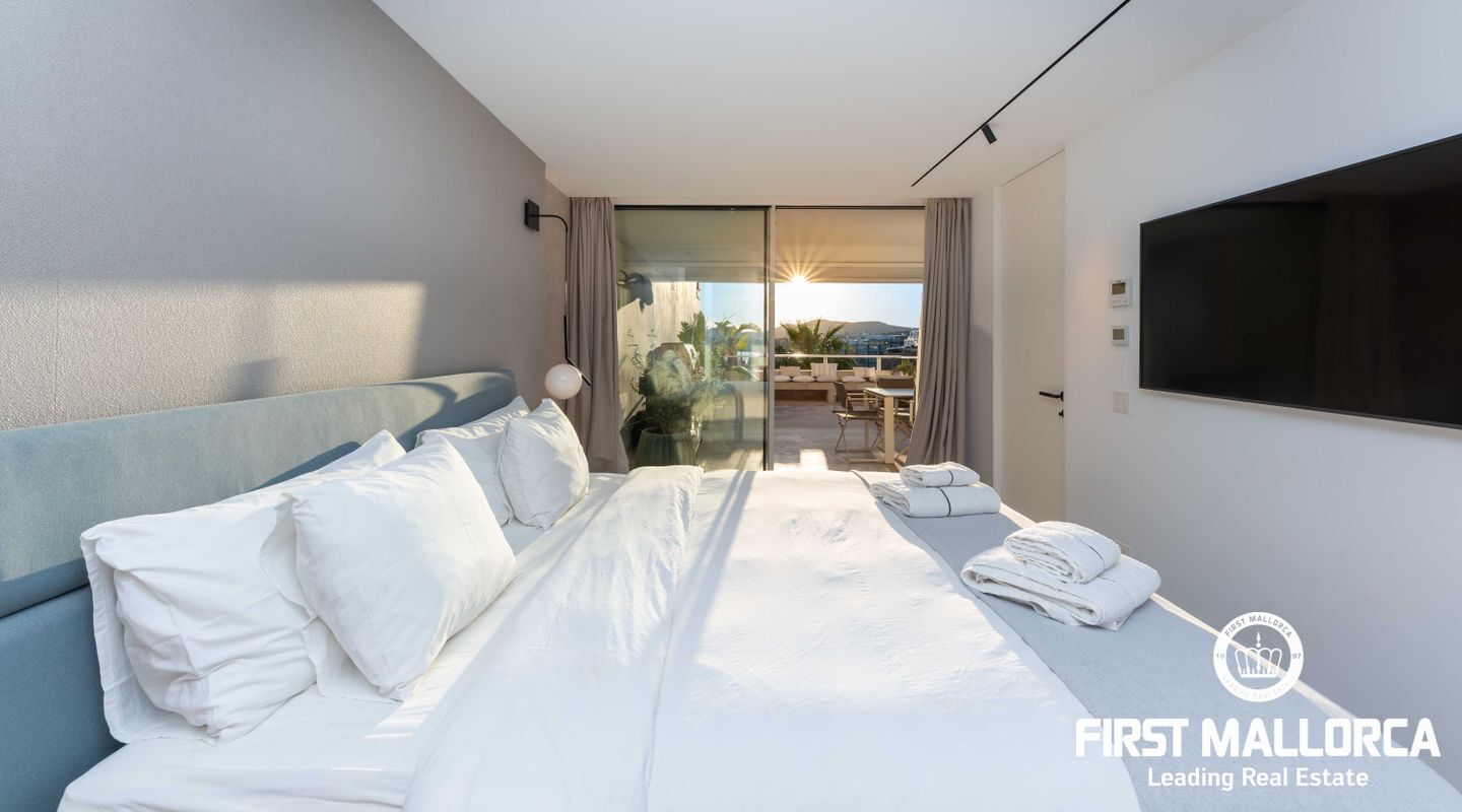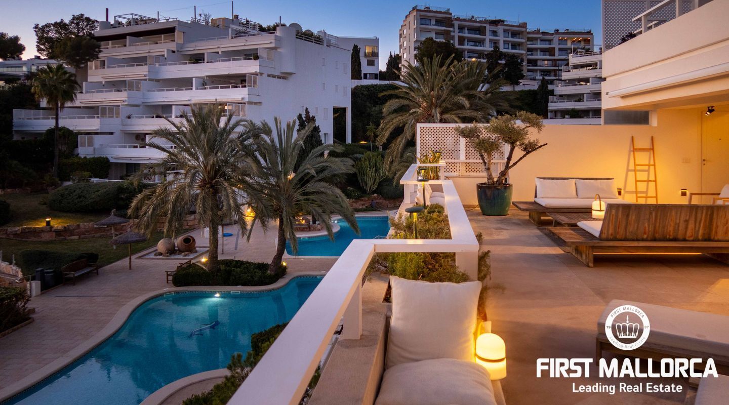 Located in the prestigious Las Terrazas community in Portals Nous, this exceptional 3-bedroom apartment offers a blend of modern living and stunning views, it boasts a huge 102m² terrace from which you can enjoy the 300 days of sun on the island looking over the famous Puerto Portals with guaranteed sunsets every evening. The property has been recently completely renovated sparing no cost and the layout is perfect for your private getaway or entertaining guests.
