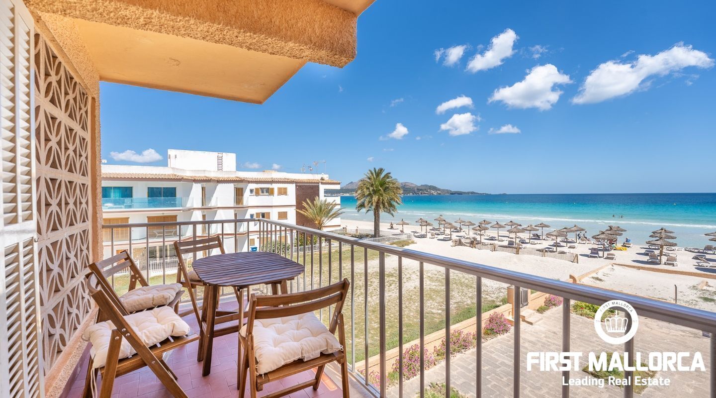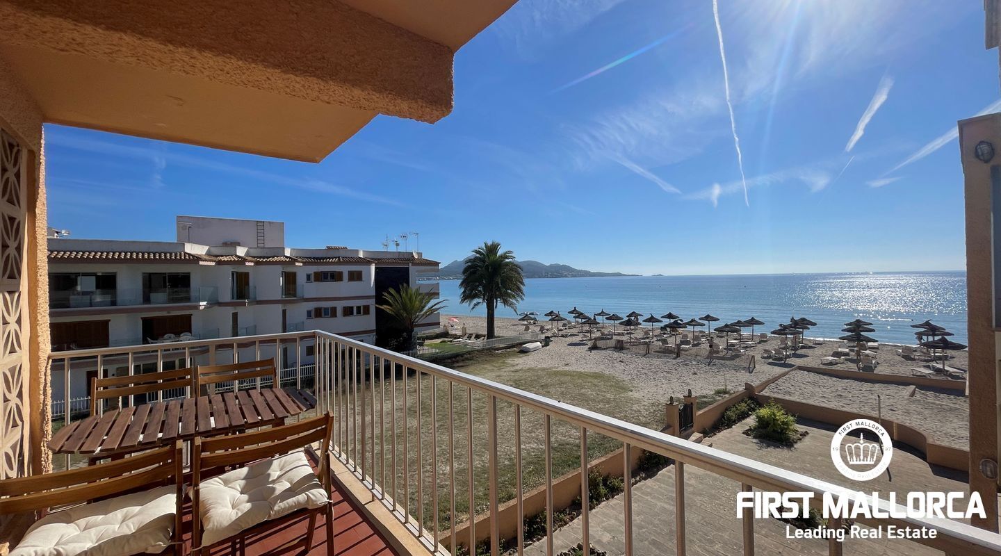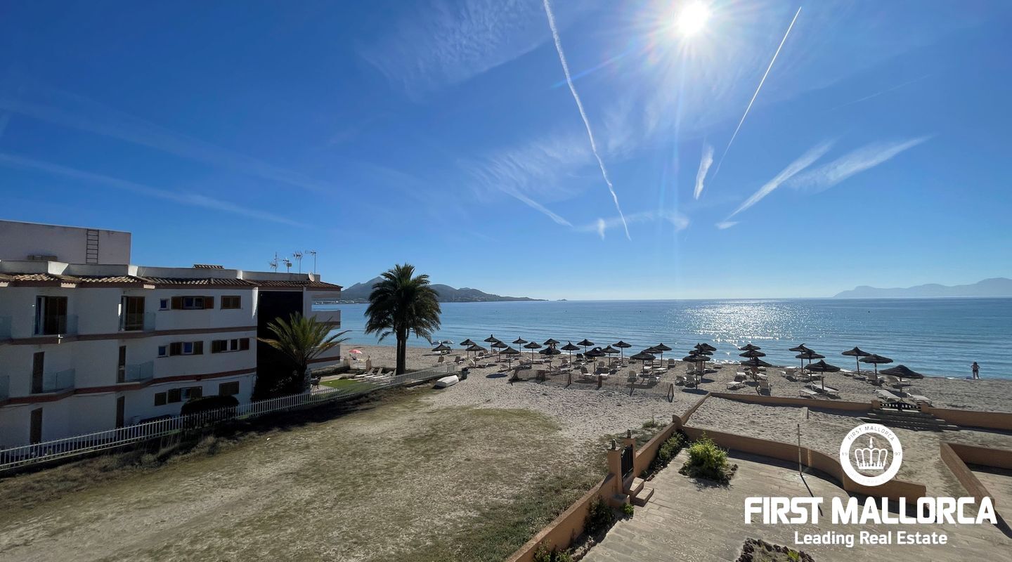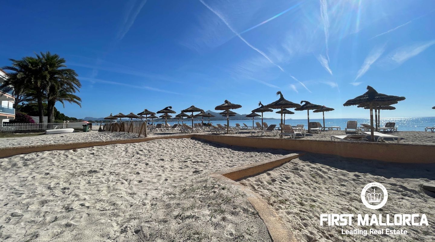 This front-line flat in Alcudia offers the ultimate beachfront living experience. Perfectly situated right by the beach, on the first floor of an apartment block, the property offers breathtaking views of the bay of Alcudia. The flat has 3 bedrooms and 1 bathroom with a shower. The fully-equipped kitchen provides everything needed for meal preparation, while the adjoining laundry room adds to the practicality of the space.