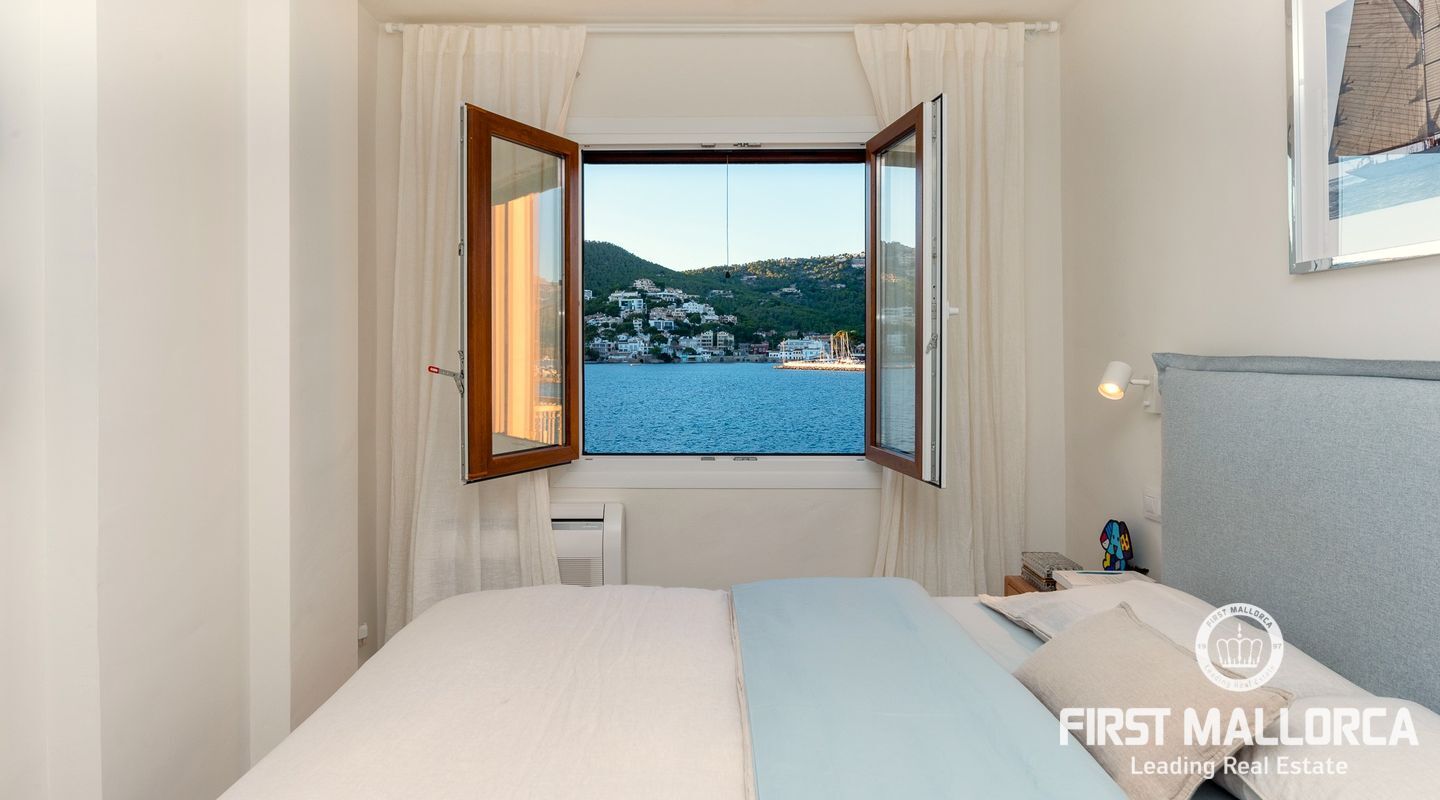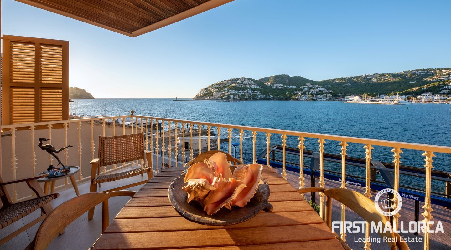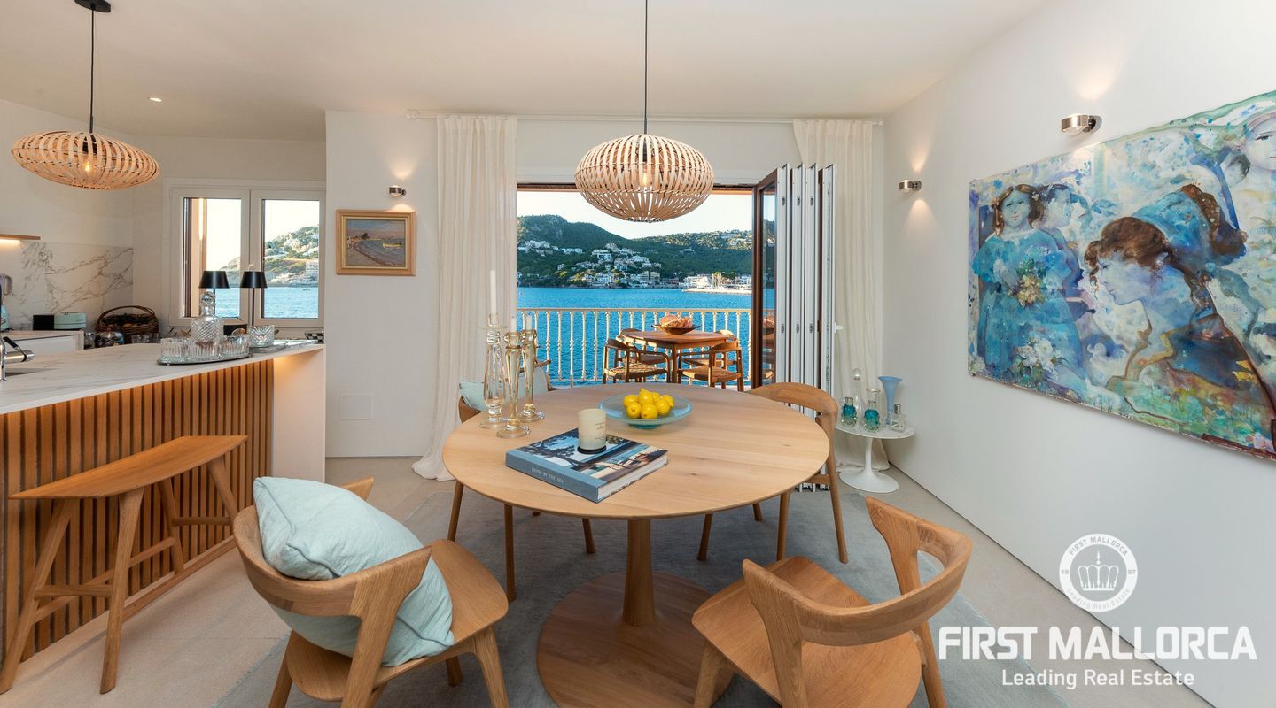 This centrally located property is on the beautiful seafront of the harbour of Port Andratx. With many fashionable boutiques and restaurants, it enjoys a unique location with panoramic sea views. The apartment has 2 bedrooms, the master bedroom with great sea views and an en-suite bathroom, a guest bathroom, a relaxing open-plan lounge area with the kitchen integrated into the dining room and a covered terrace from where you can enjoy breathtaking sunsets. It has been lovingly renovated to the highest standards with a modern interior design.